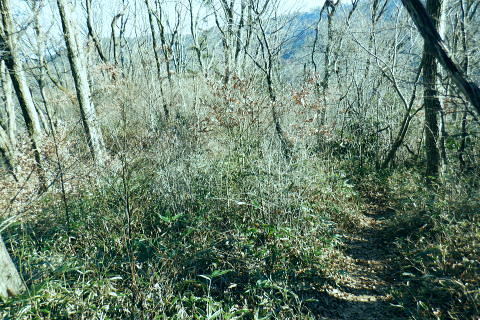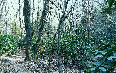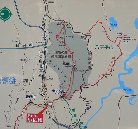 | 小仏峠を越え.小仏川右岸の小仏城山北東(東)尾根を綴り.旧街道の日影沢林道終点にでる 城山北部の北東尾根(宝珠寺尾根)の取付きを過ぎ.城山北東尾根の末端へ。小仏川に出てからは西浅川からは初沢へと東高尾の里山を越える ヤゴ沢右岸尾根から景信山西側径路を経て小仏峠 小仏峠から小仏城山北東尾根を越え日影林道終点・・ラッシュ並の山頂 小仏川の旧道.高尾梅郷歩道と初沢の東高尾山稜越え浅川 小仏峠から小仏城山北東尾根(東尾根)・・小仏峠・富士峠 ![]() 4度目の小仏峠路を綴る。。再び山に登り始めた頃.三頭山まで縦走した折.初めて訪れている。その後「平成26年豪雪」では 路線バスの開通に飛びつき南高尾山稜へ。又西側水平歩道から奥高尾の矢ノ音へ。今日は小仏川の源流を取り囲む尾根を目指し. 右俣左岸尾根から水平道から小仏峠を越え.小仏城山東尾根から小仏川沿いの遊歩道で.甲州街道の東浅川にでている。 今朝はハイカーに.ランナーと人の往来が激しく.峠の脇では老人グループが大勢輪を描き昼食を摂っていた。 小仏峠にでて目でその姿を追うだけで落ち付かず.これほど多い人と峠で擦れ違うのは初めてのこと。一気に素通りしている。 又峠の道標を見て.小原宿への旧道の腕木がないことに気が付く。右に城山を指す腕木の手前側にある筈の旧登山道(点線都道・県道)は 西経路と共に管理者が違うようだ。甲州街道が大垂水峠を越えるようなる以前の旧街道は駒木野宿から小仏峠を越え.新多摩線67号鉄塔尾根を経て. 巡視路から底沢南部の小原宿に通していた。 所謂.甲州街道の上椚田橋から旧道に入り.小仏峠」登山口から峠越えし.点線県道で西小仏から旧甲州街道の底沢バスと結ばれている古道。 小仏峠548mに立つ「高尾.小仏峠案内図」.11:49甲州道中は江戸幕府が日本橋を起点に整備された五街道の1つ。1604年(慶長9年)には小仏峠を峠路として甲府まで延びている。 慶長15年に下諏訪まで延長され.中山道と繋がれ終えている。今回のコースが表示されている。 小仏bs―ヤゴ沢右岸尾根―671m点峰―景信山西作業道―小仏峠―小仏城山―日影林道―北東尾根.経路―日影林道 ―日影―旧街道―高尾梅郷梅歩道―街道.落合―御室社―金毘羅神社―jr高尾駅. 旧峠の茶屋 峠の茶屋跡の休み場.11:54小仏峠の昨今・・2つの茶屋 小仏峠の南側に平屋建ての茶屋2軒.「峠の茶屋」と「青木小屋」が並び過って営業していた。 青木小屋はL字の建物で間に繋がる屋根の下に登山道が抜けていた不思議な茶屋。2008年2月に高尾山から三頭山へ縦走した折は既に廃業。 廃屋だが原形はまだ留めていた。・・過っての青木小屋 その後綺麗に処分され平地に戻されている。8年前の「平成26年豪雪」では交通機関が動き出し.信州に行かずして深雪を踏めるとはしゃぎ. 小仏峠から雪深い武相国境尾根に出向いている。その折はまだ手前の「峠の茶屋」は営業していた。 当時の日記によると『峠の茶屋で親父さんが店前の軒下を除雪していた。お茶を勧められたがこれからが本番。丁寧に断り.立ち話をする。 「暖かくなるも.この積雪の状態では景信小屋は開業できないだろう!」.「朝の霞みが強過ぎ.富士山は見えないかも?」と独り言のよう語る。 「見に行こう!」と一方的な話で.後に付くことになった。80歩ほど歩いた樹間のほんの狭い隙間から.おぼろな富嶽が垣間見られた。 「最近見えるのは10時頃まで.今日はもっと早いと!」。よく見定め聞かねば.今でも分からないほど薄い。 それでも見えたことで何かホッとした。』とある。 2019年には寄らなかったが教わった小仏峠水平径路を繋ぎ.奥高尾の矢ノ音へと辿っている。 今回はその「峠の茶屋」が廃業しているのを現地で知る。そして茶屋の脇では.週末には「登山明細図」の販売所が設けられていた。 ベンチにブルーシートが敷かれているのを見ると休憩所として活用しているようだ。販売している地図「高尾山」には既に小屋跡と記されていた。 追伸として.小仏峠から西小仏口に至る旧甲州街道の67号鉄塔の手前付近の大樹.「中峠」の板が掛かる処にも「中峠茶屋」があったとのこと。 小仏富士見台・・富嶽と相模湖 左景・・茶屋跡を過ぎ.直ぐ右手の展望台.12:00峠から高尾方面へ登り返した展望台579.0m。戦国時代の旧甲州街道(小仏峠西の街道)を守る陣馬跡。 相模湖々畔と孫山東尾根・子孫山ノ頭東尾根 右下をアップ・・延びるのは孫山からの尾根右側から孫山東尾根・子孫山ノ頭東尾根と分岐からの桂北ルートの尾根。 2年前の11月に小原宿から孫山東尾根を登り.イタドリ沢ノ頭竹ノ沢右岸尾根から大日野原にでて.小渕丘陵を越えている。 この折は藪絡みの奈良本尾根が1年ほどの間に作業道から登山道にと整備され.手が行き届きまでに丸っきり変貌し驚かされた。 裏高尾縦走路を南下 中半忘れかけた15年前の縦走路.12:06左手の石板に「関東ふれあいの道.←陣馬高原12.0km・高尾山7.0km→」とある。 以前来た時はなかった防火用水の特性ドラム缶.12:07 整然と綺麗な一級登