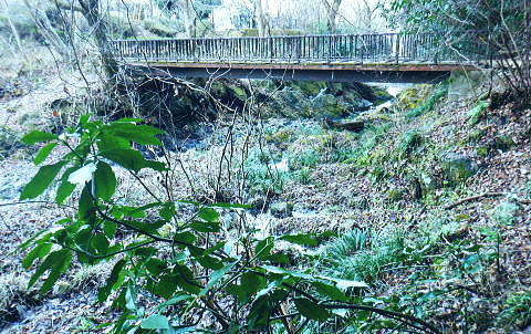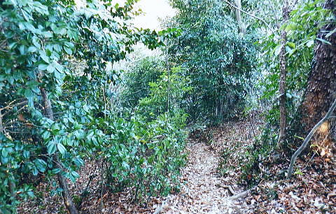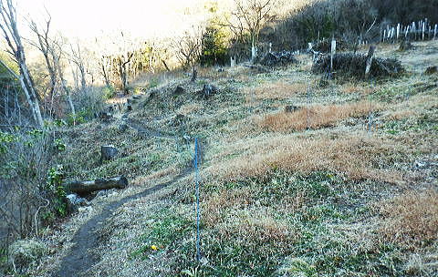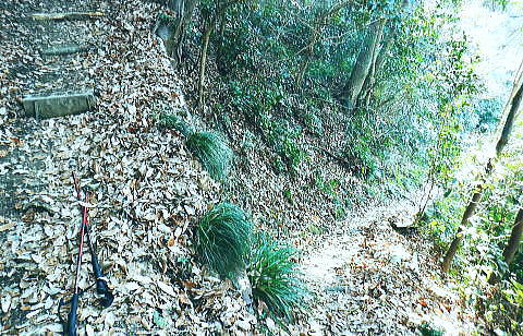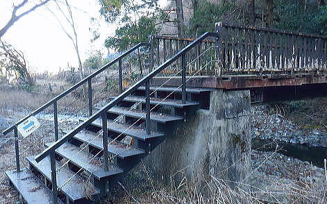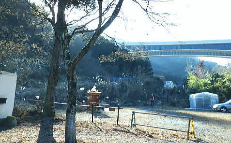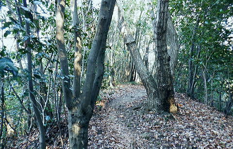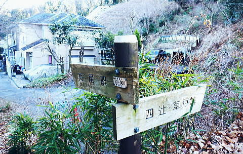 | 城山北東尾根の林道終点にでて再び小仏川に戻る。裏高尾の里から西浅川にでて.東高尾山稜の初川金毘羅尾山へ登り返す 日影から小仏川沿いの旧街道に入り.高尾梅郷歩道から甲州街道の上椚田橋にでる。 落合からは浅川金毘羅山へと御室社を経て東高尾山稜の小さなコルにでて.初沢地区の金毘羅山を越えjr高尾駅にでる。 ヤゴ沢右岸尾根から景信山西側径路 小仏峠から小仏城山北東尾根を越え日影林道終点 小仏川の旧道.高尾梅郷歩道と初沢の東高尾山稜越えのjr高尾・・浅川の里山と金刀比羅羅宮・三和団地と浅川地下壕 旧街道.日影から東高尾の初沢へ 日影沢林道の終点と旧甲州街道の分岐.14:06旧甲州街道 左に折れ.小仏川上流側の旧道に入り.日影沢出合を見下ろし.270mほど進めばjr中央東線のレンガを潜り.バス停「梅の里」にでる。 昨年3月に北高尾山稜から景信山東尾根を下り.満開の木下沢梅園に下りている。バス停「梅の里」で乗車しjr高尾駅で降りる。 今まで何度か路線バスで通っていた旧街道だが前回脇道に散策路があることを知り.梅の時期としては早々だが小仏川沿いの遊歩道を歩む。 そして旧道から甲州街道と綴り.初沢地区の里山.金毘羅山を経てjr高尾駅にでることにした。 北高尾山稜 手前が旧街道の小下沢に架かる小下沢橋.日影バス停より.14:07高ドッケ.杉沢ノ頭.右肩は熊笹山で.その木下沢左岸沿いの山麓が木下沢梅園で.対岸は景信山東尾根の末端になる。 間の沢沿うには小下沢林道が綴られていた。旧道伝いに右にカーブするとバス停「日影」がある。 過ぎて旧道を東進するとバス停「裏高尾」から更に進むと右脇に浅川国際マス釣場があつた。 ルアーとフライが主で比較的小さな釣り堀だが水深2mほど.釣り堀の割には以外と大勢の釣師で賑わっている。 これは面白いと旧道脇から暫く見詰めていたが中々釣り上げられず飽きている。大型はコイ.ニジマスは25cm前後らしい。川魚の雑魚釣りか? 小仏川沿いのこの辺.対岸はいろは分岐からの522m点北尾根の末端辺りに当たる。 小仏川沿い・・裏高尾町内と圏中道.八王子JCT 中央道の八王子JCTと旧道のバス停「摺差」.14:17旧道沿いは唸り続くも.陽射しは殆どが旧道を境しの山陰で停まれば肌寒い。 「蛇滝コース」の登山口と奥の高尾梅郷歩道を歩む 高尾梅郷歩道.14:23右手沿いに「湯の花梅林」を過ぎるとT字路の左角に蛇滝入口の「高尾登山道」と刻む立派な石柱が2基立つ。 右には「高尾梅郷遊遊歩道」の看板が立てられていた。又蛇滝信仰の講中に利用した旧蛇滝茶屋がバス停「蛇滝口」の傍にあったとのこと。 作業道の取付きもあり.登山道とは別に日影沢林道が奥を綴り.522m圏北東尾根の山腹を回り込んでいる。ピストン林道. T字路から20mほど入ると左手の小仏川の川畔沿いに「高尾駒木野庭園」の標柱があり.ここから高尾梅郷遊歩道に入る。 小仏川の左岸・左岸沿いに幾つもの梅園があり.遊歩道で綴られている。又林道の奥に老人ホーム「晴明園」が建ち. 更なる奥に千代田稲荷大明神が祭られ.登山道はそれらを廻るよう綴れていた。 右岸の梅園遊歩道 小仏川の右岸遊歩道に移る.14:26住宅地の裏側の土道を進み.鉄橋で右岸に渡ると右手の上流側には小道が綴られ.左の奥へと尾根を登っている。 はっきりした藪道で圏央道のフエンス沿いに蛇滝林道に合流している。又左に折れると梅園は更なる広がりを見せていた。 八王子TCの高尾トンネル口からのの陸橋下を潜り.小仏川を右岸に渡る。右岸沿いの遊歩道は一日中山陰で日は閉ざされ. 大地は霜柱で白く凍り付いている。踏んでも割れぬほど氷化していた。滑ること滑る。 旧道から梅郷橋を渡ってきた天神梅林の広場から振り返す.14:39右(北方)の八王子JCTから繋がる左方の高尾山トンネルの北詰で..蛇滝林道下を潜り.案内川の高尾山ICに繋がれている。 ここだけは日差しを浴び風もなく一休みするに限る。サンドイッチに白湯を呑む。今回だけはアルコールを持参すればよかった。歳で自粛していた。 写真中央のお嬢さんとはここで出会い.何度か擦れ違っている。共に一人旅.シーズンオフとは云うものの.訪れたのは2人だけだった。 天神梅林と高尾天満宮 「高尾天満宮」の社号碑を通過.14:43裏高尾町の新井bsを隔て小仏川の対岸が新井梅林になる。咲いていればよく見下ろせる場所.。右奥の白い看板の所に社があり. 「高尾天満宮」には菅原道真公が祀られ.高尾天満宮」の脇からは蛇滝林道に登る2つの作業道が付けられていた。 過って伊能忠敬は第七次測量(九州一回目)の帰りに駒木野に宿泊している。その折の記録した地図には「高尾天満宮」から 薬王院を抜けて高尾山に登った節が残されていた。この作業道の先は蛇滝林道と旧登山道もあるのだが? 水場あり.14:44遊歩道梅林 小仏沢縁に入り込み再び左岸道へ 渡った左岸が駒木野・小仏関跡.14:16散策路伝いに下流に移動するには橋で左岸に渡り.橋下の流心は小さな廊下を創っている。 金毘羅山と梅園遊歩道 西浅川.正面が国道の上椚田橋・彼