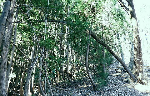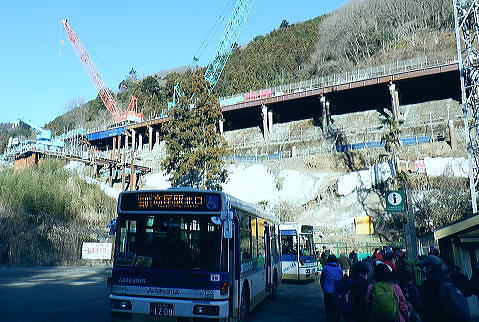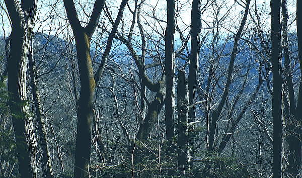 | ・・陣馬・高尾山山域Top 小仏川右俣.ヤゴ沢流域Top 高尾山5. 2022年の初春の3ケ月間はヤゴ沢流域の3つのコース. ヤゴ沢右岸尾根.ヤゴ沢二俣中間尾根(左岸尾根)を登り.ヤゴ沢本流へ下山する。 第一弾は小仏川の源流の北側を取り囲む尾根を綴り.ヤゴ沢ノ頭ヤゴ沢右岸尾根から小仏峠を南下し.小仏川右岸沿いの小仏城山北東尾根に回り込む。 そして高尾梅郷歩道から甲州街道の落合を経て初めて東高尾山稜を齧り.初沢に聳える金毘羅尾根を越えjr高尾駅にでている。 2月にはヤゴ沢二俣中間尾根から吉野矢ノ音を越え奥高尾へ。3月は北浅川の北高尾山稜を越え.大久保山北尾根からヤゴ沢左俣沿いに下山した。 2022年01月16日.松村 ヤゴ沢右岸尾根から景信山西側の経路を経て小仏峠・・藪絡みの本命は西側水平歩道 小仏峠から小仏城山北東尾根越え日影林道終点 小仏川の旧道.高尾梅郷歩道と初沢の東高尾山稜越え浅川からjr高尾 最初は小仏川右俣の景信山西側の旧道を取り囲む山腹道に入り.初浅川からは東高尾山稜を越える。 第一弾は小仏川源頭の671mPヤゴ沢右岸尾根を詰め.高尾山北側の裏高尾から南浅川に延びる低山の山並みを東進する。 翌月はヤゴ沢二俣中間尾根を詰める。続々は北浅川から北高尾山稜を越え.大久保山北尾根からヤゴ沢左俣の本流を下る。 ヤゴ沢流域 小仏川上流のヤゴ沢の源流は景信山を源とし.ヤゴ沢を取り囲む右岸尾根は景信山南東尾根と景信山から小仏峠に至る流域になる。 景信山の南東尾根と景信山から小仏山への縦走路みを綴る背稜からヤゴ沢右岸尾根に至る流域に位置している。 通常はヤゴ沢左岸を本流として.二俣中央尾根を左岸尾根として.左俣を挟んだ西側の尾根をヤゴ沢ノ頭.ヤゴ沢右岸尾根と呼んでいる。 左岸尾根は小仏川を取り囲む景信山南東尾根。 小仏川を大きく上流側からの地形をみると景信山を頂点に左岸尾根は小仏峠へ下り.小仏城山の頂に立ち北東尾根を綴ると日影林道の終点にでる。 小仏川の左岸は景信山の西北西側の高みにある堂所山が頂点になる。北高尾山稜を隔てる木下沢を下ると日影で小仏川に流れ込む。 更に小仏川沿いには旧街道が綴られ裏高尾.摺差.蛇滝駒木野.そして西浅野で甲州街道に突き当たる。越えた小仏川の出合が案内川。 今回は景信山西径路から小仏城山北東尾根へと小仏峠の源頭を綴りながら.小仏川.日影の河原に下り.右岸沿いの高尾梅郷路から東高尾山稜へ。 落合からは初沢の里山へと3つの目の小峰・・671mP・小仏城山・金毘羅山と越え.jr高尾駅に戻。 「空振」の津波警報 日本時間で15日13時頃.トンガで巨大な海底火山が噴火し.規模は7以上。太平洋圏の広い範囲で大きな潮位の上昇をもたらしている。 噴火の衝撃により空気が強く振動し.「空振」は概ね2hpa程度加圧と減圧を繰り返して起こる現象だそうだ。 又「津波警報」の発令は朝方の日本の太平洋沿岸の交通機関に大きく乱れを起こしている。 気圧が乱れた関東地方はその反面.強い西高東低の冬型は崩れ.穏やかな気圧配置に恵まれ.日差しを求め.高尾周辺の間近な里山低山に出向く。 コロナ感染症の影響で40日振りの山登り。ヤゴ沢左岸尾根から逆川林道にでて.出来るだけ山腹道を求め奥高尾山稜から貝沢までト歩く積りでいた。 それは後日に延ばし.前日急きょ.遅い出発に変更し.小仏峠周辺の.近場を選び.のんびり出掛けることにした。 ・・5時-3.7℃・9時2.9℃・12時10.4℃・15時11.2℃. 終点小仏バス停.9:09中央自動車道は小仏トンネルの電気設備補強工事 小仏バス停からヤゴ沢右岸尾根を詰め.671mPから陣馬高尾縦走路を横切り.景信山西径路(古道)から小仏峠に回り込む。 高尾陣馬縦走路を南下し小仏城山北東尾根に乗り.日向の林道で昼食. 作業道から一度.日影地区に下りている。 後半は里にでてからは旧街道沿いの錆びのあるような侘しい高尾梅郷歩道を綴り.甲州街道から初沢地区の里山.金毘羅山を越えjr高尾駅にでる。 背はヤゴ沢右岸尾根と西尾根・小仏峠 366mで旧峠道口を右に折れた正面がヤゴ沢作業道.9:32左が旧峠路の小仏峠登山口で.分岐右正面がヤゴ沢で.突き上げる源流は景信山。 113号水準点 右がヤゴ沢作業道道の起点ゲートで.「崩落のため通行止」とある。左手が小仏峠から小原へと綴る点線都道。 左の登山道沿いに入り.直ぐ右脇「113号水準点標石.標高639.51m」と水準点の案内板ある。円柱には黒マジックで「測量史跡」と書かれていた。 旧甲州街道沿いに設置された水準点で.1887年(S20年)頃.甲州街道が大垂水峠を通るようなり.水準点も変更され.廃止になっている。 1月16日(日)快晴 jr御徒町7:32=7:35神田.中央特快:39=8:36高尾駅北口:52=9:13小仏bs310m・・日の出6:51. 中央特快に乗車するも総武線の後続が遅れ気味.各停車駅毎に総武線待ちで三鷹までは各駅停車の如く高尾駅にでいる。 朝方から紺碧の天空が広がり.車窓から見える八王子浅川の清掃工場の煙突は頭上高くに緩やかな煙りを吐き.無風を示していた。 又高尾駅北口発の路線バスを待つハイカーは日曜のけいか以外と