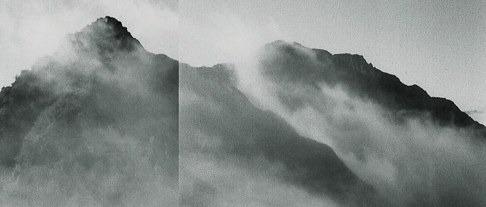 | 雲の中へ.濃霧舞う世界に入る。ブロッケン 霧雫が流れ込み視界を閉ざす。一面に広がりだした霧粒の中.黒部側を包む乳白色の霧壁に私のブロッケンが描かれた。 影は全て.自分で見詰めると自分の影が中心に動いている。丸い輪郭の中心に自分.私がいた。 各々に描かれたブロッケン.歩く列に従い各々に同じ動きで描かれ現れている筈だ。ただ隣りのブロッケンが分からないのが味噌。 自分しか分からぬブロッケン。動くとブロッケンも私を追ってきた。 不帰の剣U峰 ![]() T峰よりU峰を仰ぐ ![]() 不帰岳を越えを振り返る ![]() 歩んで来た不帰と白馬岳霧の窓 南峰に出るとガスの溜まりを抜け.再び青空が現れる。切れたガスからは眩い陽光が僕等を照らし.前方に唐松岳が姿を現わす。 谷底は覗き込めぬが雲海に浮かぶ剣岳は軍艦のようどっしりした大きな山容を増し.一度.雲の下を潜り立山連峰へと連ねている。 僕等は今日最後の登りにファイトを燃やし.再び霧の流れる鞍部を越え唐松岳に立つ。 腹が減った。早速.「炊事!」の一言で.大勢のハイカーが休む脇で.1年3人組は手慣れた動作でコンロを組み立てる。 後は彼等に任している。風を避けた石ゴロの隙間にラジが゙ーゴーと音を立て.もう直ぐだと云っているようだった。 唐松岳 |
