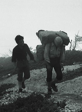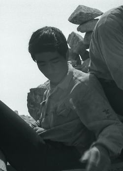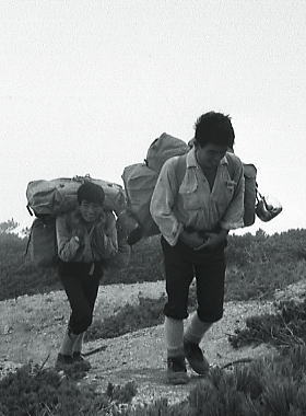 大黒岳の登り合宿ではないダッシュ ![]() この五龍岳への頂稜は手首を過ぎるとハイカーがぐっと減り.我々だけの独占した縦走路になっていた。 白沢の小屋までもう直ぐだ。 競馬 ダッシュしたものの歩調は乱れ.息も堪えだえだが競馬になった。 松本はグロッキー気味だが鈴木.飯田に如何にか付いて行く。 鈴木に私のザックを重ねた。Csは近い.背負ってみろと。頷く彼.初めは笑い顔が見えたものの消えて行く。 大川も飯田に自分のザックを乗せ追い掛ける。2つのザックを背負い踏ん張る彼等。合宿か? 再びガスが濃くなる中.後輩達はラスト.ラストと掛け声と共に踏ん張った。 |