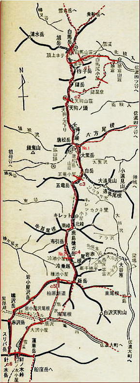 ![]() 不帰二峰北峰より天狗の大下り |