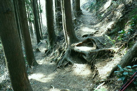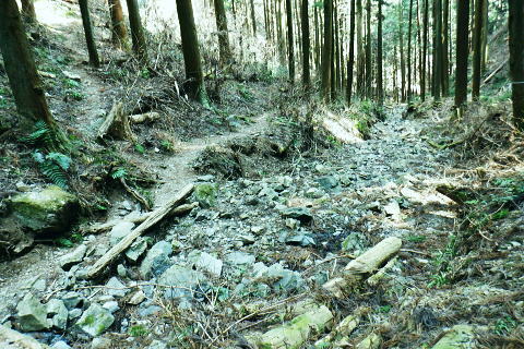 | ・・小仏川右俣.ヤゴ沢流域Top 北浅川の佐戸から南浅川の小仏川源流のヤゴ沢流域へと.三度続けてヤゴ沢左俣に入渓し下山した ヤゴ沢源流の東端.南東尾根の取付きから西端の武相境界尾根の作業道分岐まで綴り.ヤゴ沢本流から旧小仏街道にでる 佐戸bsから茗荷沢左岸尾根.狐塚峠 ザリクボ沢から大久保山北尾根・小下沢分岐 景信山南作業道から小仏川のヤゴ沢左俣 景信山南側の作業道の分岐.11:51右上に詰めれば東尾根が続き.景信山に突き上げる 1月にはヤゴ沢右岸尾根.先月はヤゴ沢左岸尾根,今回はヤゴ沢本流を下る。 ヤゴ沢本流コースは高度差1500mほどの激斜面をジグザグに下り.緩やかになると水場にでて.沢沿いに小仏峠登山口.ヤゴ沢作業道のゲートにでられる。 道標はないが登山道を兼ねた確りした踏み跡の景信山巻道の作業道。最後まで進めば「小仏峠1.0キロ」の道標地点670mにでる。 管理者の違いもあり.一昨年の19号台風の影響でヤゴ沢二俣中間尾根の下山側ゲートには「通行止」と記されていた。 ヤゴ沢左岸尾根のツメ 南作業道の更なる巻道の分岐.11:57左の更なる巻道を下ると先月登り詰めたヤゴ沢左岸尾根に直接下る分岐にでて.作業道の巻道は左側に分けていた。 景信山の南側作業道 仰ぐ杉林の森.12:00 670m圏の高尾陣馬縦走路に合流.戻りヤゴ沢作業道へ.12:04ヤゴ沢西側の小コブ・・再び山に登り始め.初めて高尾から笹尾根を縦走した陣馬山への縦走路。 三頭山を目指した14年振りの道標「小仏峠2.0k」の分岐点に立つ。 縦走路から巻道とヤゴ沢作業道に下る分岐に戻る.12:06景信山の南作業道の入口から巻道を戻り約30mほどで.右下に踏み跡を分ける。ヤゴ沢作業道の分岐点. ヤゴ沢作業道のツメ 650m圏.景信山の南斜面をジグザグに下り左俣本流へ.12:08ヤゴ沢左俣本流 大きく山腹を右に回り込みヤゴ沢本流の仕事道と合流.12:19涸沢を右岸沿いから下る。 500m圏.右岸の作業道脇の水場.12:25コップが添えてあり.やや冷たい湧水に喉通しはよく,洗顔させて頂いた。 下流を見下ろす.12:29 真新しく間伐された右岸斜面は綺麗い.12:32ヤゴ沢二俣中間尾根の末端 450m圏からは細い流心を渡渉し確りした山道へ.12:35左上の作業道はヤゴ沢二俣中間尾根の末端取付き. 先程上部の南作業道の巻道で「通行止」の印を見ている。 その直ぐ右下に続くのはヤゴ沢本流の仕事道で.ここに下りてきた。立木に「ヤゴ沢愁流のこみち」のプレードがあると云うも分からなかった。 二俣出合と木橋 左俣より・・右俣に取付く木橋で.下流側が二俣出合.12:39ヤゴ沢の二俣から本流へ 540m圏.途中に見られた仕事道の側堰跡.12:40起点の標柱に記されたヤゴ沢作業道は延長439m.この辺までだろう。 ヤゴ沢作業道の半分切れ落ちた木橋を振り返る.12:42渡る手前の左脇がヤゴ沢左岸尾根の取り付きで.ゴヤ沢ノ頭に突き上げる。 ほぼ水平になり側堰は19号台風で抉られ補強されていた.12:45 年季ある木橋.12:47 ヤゴ沢右岸尾根の末端にある木橋から振り返る.12:49左上は先々月登り詰めた671m点コブのヤゴ沢右岸尾. 369m.ヤゴ沢作業道のゲート.と旧街道との出合.13:03小仏川二俣で.左手が小仏峠登山口.右は小仏川を旧道沿うに下り.南浅川で国道.甲州街道と出合う。 348m.小仏バス停.13:19背はjr八王子-大月線51号鉄塔からの高尾分岐線の14号終盤鉄塔と右脇がjr高尾変電所。 左のクレーンは中央自動車道の小仏トンネル内の消火設備近代化工事用現場. 13:15小仏bs13:20=13:50高尾.快速13:59=立川.青梅中央特快14:27=14:51新宿. 土日のバスは1時間に3本でている。この後は高尾梅園の影響で増便された。旧街道にはバス同士が交差できぬ所が多くあり.6本が限度とか。 祭としての催しは中止されているものの.今年は既に梅園は満開を迎え.祭とは関係なく育ち.往来も見物人で溢れている。 私の乗車したバスはバス停「梅ノ里入」で満杯に。各停留所毎に増便が来ると乗車を断り.その上のろのろ運転でjr高尾駅まで大幅に遅れていた。 昨年3月,景信山東尾根から木下沢梅園に下りた時は丁度満開を迎えていた。見学は木下沢のみで.今年1月に閑散とした梅園を綴っている。 小仏川遊歩道から初沢地区の金毘羅山を越えjr高尾駅にでいた。今日の車中は猛烈に混み合い.チラッと車窓から満開の梅を垣間見るのみだった。 テルモス・茶-500cc.コーヒー2.妻の弁当箱.コロッケサンド.リンゴ.豆大福・・ストック. 今回の概念図 北浅川〜南浅川小仏川流域 2022.03.13左下がヤゴ沢流域・・アップ図 陣馬街道.佐戸から北高尾山の.茗荷沢左岸尾根から大久保山北尾根―景信山東尾根からヤゴ沢本流から旧甲州街道.小仏 地形図「与瀬」・板当沢周辺・大久保山周辺・ヤゴ沢流域・登山詳細図「高尾」・・シリオブーツ.17762歩 3/05日. 関東地方春一番・・最高18℃・最低6℃,翌日は冷たい北風に. 3/05日. 新コロナ感染症.オミロンBA1・第6破・・東京都はまん延防止等重点処置・緊急事態宣言で続々延長される。2/7〜3/21間 3/13日. 高尾山では7時6.5℃・16時20.5℃ 3/14日. 関東地方は夏日・・東京24.1度・八王子25℃・さいたま25℃