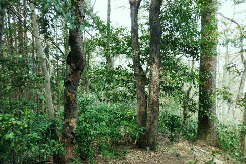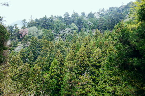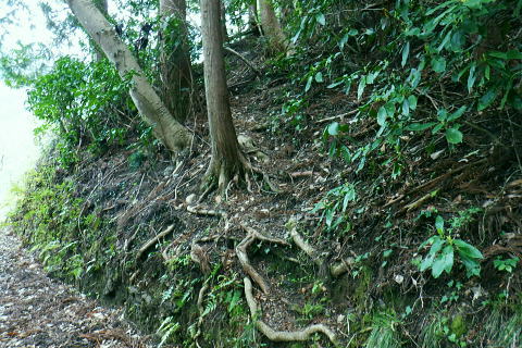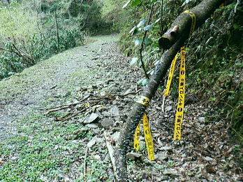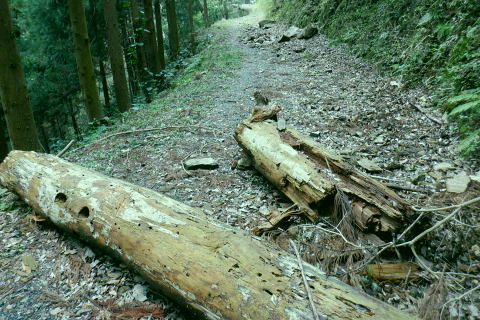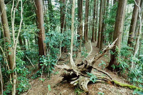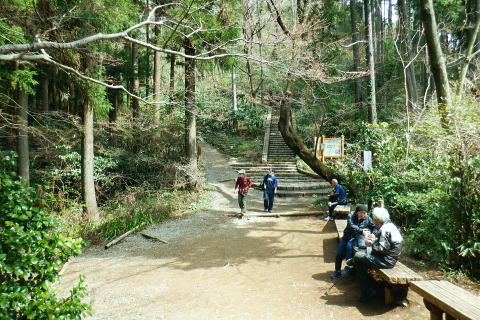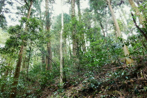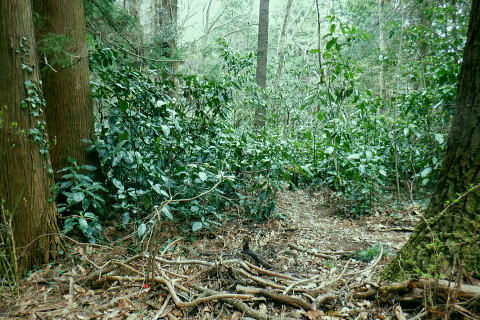 | 高尾山を取り囲む林道を大平・高尾林道から高尾山の頂に立ち.北尾根から右回りに日影沢・蛇滝林道へと綴る。 高尾林道.モミジ台南尾根から富士見台園地を抜け六差路へ―高尾山北尾根から日影沢林道に入り.癒しの3本杉広場に至る 61号鉄塔尾根から大平林道の始点へ 高尾林道終点からモミジ台南尾根・高尾山北尾根から日影沢・日影沢林道へ 三本杉から林道終点へ.荒れた旧道から千代田稲荷大明神と蛇滝参道 蛇滝林道の終点からは金毘羅台北尾根を詰め.高尾山むかし道 大平林道と高尾林道の分岐点 398.0m.大平林道と繋がる「高尾林道終点」.11:26「高尾山自然休養林」の看板の左脇に続く踏み跡はモミジ台への巻道のようだがロープの後.踏み跡は失われているようだった。 ・・bicycle trekking氏によると 林道がU字状に急カーブする所に.1軒の倉庫らしき建物があり.過ぎると大平林道と繋がる高尾林道の終点にでる。 広く開かれた平坦地は明るく焼けるような朝方の強い陽差しを浴びている。周りは山懐に囲まれ風は閉ざされていた。 私より一回り離れた年配の方と出会う。のんびりコトコト歩く姿も.ここではほほえましく.言葉少なく語る言葉に年季が伺え. 贅沢なカット景色に思えるた。歳を自慢する訳でもなく.歩きこと自体が楽しいようだ。私もそうなれる日が来るのだろうか? 道標の向かい側が高尾林道の終点 三叉路.大平林道の分岐で起点は甲州街道.R20号線にでる。右下に曲がる林道は甲州街道への分岐で.森林ふれあい館からは四分岐点の先からは国道20号線の大垂水峠にもでられる。 道標が境をなし.向かい側の高尾山の南側を巻いてきた高尾林道と繋がれ.東側からの高尾林道終点に突き当たっていた。 道標に従いその先まで進めば.左に折れれて稲荷山尾根に乗る。又富士見台南尾根から高尾山.或いは高尾山口駅方面にでられる。写真は年配の方と彼女. 高尾林道からのモミジ台南尾根(富士見園地南尾根)の取付き 390m圏.右の斜面から富士見台園地・モミジ台に登る11:34高尾林道・・林道を更に直進すれば5号路への近道を左に分け.林道の終点に突き当たる。脇にバックミラーが立つ。 右は「行き止まり」の腕木. 左は「稲荷山コースか.高尾山頂.又は高尾山口駅」とある。 高尾林道に入り.林道がモミジ台の南西尾根の下端を大きく回り込むと草付きの台地に出ると.大きな赤白の林班界標板「246/245林野庁」が 南尾根の末端のやや目線上に目立ち見上げられた。その裏側のほぼ真南にカーブする所にはバックミラーがある。 ここに左後方に登る作業道が登ってる。入った所に赤境界見出標「485」があった。道標類はない。 ここは南尾根の分岐で彼女と別れる積りでいたが「先は何処へ!」と聞き返され.「モミジ台から高尾山ビジターセンター」に寄ると伝えると 彼女も一緒に行きたいと。彼女は八王子に住み.アルプスにも毎年歩いている。一度でよいから地図にないルートを歩きたいと節に頼まれる。 時間的な余裕はあるので.そこまでと約束し彼女の願いを叶えてあげることにした。ストックを貸し林道を分け.共に作業道を歩む。 モミジ台南尾根 高尾林道から作業道へ.11:37 小尾根伝いにほぼ直上する.11:44富士見台園地 モミジ台南側の巻道から520m圏.東屋.11:54富士見台西尾根 通う人が少くよかった.12:01奥高尾入口の六差路 奥高尾入口560mに合流。背が高尾山.12:08振り返る左手の巻道から六差路に合流. 山頂西方の六差路の人多い往来にでる。 正面の階段を登れば高尾山の頂.大見晴園地にでる。左右が5号路で5号路の右奥が6号路と稲荷山尾根へ。 階段の南北が陣馬・高尾縦走路.背の左側に北側経路.或いは逆沢作業道。まだ知ったばかりだが萩原作業道から日影沢林道を抜け. NTTゲートから沢沿いに旧径路.小仏山北側の巻道を綴るのが面白いかも。真後ろがもみじ台で.奥高尾入口から北側の巻道を通れば直ぐ先だった。 右後方は東屋から降りてきた富士見台園地からの山道. 左前方に入れば山頂に寄らずして.高尾山北尾根の取付きにでられるらしい。 山頂には幼いころから何度も来て.子供達とも何度も歩んでいる。それなのに常にケーブルカーに乗車し.全く無知の世界。 今までで知るのは表参道と森と水コース・稲荷山コースに城山への樹走路のみ。子供たちが小学校に入学する前後から歩んでいる。 コースの番号は全く分らず.今回は初めて漸く記している。 金毘羅山.大洞山 高尾山559.3mの南側展望台より.12:15階段を登れば右手は南高尾山稜・丹沢山地の展望台・・霞み案下川を隔てての南高尾山稜と朧な丹沢山塊 直進した高みが見晴茶屋で展望が開かれる。頂は街にいるような賑やかさだった。擦れ違うにも肩が触れ合うような混雑ぶりだった。 高尾山.二等三角点.599.30m.点名は「高尾山」.明治の森高尾国定公園。 右脇がビジターセンターで.彼女とはセンター内で別れている。北尾根に取り付く山道の名称がよく判らず.係員に尋ねるも不遇にあしらわされる。 何処へ聞くと問われ.北尾根と云ったのが失敗したのか?