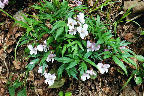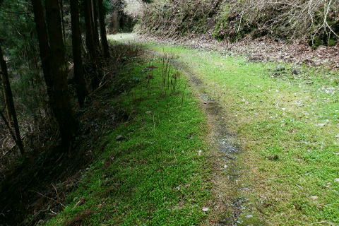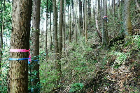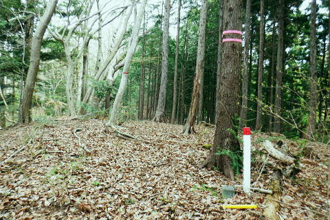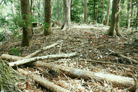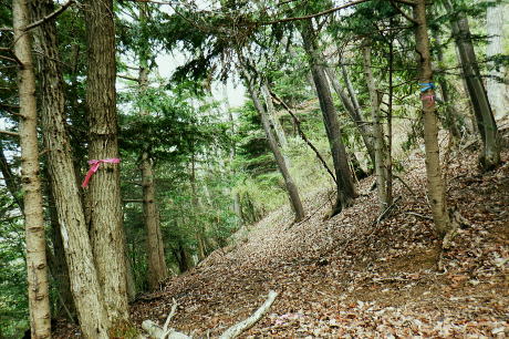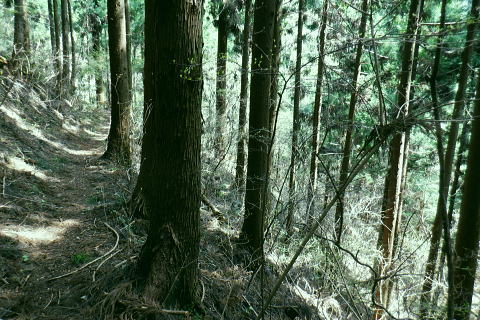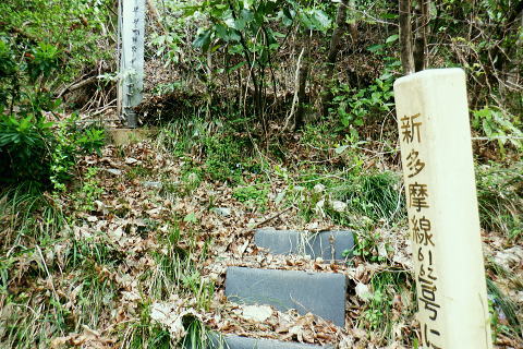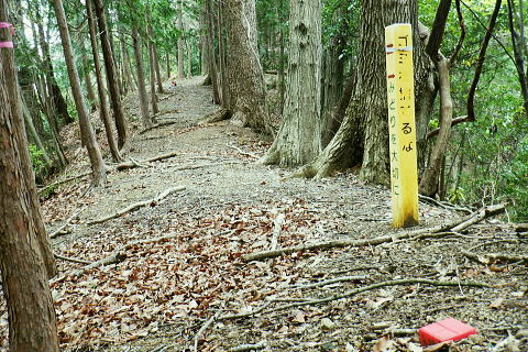 | 朝方我が家の窓越に蒼空を仰ぎ.妻と茶会に高尾山に出掛けてから16年振りの高尾山4 ・・陣馬・高尾山山域Top 小仏城山南支尾根.新多摩線61号鉄塔から「首都圏自然歩道・関東ふれあいの道」にある雷岩山にでて.大平・高尾林道から高尾山へ。 更に南北に取り囲む高尾山北側の日影沢・蛇滝林道へと高尾山の北東端まで綴られた4つの林道で繋ぐ。 高尾山だけに訪れたのは子供たちが小学校に入学し.共に訪れて以来になる。 相模川流域の宮ノ台bsから「の」の字で高尾山に立ち.北尾根から西浅川の流域に大きく回り込む甲州街道の合流点へ繋ぐ。 新多摩線61号鉄塔尾根.関東ふれあいの道.大平.高尾林道.モミジ台南尾根.高尾山北尾根.日影沢林道と繋ぎ.蛇滝林道から高尾山むかし道 2022年04月07日.松村 61号鉄塔尾根から大平林道の起点へ・・彼女と? 高尾林道終点からモミジ台南尾根・高尾山北尾根から日影沢林道へ 三本杉から林道終点へ.荒れた旧道から千代田稲荷大明神と蛇滝参道 蛇滝林道の終点からは金毘羅台北尾根を詰め高尾山むかし道 高尾山 高尾山での茶会の後は陣馬山を含め数回.子供達がまだ幼い小学生の頃.幾たびか親子で通っている。 旧美女谷温泉や陣渓園に寄ったこともあった。私が初めて登ったのが1950年代に従弟兄弟に連れられ登っている。ただ殆ど記憶に残されていなかった。 茶会の後.8年ほど前の「平成26年豪雪」の時はカンジキ履きストックを持ち.開通を待って城山から南高尾山稜を大地沢青少年センターまで.膝までのラッセルをした。 又その時の残雪を求め醍醐峠から戸倉の里山を歩き.そのことが切っ掛けで.旧道繋ぎで北高尾山稜に登るようなる。 今年正月は小仏川の源流に入り.城山東尾根を下った時は.小仏川沿いの散策路から浅川金比羅宮へ.東高尾山稜を齧る形で jr高尾駅に下りている。今回はそれ以来初めて真近かに登る高尾山.大袈裟に云うなら高尾山を遠巻に回りながら改めて見詰めた山になる。 過って入山した時の高尾山も今はおぼろ.まずは高尾山を取り囲む林道を歩み概念を掴むことにした。 再び山に登り始めた時と同じ感覚だった。以前初めて登った奥多摩は川乗山の山名しか知らず.地図も持たずに入山し.道標頼りに登っている。 頂では谷向いの奥多摩三山を教えて頂いた覚えがある。 甲州街道.宮ノ台の水準点 大垂水バス停1つ相模湖よりの「宮ノ台」バス停と水準点305.0m.8:58腰痛は今だ治まらず.日帰りの半日行動で高尾山周辺の林道を歩む。まだ朝方は気温が一桁の日が続くも.少し体を動かせねばと出向くことにした。 予定した行程を進むがが無理せずに歩むしか仕方がなかった。今回も真近な近郊の山へ連続し入山した。移動性高気圧の合間に入りるも晴れ気味の天候. 気温は平年並みかやや低く.4℃〜12.8℃。天候の激変で長雨の冬日を迎え.移動性高気圧に覆われるまで2度ほど延期した。 バスの停「宮ノ台」の道路を隔てる向い側のガードレール内に設けれていた水準点「305.0m」。 場所的には丁度甲州街道のバス停「宮ノ台」で隔てられる.西側が「柳馬場」.東側が「赤馬.あごう」に当たる。 赤馬.は南高尾山稜の南側からの取付きにも成っている。・・水準元点については最後に記載. 4月7日(木)快晴.南北に風強し jr御徒町7:02=7:05神田.特快:10=8:07豊田.大月行8:11=8:33相模湖.神奈川中バス「八07」:39=8:55宮ノ台bs.¥220 路線バスの乗客は少し座席が残る程度.垂水(上)のバス停の1つ手前の甲州街道.宮ノ台バス停に私独りだけが降りている。 まず鉄塔巡視路から大平・高尾林道にでる。そして下山は最初の計画を変更し.日影沢林道の途中からではなく終点からから蛇滝へ下りる。 そして3度目の延期では蛇滝林道へと延び.北側作業道から金毘羅台北尾根を詰め.甲州街道の落合へ「高尾山むかし道」を下る。 数年前に高尾山が大雪に見舞われた折には.小仏峠から南高尾山稜に抜け.大垂水峠を越えはている。それ以来の大垂水峠は間近だったが. マイカーでの往来は殆どで相模湖東ICを利用していた為.来たことのない流域だった。14年前には先輩の迎い車を得て.丹沢山塊を3日掛け縦走し 室久保川の野外活動センターから下山している。その折に車で峠越えをした覚えがある。 国道20号の神奈川中..バス停「宮ノ台」のスタンド脇.9:16バス停から大垂水峠方面に進むと直ぐ左手に.カーブする所に巡視路の取付きがある。 大久保沢左岸尾根に乗り.千本良沢左岸尾根を詰めて.「関東ふれあいに道」の雷岩山に突き当り.大平・高尾林道から高尾山へ。 雷岩山南尾根(61号鉄塔尾根) 20号少し先の「61号・62号鉄塔に至る巡視路」のプラ階段.9:17正面上に獣冊があり.右側から尾根末端に回り込んでいる。昔の鉄塔標柱には手書きの鉄塔番号が付け加えられていた。 尾根鞍部にでて61号・62号鉄塔に分かれる黄色い標柱.9:21城山南支尾根に乗る。 左側から巡視路の鞍部に突き上がる。地図に記されている鉄塔までの破線を探すも藪に消されたか見当たらなかった。 鞍部に直接でてからは左正面に折れ.340m圏