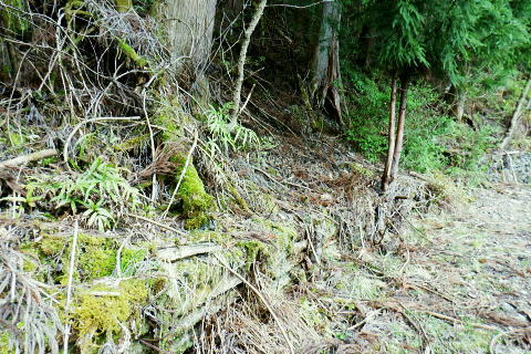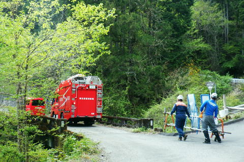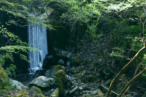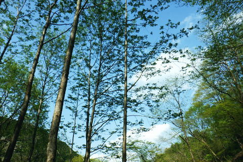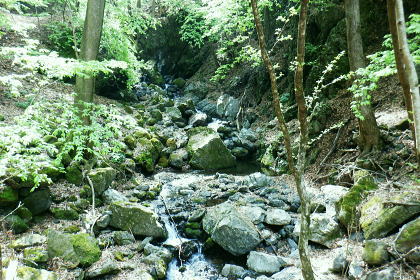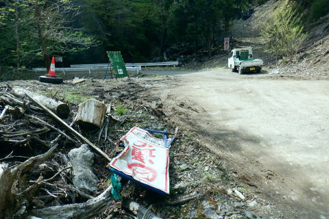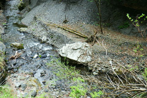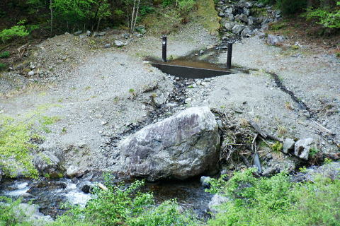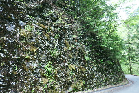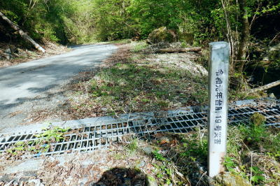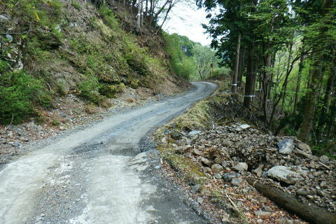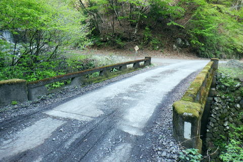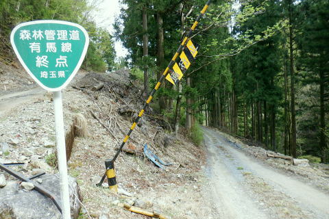 | 日向沢を下り最後にチョット不安定な幾何学的に張られたロープを抜け大名栗林道を横切る。 県営・市営の有馬林道をて繋ぎ合わせ落合へ下り.若葉溢れる有間湖々畔の右岸をただ一人.優雅に歩む。 清東橋bsから長尾丸山南尾根 長沢脊稜から新秩父線50号鉄塔 鉄塔から日向沢を下降し大名栗林道 県営・市営有馬林道へ・・「有馬」と「有間」.遭難事故 大名栗林道から名栗湖南岸道路.さわらび湯bs 県営大名栗林道 830m圏・・大名栗林道の林道分岐広場を横切る.14:28県営有馬林道終点に向かいが降りてきた日向沢 県営有馬林道の終点 有間林道と右下は有馬川白岩沢.(H24年の山と高原図より)大名栗林道に突き当たり.分岐の右.有馬林道の終点から落合へ下る 左側の北上するのは大名栗林道で.仁田山白岩沢左岸尾根・有間峠中尾根・有間山バラ尾根を横切り.逆川乗越で広河原逆川林道と繋がれている。 白岩沢左岸尾根から先は林道の崩落が激しく通行止。「有馬線林道標柱」の脇には「災害復旧工事」の看板が立ち.「令和4年7月29日までとある。 時間帯8:00〜17:00.請負金額.金73.480.000.有限会社ナカケン」と記されていた。 逆の右側の大名栗林道は都県界尾根の上部山腹を大きく棒ノ嶺の北側まで回り込み.黒山の北側から県道53号線の名栗川橋に下りている。 長尾丸山の東西両側では頂稜に近づては離れている。今回は右に見下ろしながら長尾丸山から日向ノ沢ノ峰へ向かっていた。 県営有馬林道 右下の谷間は名栗湖に流れる有間川.14:31「有間」と「有馬」 有馬林道と有間林道の言葉の違いは暫し語られ.落合の起点には「有馬林道」あり.又有間川中流上にも「有馬」の起点がある。 終点は大名栗林道と接している。参考にさせて頂いたHP「好日奥武蔵(奥武蔵の山人)」氏はそのことに触れ.行政機関に質問し. 要領の得ないことを訴えている。 今回下った折.林道最上部の終点には「有馬」の標柱で立てられていた。又途中の林道起点の市営も「有馬」. 落合の起点も「有馬」とある。 このことから統一されているのだろうか? 途中の起点を過ぎても「有馬林道」とある。又最上部の鉄塔分岐下の分岐には「有間」とある。 又少し古い書物には「有間」とある。如何にしたものだろうか。 県道有馬林線の起点上 760m圏・・最初に大きく左へカーブし.ダートからコンクリート舗装に.14:39今回分かったことはこの下の逆S字に林道がカーブする当たりが有馬林道の県営と市営との繋がれる分岐がありゲートがあった。 起点には各種の看板も付けられていたが今は外されている。 又林道に入り漸くGPSが繋がったと思ったものの,その途端に誤作動を起こし.暫くして再び復帰の知らせるを受けていた。 探すのに電源は大分消耗したのか.名栗湖の南岸道に入り.湧水辺りで途切れた。 市営有馬線 路肩に残る木留めと先は石積み.14:43白岩沢(新左衛門沢) 14:47林道を挟み上流側と下流 桧林 有間川沿いは明るく開かれた河原状にいっ時なる.14:48路肩の大きく抉られた左岸の沿いの崩壊はガードレールに柵・コンクリートの側側壁籐見えぬ姿まで改修されていた。 珍しく林道脇に落ちる左岸の堰堤枝沢.14:54急カーブの最後のカーブを終えた正面 市営有馬林道の終点ゲート.14:55杉が川沿いに植えられている理由は昔から奥武蔵では木を植える場合に「植松・谷杉・平桧」と云われていた。 山に上や尾根には松を.谷の近くでは杉を.中段や平らな所には桧を植える。風当りや谷近くの崩れ防止に経験や木毎の根張り等を考えた。 この地方に合った植え方のようです。・・HP「好日奥武蔵(奥武蔵の山人)」氏. 県営林道の起点標柱(県営と市営に境).14:57ここが有馬林道の起点の起点であり.先程林道に入った所には「有馬線終点」標柱があった。すると落合までは「馬」から「間」に変わる有馬林道か? 奥に見えるのは工事用の看板で.更に左奥に先程通過した大きな堰堤が遠望されている。 15:04標柱 数分も歩かずして水場にでる。鞍で使用囲いされていた。呑みずらいがラッパ呑み.程よい冷たさで上手い味。 直ぐ脇に「有馬線.L=88m・W=4.0m」の標柱が路面脇から抜けるよう斜めに傾いていた。 ここからの下りは幅4mと更に1mほど広くなる市営林道にでる。15:00. 又路面の右脇には「令和元年台風19号災害」の小さな標柱が立つ。初秋に起きた台風の災害は奥武蔵から奥多摩・大菩薩と東京近郊の山々に 大きな被害をもたらしている。奥武蔵では長久保山から北東尾根を下り和泉入林道に下りている。その折は台風19号の被害をもろに受け. 和泉入右俣中流は崩壊し.林道の道形を全く失う姿を見て驚かされた。林道は人の背丈ほど深く.抉り掘られていた。 栃ノ木入沢に架かる「栃木入橋.15:06左の橋の親柱には橋名の「栃」の「木」ヘンだけが「栃 」と残され読みとれる。 橋名は「瀧の入橋.川名は「滝の入り」となってをり.林道は「滝ノ入線」と表示されている。 長尾丸山(名郷丸)北尾根 有間川沿いからの眺め・・北尾根西側の末端支尾根.15:16今朝.奥多摩側の大丹波林道から南