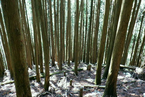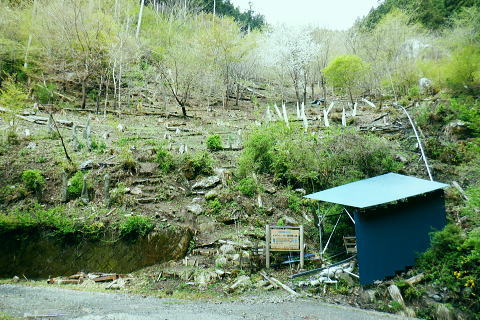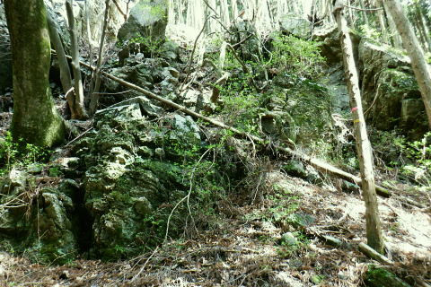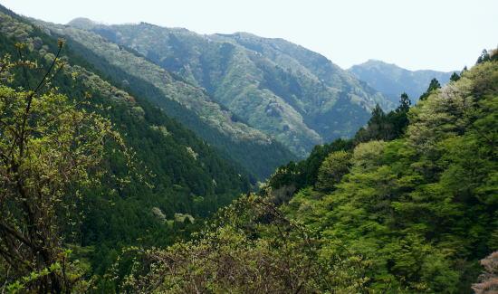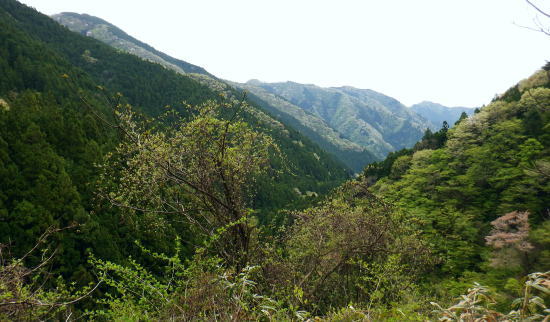 | 奥多摩から奥武蔵へ。都県界尾根を綴り.長尾丸山.クロモ山.山なし山を越え有間林道 ・・大左名無し尾根Top 奥武蔵山地南部Top 長沢脊稜沿いに取り囲む山腹を大丹波川大丹波林道が綴り.背稜に乗ると逆側に並行する有間川有馬林道が横切り.下って名栗湖の湖畔.さらびの湯へ。 清東橋bsから大丹波林道に入り.長尾丸山南尾根を綴り新秩父線50号鉄塔基部で昼食。有間川側の日向沢を下り.有馬林道から落合にでる。 名栗湖は南岸道路から「さわらびの湯」へ 2022年04月23日.松村 清東橋バス停から長尾丸山南尾根・・大左名無し尾根 長沢脊稜でてからは新秩父線50号鉄塔 旧道から日向沢を下降し大名栗林道を下る 県営・市営有馬林道から落合へ 大名栗林道から名栗湖南岸道路.さわらび湯bs 萩ッ平尾根の高峰(払沢ノ峰) 青梅線沿線のjr御嶽駅ホームより南側を望む.7:04電車が御嶽駅を通過する都度.ホームから見上げているのが常に高峰の山。 新緑の淡い色合いの樹林でも.植林斜面の樹葉がはっきり見分けられるほど区分けした若葉のパッチワーク。 駅前南面の高峰北尾根の2つの支尾根の二又斜面に広かる植林帯・・立木が1本.1本.目立ち見上げられるまでに成長した。 1ケ月後にはここ高峰北尾根を左端jから登り詰め.初めて日の出町へと平井川の左岸尾根を下ることになる。 4月23日(土).晴後曇 jr御徒町4:49=4:54東京.快速:59=5:50立川6:04=6:34青梅:36=7:11川井:24=7:40清東橋bs.370m・・日の出4:57. 車窓から見詰める東空はどんよりした重い雲に覆われている。暗黒色気味のその深い暗がりの層雲を抜い.オレンジ色に染まる朧な太陽が昇る。 丸く大きい。夜明けを迎え.明るみと共に層雲は急激に薄れだす。切れだした好天は最低は気温二桁に押し上げていた。今朝は防寒具もなくシャツ姿. 日本海は高気圧に覆われ.太平洋沿線に気圧の谷が東進.寒気の影響が現れるも.太平洋高気圧に押し上げられ,冬と夏型の競い合う猛暑をもたらした。 26.2℃の夏日は13日に続き.今年2度目になる。その為.夕方からの予報は雨.今朝の予報は曇天に留まるらしく助かっている。 腰痛は治り.奥多摩地区から有間山稜に登ろうと考え.一番近い所でも仁田山白谷沢右岸尾根からの林道歩き.少々きついと思われる日向沢から降りている。 初めてだが林道の多い余裕を持ってのコース。それが短いながらポイントとなる堰堤を越え.変形コースに何か得した気持ちを起こさせていた。 7:47駅のガードを潜って青梅街道.大正橋東詰の石仏 大丹波.清東橋バス停 路線バスの改正に伴い.今回は電車からの乗り換えに10分以上の間隔が空き.山への身支度を整えている。 ゆったり座れる程度の乗客を乗せ.八桑bsで右に登る都道・川井上成木線を分け.大丹波の終点清東橋バス停にでる。 真名井北稜・都県界尾根へと何度も通ったアプローチ. 今回は都県界尾根を越え.奥多摩から奥武蔵の山域に入る。 左は四等三角点標石がある公共の駐車場.7:55長尾丸山南尾根の取付きにでるまでに大丹波川左岸に現れては消える「大左名無し尾根」をその都度見上げながら大丹波線・大丹波林道と綴る。 清々しい朝の風を受け.足元も軽やかに歩きだす。今回も山と云うより長い林道歩きが待っている。この気持よい大気を思い存分に吸っている。 午後には予報が急きょ変わり.本降りら曇に変わり助かっていた。ただ本当に崩れるのだろうか。深すぎる蒼さは雲さえ湧きそうもく.カラっとしていた。 バス停から10分ほど歩み百軒小屋を過ぎると斜め左に駐車場とトイレがあり.その駐車場の片隅に四等三角点標石がある。 標高は405.48m.基準点は「奥中茶屋」.ここで標高点を合わせている。右向かいは奥茶屋の駐車場で.先の奥茶屋で.右手に棒ノ嶺へ登る木橋を分けていた。 450m圏・・朴橋を左岸に渡り大丹波林道に入る.8:06奥茶屋を過ぎ.左に大丹波浄水所を抜けると気持よい杉の樹林帯を回り込み.本流を右岸に渡る朴橋にでる。 大丹波林道の起点があり.今だ大きな「通行止め」の看板が掲げられていた。19年9月の19号台風以降.ズーと朴橋は閉鎖されている。 橋正面の左脇の作業道は北稜の伐採地付近へ登ってをり.作業道に入ると川縁に自然そのままに造られた東京都水道局の「大丹波沈砂池」がある。 この取水場からは先程の大丹波浄水所へと送られていた。 笹尾沢右岸尾根 朴橋を渡った右角の広場が右岸尾根の取付き棒ノ領の西側肩に突き上げている 大丹波林道 路面にヒビが入り.綺麗に改修された林道.8:092019年9月の台風19号の影響をもろに受けて.翌月に訪れた時は.林道はこの辺から崩壊し.「通行止め」の処置が取られていた。 その後.綺麗に改修されガードレール・カーブミラー・看板の3セットが付け加えられた。それから2度目の入山になる。 川側の真新しい作業道 8:15槙ノ尾橋の手前.565m圏に大丹波川へ下る広い作業道が切り開かれた。まだ新しく覗き込むと対岸に延びているようも思える。 又林道を20mほど進むと作業用の歩道が築かれ.斜め下には堰堤が見下ろされた。その直ぐ下部になる。 ![]()