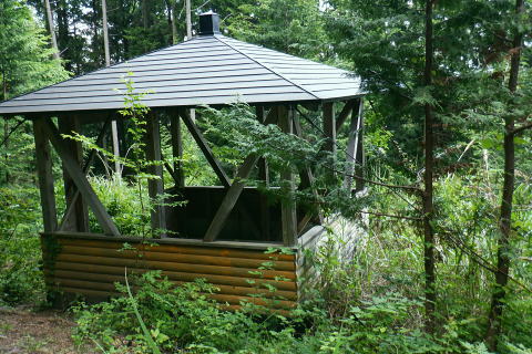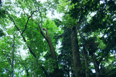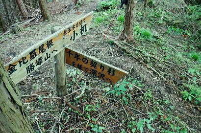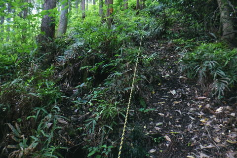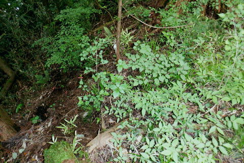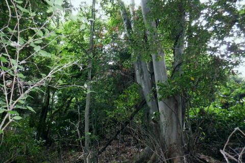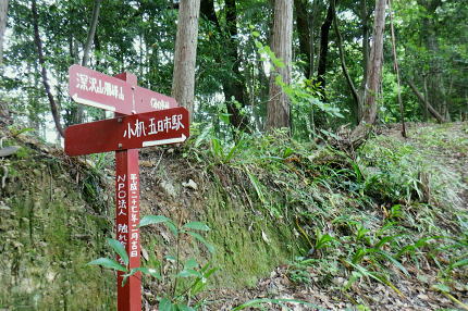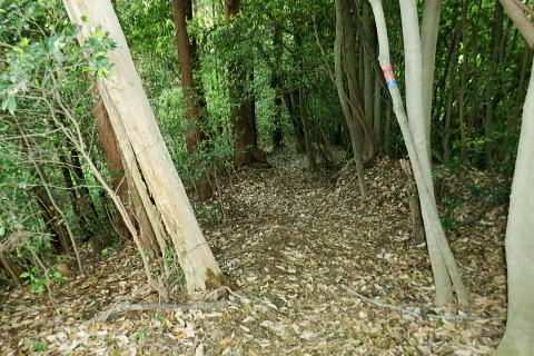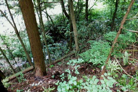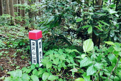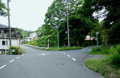 | 市界尾根(あきる野市・日の出町)から更に幸神尾根に乗り換え.ロンデン尾根を分け.下山は幸神川沿いの日の出町にでて.更に平井川左岸尾根の末端へ。 幸神尾根に入り深沢山から東屋.ためぐち山から地蔵尾根と反対側の東屋から幸神川に下り.そして前回の五日市駅までのアプローチを探っている。 jr御嶽から高峰北尾根・・市界尾根 金比羅尾根・・日の出山から白岩山 ロンデン尾根・・白岩山から深沢山北峰 幸神尾根・・ためぐそ山から幸神川・・幸神.jr五日市 深沢山北峰・勝峰山口方面の分岐 451m・・ロンデン尾根と幸神尾根の分岐.15:32更に続くロンデン尾根を直進すれば勝峰山(かつほやま)を越え幸神へ 幸福尾根 15:39勝峰山への分岐を分け.ロンデン尾根から南方の幸神尾根に乗り替える。15:35 そして直ぐ深沢山460mの標高点が書かれた赤帽杭の頂に立つ。何処か頂だか分からないほど頂感はない。杭がなければ分からなかっただろう。 幸神尾根に乗り下ると直ぐ右手にあきる野市深沢へ下る分岐にでる。 谷間に巨樹の「千年の契り杉」があり,あきる野市の3本の巨樹の1つがある。幹周7.8m,樹高45mで,2本の幹が成長し, 伸びる過程で再び融合し.「H」の形に繋がり成長。三内川,深沢入林道の景勝地で傍に深沢家の屋敷跡あった。 390m圏の台形型の低いコブ付近.15:43 仰げば賑やかな雑木.5:48 380m・・幸神尾根の東屋.15:56東屋(多宝美徳山荘).平成25年建設とある 東屋の窓越しに望む南側の五日市方面 1本の長い固定ロープで急傾斜を下る.6:00 林道と接する分岐の道標.6:04右上の腕木に「ぐみの木峠」とあり.再び右上の細い幸神尾根に乗り.ためぐそ山を越える。 ためぐそ山 杉林に囲まれた327m点コブ.16:07こんもりとした頂には日の出山の会の赤帽黒柱に「ためぐそ山」と記されている。 南東でなく北東尾根へ東屋から東屋へ 幸神尾根の東屋から幸神沢の右岸の小沢にある東屋へ。頂の南東に延びる尾根は地蔵山からぐみの木峠へと続く。 そのコースと分かれて東側のやや北寄りに掛かる斜面は緩やかに降りている。下草絡む斜面の薄い踏み跡は消えては現れ.バラバラの踏み跡。 適当にジグザグに斜下し踏み跡を探め降りていた。 16:15そして確りした踏み跡を横切るのを見る。右に習い緩やかにトラバースすると小沢にでた。そして小広い河原の台地に東屋を見下ろす。 もう1つの東屋 245m圏・・古い旧登山ブームの時の東屋か? 16:19幸神沢の東屋 Webの地図に記された「327」横の「幸神神社の・・」の「幸」と「神」の間上の窪溝の小沢。その小沢にある堰堤の左岸台地に 山側を向き建つ。大分年期の入った東屋で.コの字にベンチがあり.山側を向いている。旧登山ブームだった頃の東屋だろう。 地形的には北側の枝沢が東に流れ.その対岸には破線が幸神尾根へと延びていた。出合は林道が幸神沢の右岸に渡る橋角. 尾根のツメ前で切れているが.先程の尾根上の東屋付近に抜けるようだった。 幸神川の右岸支流・小沢 左側が幸神沢.右が小沢の出合角東屋の東側に落ちる最後の沢縁は短いながら抉り落ちている。赤いテープが1つあるのみ。 この風景から考えるとこのルートの踏み跡は直下して刻み込まれている。本来は横切った確りした山道を綴り里に降りるのでは? 幸神川の出合に向かい短い激斜面を下る兎も角直下して這いくだる。両手を支えに這い下る小さな起伏を足元に見ていた。 幸神川 川底にでて以外と澄んだ水・・見た目より流れ有り洗顔した。 230m圏.川底から左岸の林道に這い上がる.16:30這い上がり出た所が左岸の舗装された幸神入林道 幸神入林道 幸神川左岸道(幸神入林道)を下り.直ぐ最初の民家にでる.16:31左の山腹は勝峰山のロンデン尾根.430mで南東と南南東とに2つに尾根の分れる。林道と離れる側の南南東尾根の末端. 右岸に石垣を見る.16:23新井から続く細道ならば「くみの木峠」を越えて小机にでる筈. 大久野第一配水場の手前に「八坂神社登坂口」の木柱が立つ。木柱の脇から朽ちた木橋の手前で.右上の踏み跡をたどる尾根伝いになり 次第に踏み跡は明瞭になる。八坂神社の御堂400mがあり.右寄りから短い急登で幸神尾根に乗る。 幸福五差路 変形の五差路にでて振り返る.16:40右上の道路標識.三角「止れ」の裏がロンデン尾根の末端. 正確には平井川と幸神沢の出合になり.幸神神社がある。 右上が降りてきた幸神地区からの林道。正面の道路は通学路とあり.先はY字の県道にぶつかる。角はラーメン屋で.向かは中学校。 擦れ違った車の運転手.中年の婦人に聞いている。左の境から新井地区になる。前回はヒッチハイクし,奥の都道を通っている。 斜め左後方は幸神神社が建立されている。右折して正面の殆ど往来のない車道を歩む。 後に知るも天然記念物の「アカシデ」は日本全国の野原に自生するも.「シダレアカシデ」は希少変種で.現存するのはここ五日市の1本のみとか。 樹齢は700余年.根元の周囲は1.8m.樹高5.8m.4月中旬に赤一色の花をつける。 右手は幸神川右岸に回り込む集落.左上辺りに「くみの木峠」がある