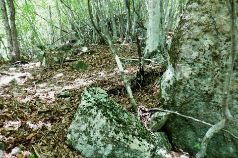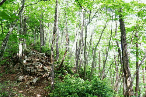 | 都民の森東側の笹尾根.ハチザス沢ノ頭東尾根へ回り込み1149m点コブへ 南尾根と大茅尾根の二又から大沢ノ頭から笹尾根を鉢指沢ノ頭東尾根に分け.「深山の路」へ乗り待望の伐採地.井戸入右岸尾根にでる 飯尾から大茅南尾根のツメ.二又 南尾根分岐から大沢ノ頭・鉢指沢ノ頭東尾根「深山の路」 東尾根を分け.1149m点井戸入右岸間尾根へ 1000m圏肩から檜原街道.上数馬 大茅南尾根・大茅 大茅尾根と合流.12:28ここからは大沢ノ頭へ大茅尾根詰める 大茅1237m 再び急登が始まる.12:32 1280m圏.最初の岩場.12:43 12:43 1350m圏.12:51 中間の岩場.12:55 13:00 1430m圏.3つ目の岩場 13:12 カサカサに重なる枯葉.13:20 大笹尾根を見上げる大沢ノ頭のツメ.13:22大沢ノ頭 別名.ブナ山・大ナギタ・1482m.13:23半年振りに笹尾根の大沢ノ頭に立つ.前回は三頭山西峰を越えてきた。 頂のベンチと笹尾根の槙寄山方面権現山稜と三ッ森北峰 北峰の霞む右奥は百蔵山か?霞むも前回より展望は良かった。大沢ノ頭に立ち.左脇の樹間の切れ目から南面の展望. 大寺山尾名手尾根と坪山東尾根. 遠方に朧すぎるのは道志の主稜と赤鞍ケ岳か? ただ富嶽は望めず。 笹尾根・「深山の路」を下る.13:37大沢ノ頭から鉢指山東尾根の1149m点コブまでの間は何度か都民の森・鉢指沢から入山を繰り返していた。 東尾根は三頭沢と鉢指沢との中間尾根で.過っては石原小屋窪右岸尾根から鉢指沢ノ頭を越え.大沢ノ頭大茅尾根からヨゴク尾根を下り飯尾に下りている。 そして今回は1本の尾根として初めて繋げて下る。ここからは登山道に入る。 鉢指沢ノ頭 笹尾根と分かれ.左に折れ鉢指沢ノ頭東尾根.「深山の路」に入る 正面は下る笹尾根昨年,三頭山から笹尾根を下り.ここを通過し槙寄山から大星沢左岸尾根を原へ下っている。 鉢指沢ノ頭東尾根 熊倉山1334mの標高点あたりを通過 都民の森への分岐 都民の森「石山の路」への分岐左は「石山の路」で「ブナの路」から三頭ノ大滝にでられる。 一昨年.石原小屋窪左岸尾根から「石山の路」を下り,日陰三頭ノ沢を横断し.大沢山東尾根を越え三頭山ナメリ沢を下りている。 今までは鉢指沢ノ沢からの登り一方だったが鉢指沢ノ頭から初めて東尾根を下っている。尾根正面は閉鎖中の「深山の路」が続く。 冊越が「深山の路」地形図には波線が幾つも付けられているが「石山の路」以外は閉鎖されている ここからは細尾根を急下降手前に横枝が何本かあり閉鎖の印 右下から登ってくるのが石原小屋窪右岸尾根2018年09月. ハチザス沢と三頭沢との中間尾根から日陰三頭ノ沢を横断―大沢山東尾根を越え三頭山玉川を下降・・峰谷橋bs 長く続く丸太階段を下る以前登った時に比べ大分.小さな丸太階段は崩れ.痕跡が殆ど分からなくなっている。 鉢指沢側を見下ろす 1190m圏.「深山の路」の分岐を振り返る地形図の破線で左後方から合わさる「深山の路」の分線. 先程分かれた「石山の路」の分岐道として. ここから「石山の路」の尾根越の地点で合わさっていた。崩れている模様で.閉鎖されていた。 飯尾から大茅南尾根のツメ.二又 南尾根の分岐から大沢ノ頭・鉢指沢ノ頭東尾根「深山の路」 東尾根を分け.1149m点井戸入右岸尾根へ 1000m圏肩から檜原街道上.数馬 |