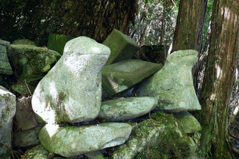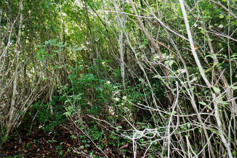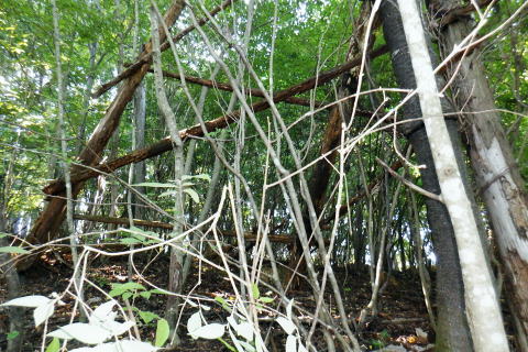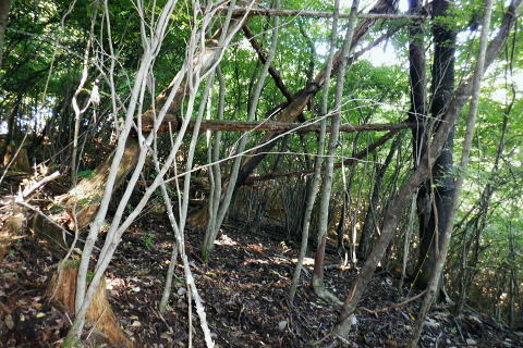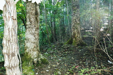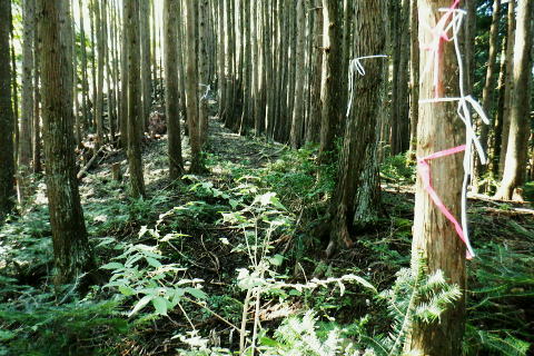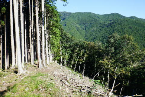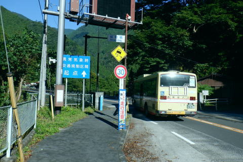 | 多摩川.橋詰から北秋川 以前jr奥多摩駅前広場から岳を望み.駅から歩み縦走した九竜山北東尾根には入らず.橋詰トンネル口から上流側の山ビコ尾根を詰め.九竜尾根と合わさり. 江戸小屋尾根から鞘口山にでている。下りは背稜の町界尾根を越え.最短のクロノ尾山中尾根から神戸へ下る。 ・・御前山から藤倉ルートは右足腿のトラブルから変更。 2022年09月26日.松村 橋詰から山ビコ尾根・680m点・・9号鉄塔と石祠 露岩帯から鞘口山江戸小屋尾根 黒ノ戸山中尾根から神戸岩入口Bs 鞘口山江戸小屋尾根 jr奥多摩駅前広場より.正面の店舗は旧「丸屋」.7:31江戸小屋尾根の右隣りが山ビコ尾根.左下は池ノ平沢右岸尾根 今回の路線バスのアプローチは橋詰バス停から山ビコ尾根の下端に回り込み.江戸小屋尾根へと繋ぐ鞘口山を詰める。 過っては猛暑トレーニングの折.病院裏から九竜山北面に延びる尾根の二又で.小留浦手前から九竜山北東尾根(江戸小屋尾根)を詰めていた。 町界尾根を東進し.大ダワから大岳山・御岳山へと綴り.日の出山北尾根を下りjr御嶽にでている。 当時は猛暑の蒸す強い陽射しを浴び.通うハイカーも殆どいなかった。目的がトレーニングとしたため.暑さに我慢が続き諦め切れぬ山行になっていた。 此のところ.奥多摩むかし道から九竜山北西尾根の末端をよく眺める機会が多くなった。それではと山ビコ尾根から詰めることを今回考える。 御前山からは直接.指久保山南西尾根を下り藤倉に下りる予定だったが.右足の筋を痛めるトラブルから下山は急遽.クロノ尾山中尾根に変更している。 多摩川右岸を綴る山並・・中央が江戸小屋山と重なる九竜山 手前は登計平・・2016.03.04/14:28小留浦隧道口上にむかし道あり.第三氷川トンネル氷川側からレールが残る所を過ぎると登計原越えに望めた展望. 大沢の詰め.鋸尾根と九竜山.江戸小屋山尾根とに挟まれる間が大ダワ.その先に霞む遠望は市道山。 九竜山の南側肩から末端に尾根を2つに分け.北西に延びる山ビコ尾根は橋詰に下り.北東に延びる支尾根は井戸入林道を横切り.病院前に下りている。 登計(とけ)トレイル 平成22年6月.南氷川に登計トレイルが完成し.心身の健康管理を推進する日本初の「森林セラピー専用ロード」。全長1.3km.ウッドチップ使用。 奥多摩病院の裏が九竜山江戸小屋山尾根の取付きになる。下流側の笹平橋.弁天橋を渡り.鋸山林道を200mほど入り.左後方の愛宕方面に入る。 水平歩道に入り.中段左側に幾つかある照明灯は奥多摩総合運動公園のクランドで南西寄りにでる。ここが登計原であり登計原遺跡があった。 登計トレイルの入口で色々な自然と向き合った施設を綴り.登計林道にでてトレイルは終わる。奥に青色の大きな道路標識は登計林道。 右下は小留浦(ことずら)地区. 青梅街道.370m・・檜村橋東詰の橋詰バス停.7:479月26日(月).快晴後曇 jr御徒町5:11=5:15神田:19=6:05立川:08=7:30奥多摩:40=橋詰bs・・日の出5:31四谷辺り. 往のバスは丁度全員が座れ.最後に乗り最初にバスを降りている。台風崩れの熱帯低気圧が本土とも離れ.季節的には少し暑いが 登山日和に恵まれていた。以前は駅から歩いたものの.今日は大事を取り乗車した。 それもバスで7.8分の距離。又ここからは大分前だが城山にでて小中沢の経路を周回したことがある。 その折は取付きの南尾根で雌鹿30頭を超える集団に出遇ってもいた。 山ビコ尾根の下端 左景・・檜村橋より.7:57橋を渡った街道の左奥が橋詰トンネル. 多摩川を隔てる右(左岸)は城山南尾根の斜面. 正面の谷間陰が境集落 三木戸山と城山南尾根 右景・・多摩川左岸の小中沢沿いの山並先月の山行は桃ケ沢バス停から井戸小屋尾根を詰め小中沢流域の径路を横切っては山腹を巻いていた。 その時の下山はこの写真の裏側を横切るよう抜けている。三木戸林道・城山旧道を下り奥多摩駅にでている。当時も天候には恵まれていた。 橋詰トンネル口手前を右折.8:00中央の暗闇が橋詰トンネル口. 潜れば境橋.橋上の境バス停にでて,対岸が境集落。 トンネル口手前の右に入る里道に入る。先は多摩川の川畔のワインドにある橋詰集落に至り.奥の二俣からは左に回り込む。 向いは2件の民家.その手前の作業道から取付く.8:11背は多摩川を隔てての城山南尾根 民家前から手前だけ刈り取られた作業道の取付き日向ぼっこしている老人に何処に行くかと声を掛けられた。林道から鉄塔へと伝えると道が違うと。病院からの江戸小屋尾根を指しているらしい。 馬頭観音にでると伝えると。私が草刈りをしたと云う作業道を教えて頂いた。会社の駐車場を過ぎて直ぐ先にあった。 山ビコ尾根下端 左上景・・最初の植林と灌木帯手前の雑木に被われた旧電波柱から右に斜上すると山ビコ尾根の下端に乗る. 古い黒帽白杭のある作業道.8:12平坦な切り開かれた草むらを過ぎると立派な作業道にでて.アッと云う間に小尾根に乗る。 ただ尾根に乗ってからは猛烈な藪絡み.8:14蜘蛛の巣 時折,林道・鉄塔と途切れる所もあるが基本は藪絡みの斜面が延々と続く。又