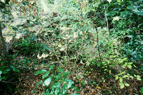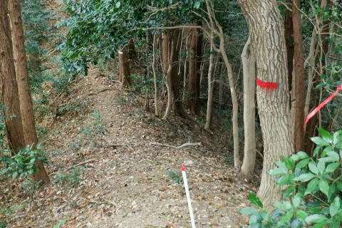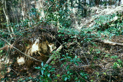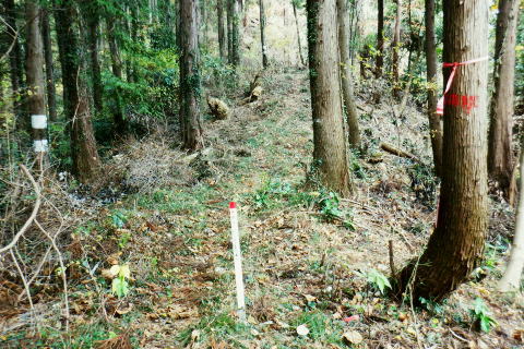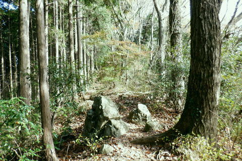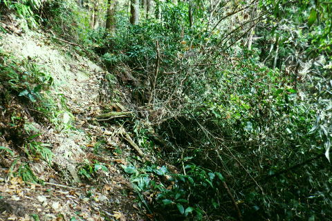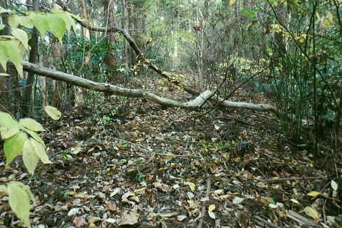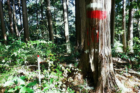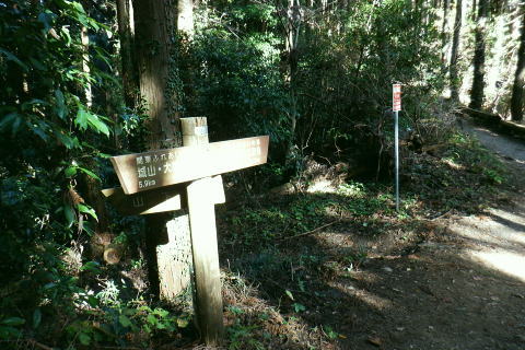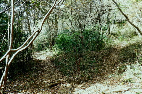 | 三井水源林の背稜南面の中腹道は通行止で諦め.展望を楽しんでから南高尾山稜から分かれ.440m圏コブ北尾根(榎窪川左岸尾根)を北上 榎窪川林道の高尾グリーンセンターにでてからは地蔵様の分岐から東高尾山稜を登り返す。 大垂水林道から南高尾山稜.無名の500m圏コブ東尾根 中沢峠.西山峠.440m圏コブ北尾根から榎窪川林道・・素敵な榎窪川左岸尾根 地蔵分岐から東高尾山稜から拓大尾根とjr高尾駅 津久井湖々畔周辺・・津久井城山.小倉山.675m点峰 南高尾山稜から南側一番の展望台ボランテヤの森の展望台と異なるが更に高い南高尾山稜(首都圏自然歩道)の見晴台に並ぶベンチからの城山町の眺め。 右景・・三井の展望台より.11:27 左景・・城山町の全貌を望む 中アップ津久井湖 足元の野尻地区・・湖畔の雪積もる風景三井水源林.名手分岐から山腹道に入るのが今回一番のポイントだったが残念ながら諦める。南高尾山稜をそのまま直進し見晴台で大休止. 長く連なるベンチに座り.日向ぼっこの昼食を摂る。サンドイッチは常に妻のカツサンドとオレンジ. 展望は明るく暖かい.それ故霞みも強し。 西山峠430m北側 背稜はは「首都圏自然歩道」「関東ふれあいの道」.11:53二つの小コブを南側から巻き.少し奥に入る入沢山483m.東山mと小コブを巻き西山峠430mにでる。 入沢山から483m点コブを擁する北東尾根は私有地で下山は御連慮下さいとのこと。 道標の裏側左の山下方面へ下れば殆ど台風の影響のなかったらしく入沢川林道から甲州街道の山下バス停にでる。 先(右)の南高尾山稜は泰光寺山から三沢峠を経て榎窪山から草戸山に至る。以前高尾山が豪雪に襲われ.積雪1mを記録した。 尾根と云うよりはそれ以来の山域になり.コースも間々ならぬが.少し藪を漕ぎに.三沢峠の手前.440m圏コブ北尾根から榎窪川左岸尾根に入ることにした。 西山峠南側 西山峠の道標の山道を挟んだ反対側は.左下へ三井分岐を振り返る左下は三井水源林から金毘羅宮前にでて.登ってくる予定していた山腹水平道。 右上は南高尾山陵の西山峠.又「首都圏自然歩道」。 更に背稜を綴る東へ 眩い陽差しはシャツ姿に.12:00泰光寺山々頂 別名は高山430m圏.12:03南面の明るい陽射しを浴びている。展望はなく.短い北西寄りの北尾根は入沢川に没している。 泰光寺山の右北側寄りにはには確りした作業道が付けられていたが? 榎窪沢左岸尾根の取付きはこの先だろう。 泰光寺山から先に更に200mほど歩むと440m圏コブがある。 道標があると云い南側の巻道を外し直登したが先が分からず.一度縦走路の巻道に下りて.いる。そこで北側から下る別の山道と合わさった。 ここ薄い踏み跡を登り返し.440m圏のコブで道標を見付けていた。 下る縦走路の巻道と合流点の真中で珍しく赤帽黒杭が立つ.12:14振り返す山道二又.右上の山道へ登り返す 牧道を戻り.赤帽黒杭を見ると直ぐ下の二又にでる。直進して下れば三沢峠.北側に方向を変えれば草戸山から東高尾山稜にでられる。 二又の中央奥に境界見出標「27」が隠れるよう立ち.ここを右上に登れば榎窪沢右岸尾根に入る道標に出くわした。 南高尾山稜440m圏コブ北尾根の取付き 道標奥の腕木は「通行止め」とある分岐.12:18道標には「関東ふれあいの道 ←城山.大垂水峠・梅ノ木平→ 行止まり(小さく境界線)↑」と示されていた。 この「行止まり」の腕木方向が榎窪沢左岸尾根の取付きで.南高尾山稜と分かれて.入沢川と榎窪沢に挟まれた少し荒た藪の北尾根に入る。 左岸尾根は末端近くまで破線路が綴られ南浅川の吉高菊一稲荷社の裏側に下りている。近くに貴布神社が祭られ.又梅ノ木平も近い。 榎窪沢左岸尾根 最初から根元ごと抜けた倒木を過ぎる.12:19倒木の裏に境界見出標「29」と赤帽石柱あり. ふかふかに潜る深い枯葉径.12:22当然踏み跡はない。尾根中央に開けられた中間が先を示していた。 踏み跡は途切れ途切れ.12:25440m圏コブの取付きから600mほど先.一時急坂を下り穏やかに尾根幅が狭まりだす所. 380m圏でほぼ直角に右(東)から支尾根を合わせる。 この北東に回り込む尾根伝いには作業道が綴れ尾根が起き.下ると自ずと榎窪沢沿いの林道にでられる。 関東ふれあいの道コースで.林道沿いには四阿が建ち.林道ゲートを過ぎれば.左手に「高尾グリーンセンター」が建つ。 12:30痩せ尾根ではなく.踏み跡はあっても落葉に靴まで埋まる。境界見出標と赤帽石柱がセットで点々と付けられていた。 背稜に入ってかr高度差はそれほど変わらぬ大らかな尾根。南高尾山稜の取付きから中央の2つ並ぶコブは400m圏. 尾根下端の支尾根二又にでても.高度は380m圏を保っている。主尾根を間違えることはないだろう。12:26. 途中には「私有地につき立入を禁ず.地主」とある。こんな奥まった所にも立てられていた。 南高尾山稜の北面の支尾根周辺には何処も.国有地と接する私有地の多さにびっくりさせられていた。 400m圏の2つの小コブが東西に並び此処を東へ.12:32「東京350」の表示があり.高さは400m.ここから東尾根へ. 林野庁の「境界見出標三十三支