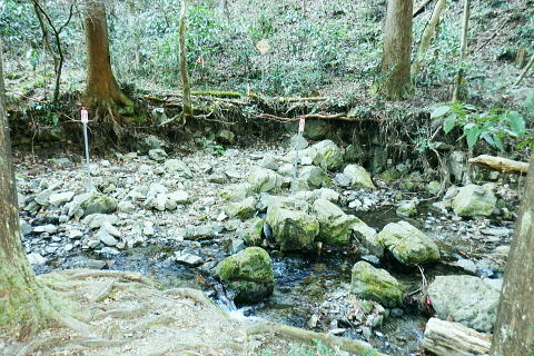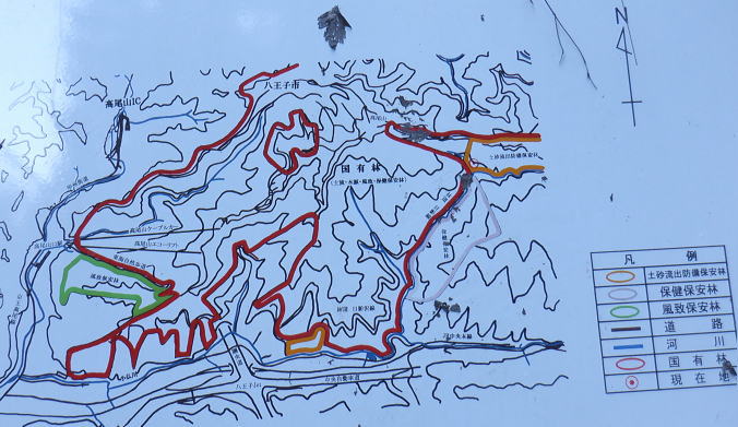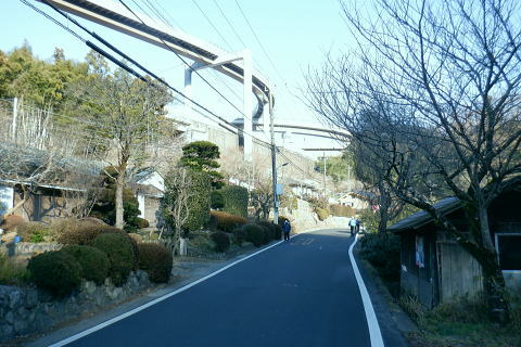 | 体力の消耗から城山北東尾根の日影乗鞍を越えを諦める。今までも細かい変更なり諦めは意外とあるも.この大きな決断は初めてのこと。 逆沢作業道口から日影林道終点にでて小仏川左岸沿いの旧街道から列車供養碑に寄り高速道の側道を歩む。 jr中央東線を横切り.側道沿いの梅園上部に回り込む。新井.駒木野宿.小仏関所からはjr高尾駅北口へ 高尾山むかし道脇から城見台・・高尾山ちか道 北側作業道.蛇道から水行場参籠所 大見晴522m圏東尾根から高尾山の頂を巻き逆沢作業道 日影林道.小仏川左岸の中央高速道の側道からjr高尾駅・・列車統撃事件の供養碑 逆沢作業道の「保安林図」.土砂流出防備.保健 逆沢作業道の起点の保安林図左下の落合地区からほぼ斜上して右上の高尾山にでて.赤で囲う逆沢作業道から日影林道に下りている。 右隣りのオレンジは萩原作業道.下部の水平は小仏川. 左側の下流に向かい八王子JCTを過ぎ.側道から甲州街道の西浅川分岐に戻る。 林道起点の直ぐ下流側にある水量の乏しい逆沢出合.13:39城山東尾根の取付きの反対側に白沢へ左上から逆沢が落ち込んでいる 小仏城山北東尾根の560m圏から没する南尾根 日影林道の対岸は白沢沿い.13:52本来はここから南尾根を詰め.小仏城山北東尾根の日影乗鞍北尾根へと横断し.旧街道の小仏にでる積りでいが.気より足の怠さが先にでる。 諦めて大人しく旧街道からjr高尾へ戻ることにした。時間の余り過ぎる山行になるも.何かホッとする自分がいた。 白沢対岸の北東尾根にでる南尾根の取付き地点足首の不安から小仏城山東尾根越えを断念。山を下りて登り返すのは難しくなっている。 まだ時間は充分あるが経路を詰めるのは難しい。予備のコースを下調べしておくべきだった。帰路は小仏川右岸の遊歩道でも歩もうか? 南尾根を仰ぎ今回3度目の間食を摂る・・テルモスは紅茶・茶500cc. 道中の食は妻のサンドイッチ.バナナ.リンゴ.饅頭。そして下山する。 日影林道と日影沢林道について 共にピストン林道.東京都産業労働局森林事務所森林産業課提供 HP「mirusiru.JP」氏の「正しい日影林道と日影沢林道」によると都事務所の調べで赤線の日影林道 (正しくは林道日影線)は東京都の管理。青線の日影沢線は国の管理。紫の線は私有地。 キャンプ場からの二俣の右俣は白沢沿い日影林道になる。 萩原作業道の起点から仮のP沢の出合までは管理者は分らぬものの二俣のNTTのゲートの上部は私道の簡易歩道になる。 現登山地図等はそれぞれ改正版などで訂正されていようだった。 ウッディーハウスキャンプ場.14:11前方の右側.は「イロハの森コース」.日影沢林道方面. キャンプ場に下る左脇が城山東尾根と白沢。 小仏城山北東尾根の446m点コブから南東に落ちる尾根に作業道が綴られている。 その尾根末端の取付きは広場の左側の炊事場の裏.家屋の脇にあった。キャンプ場前を渡渉し.南側に回り込み320m辺りまでは斜上. 446m点コブの南東尾根に乗り.頂からは小仏城山の東尾根を進む。取付きの偵察だけはして於く。 いろはの森コース口・・手前の写真.右奥脇の分岐 右後方から合わさる作業道.登山道の分岐で振り返る.14:12高尾山北尾根の末端に回り込み.日影沢林道の仮ゲートから高尾山の「いろはの森コース」に入るコース。 今回は蛇滝から大晴台522m点を越えてきた。4号路で「いろはの森コース」を横切り高尾山にでている。 高尾山北尾根を下ることも考えたが出来るだけ知らぬ山道に入ろうと諦めている。 旧甲州街道側から見る日影林道の終点.14:19林道終点の右脇に立つ道しるべの石碑。左側は旧街道(都道516号線)に突き当り.旧道を左に折れた小仏峠方面から撮っている。 又私の裏側が小仏川と日影沢の出合で.石しるべの小仏峠へ・左側が甲州街道の西浅川方面になる。右前方が林道。 小下沢 旧道沿いの小仏川に出合は突き当り.本流は右に回り込む14:20日影バス停脇の小下沢がjr軌道を潜るの水管を覗み込む. 手元の木下沢と小仏川本流との出合。日影の中半から裏高尾に掛けての旧道の路面は一日中晴天に恵まれるも雨上がりの如く濡れている。 帰路jr高尾の線路沿いにでて気が付く.朝方から大分遅くまで霜が降りていたに違いない。 乾燥注意報が出るも.その部分は今だ乾かず濡れていた。.左下は取水場で.日影バス停より. 八王子JCT 旧街道を下り裏高尾町を通過.14:23左方の高みは265m点コブ. jr湯の花トンネルの上下線2本が別々に潜っている。 手前が上り線で昔からの隧道・・東側の隧道口付近には悲惨な戦争で巻き込まれた列車の慰霊碑が立てられています。 旧道.蛇滝口の反対(北側)から猪ノ鼻山(いのはなやま)265.0m点コブへのルートは「立入禁止」とある。街道沿いに峰尾商店があり. この店前にある山道から猪ノ鼻山に登れるのだが。山の下には中央東線が潜っている。 梅郷橋から高尾天満宮にでて.遊歩道を綴る積りていたが急遽変更し.踏切から猪ノ鼻山のトンネルを覗き込み. 高速道の側道伝いに下り旧道に戻ることにした。 摺差を過ぎ小仏川の下流を