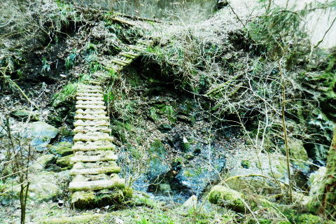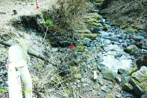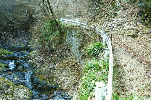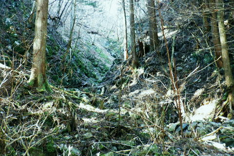 | 熊倉沢右俣から笹尾根の大ツイジにでて.栗坂峠を南北に横断する ・・笹尾根大ツイジ周辺Top 多摩川水系の南秋川.出畑から大ツイジの860m圏小コブにで. 栗坂峠から栗坂ノ尾根を下り相模川水系の鶴川.新井へ 熊倉沢右俣右沢出合から千ケ尾沢右岸尾根の815m点北東支尾根を詰め大ツイジへ。背稜歩きは短いのが難点.栗坂峠まで進み. 支尾根伝えに芦沢山を越え小伏へ。県道に出てからは上野原あきる野線を経て新井までの車道歩き 2023年03月02日.松村 南郷から熊倉沢林道と熊倉沢右俣右沢の右岸・・勘違いから 千ケ尾沢右岸尾根の支尾根と栗坂ノ尾根 小伏から棡原藤野線.間道.旧道から新井 本来は矢沢林道から熊倉林道に移り.熊倉沢左俣の二俣右沢から熊倉山北尾根を綴ることを考えていた。 そして大ツイジから栗坂ノ尾根を下る予定でいた。7年振りに訪れた熊倉林道は19号台風の影響を受け大分荒れ果てていた。 2008年4月に初めて笹尾根を歩き.西沢を遡行し終えた男女と出会い.大ツイジに面した谷間の良さを知らされていた。 又熊倉山省武連指尾根からトヤド浅間に回り込んだ時は.不思議な地形の尾根を見付けている。16年8月に陸軍滝から千ケ尾沢右岸尾根. 笹尾根軍刀利山長尾尾根と周回し熊倉沢流域に入り.秘密の場所にも訪れた。 今回は熊倉山北尾根からの大ツイジを横切り.栗坂尾根を下り里の長さを味わう積りでいた。それが何を勘違いしたのか.再び右俣に入り. 先は踏み跡も途切れ.藪絡みで入渓を難しくしていた。結果的に北尾根を諦め.右俣右沢から新たに千ケ尾沢右岸尾根の815m点北東支尾根を詰め. 変更して大ツイジにでている。後は予定通り栗坂峠を下ることにした。 南郷バス停377m.7:58出会い 東京近郊の山々を登り始めた頃.奥多摩の概念を掴むため奥多摩三山に続き.笹尾根を繋いで最後の縦走.終えている。 その折.大ツイジで熊倉沢西沢を遡行した一組の男女ペァーと出会っている。喜び溢れる彼女の瞳が煌き印象的に素晴らしかった。 その7年後には単独行者と遡行前に熊倉林道終点で出会い.遡行を.終えた山頂でも再会し.歳相応の楽しい会話を楽しんでいた。 その折は陸軍滝から千ケ尾沢右岸尾根を詰めている。今回は19号台風の影響を受けての入渓は藪絡みが切れず難しかった。 入渓もままならず.右俣右沢に変更し尾根を詰めていた。そして大ツイジにでて.ここでも朝方2人だけだった路線バスの乗客と. それが大ツイジの稜線にでた途端.彼女に声を掛けられた。ほぼ同じ場所. 不思議な因縁のようにも思えた。何にか繋がりがあるのだろうか? 3月02日4日(木).快晴後曇 jr御徒町5:29=5:33東京:45=6:33立川:41=7:15武蔵五日市.数馬行:20=7:56南郷bs377m ・・日の出6:10.東小金井付近. 払沢ノ滝廻りの路線バスに乗るのも久し振り.通勤ラッシュを過ぎると小学生.中学生の通学バスに早変わりする。以前より人数が大分増えたようだ。 慌てて後席に移る。ハイカーは私よりやや若い婦人の単独と2人だけが残された。南郷バス停で軽く会釈して先に下車した。 それが又もや私が笹尾根に出た途端. 860m圏小コブで出偶している。後は笹尾根で2組の単独行と擦れ違っていた。 南秋川.大沢橋.8:03昨夜.夜半からの烈風が吹き曇天から朝方は回復気味になる。板東平野を広く覆う層雲を抜けるよう走る電車. 車窓からは先に雲堤の境が仰がれていた。檜原街道に入ると疎らになった積雲も途切れ.雲1つない紺碧の空が見上げられた。 その空もゆっくり流れるよう.天候は次第に崩し薄暗い早い夕暮れを迎えるようなる。 出畑の集落から矢沢林道に入る・・大沢橋から望む 林道に入り直ぐ右手の「檜原 教育の森」.8:09「教育の森」の右(北側)の尾根がトヤド浅間東尾根. 新たに作られた矢沢林道のゲート.8:11左裏側に流れる矢沢に掛るのがリトル雄滝. 中央区の森「美しい地球を未来もころもたちに」も初めて.8:13矢沢二俣 落合橋の橋真下が二俣で矢沢と熊倉沢の出合.8:14橋を渡る左が矢沢林道. 林道は笹尾根軍刀利山長尾尾根と連行山万六尾根に挟まれた矢沢沿いを遡り. 最後は山道から茅丸に突き上げている。二俣の中間尾根は笹尾根軍刀利山長尾尾根の末端。 熊倉沢林道 右の林道の起点を通過.熊倉沢左岸道に入る 直ぐ林道を断つよう崩壊した跡地.8:18前回は2016年8月の猛暑に訪れている。その後19年の19号台風による被害で悲惨な姿に変えられていた。 熊倉沢左岸道を歩む.8:24 今年もあった鞍だけのゲート.8:26 林道の側壁が崩壊して.振り返る.8:28 点々とある崩落地.8:29足まで見届けられた鹿骨? その残骸が林道に残されていた.8:40 熊倉沢の左俣出合.8:46 林道を分け.熊倉沢二俣.左俣へ下る丸太橋.8:49過って訪れた時は茂る下枝類に閉ざされ全く分からなかった木橋を渡り.熊倉沢右俣の右岸へ。 右俣の丸太橋上部にあった廃屋跡.8:51中央奥に木橋が見下ろせる ぼうぼうの踏み跡から小沢を渡り熊倉沢右俣を辿る.8:55 対岸右俣右岸の熊倉沢林道を望む.9:01 対岸右俣の.林道終点広場.9:04 右俣二俣の河原へ.9:10踏み跡の作業道は全く失われ分からず。