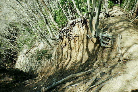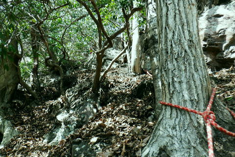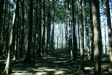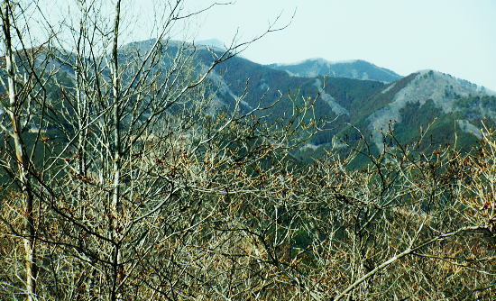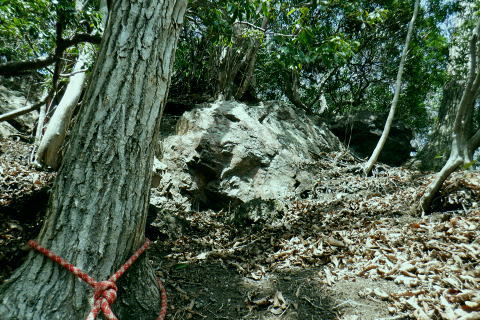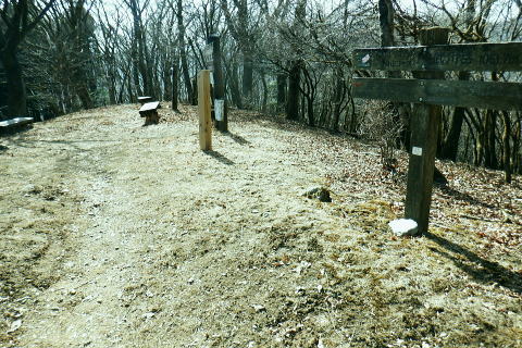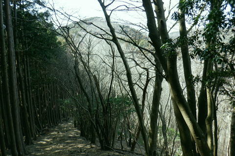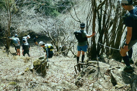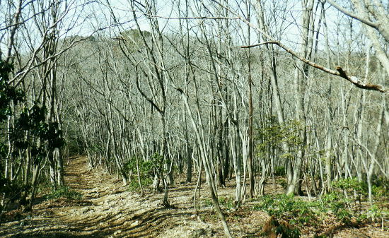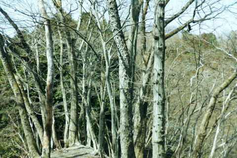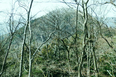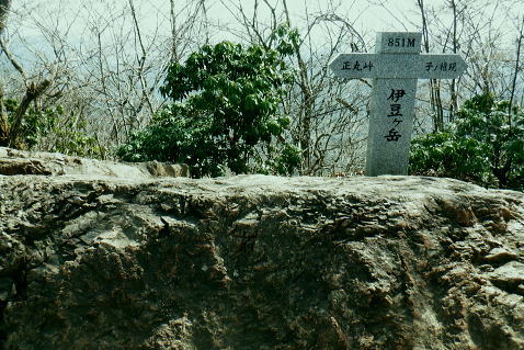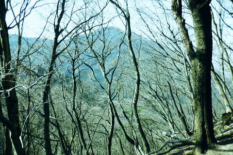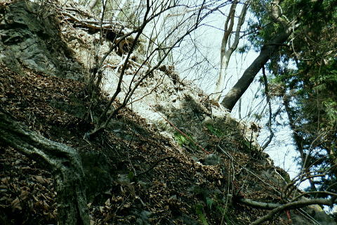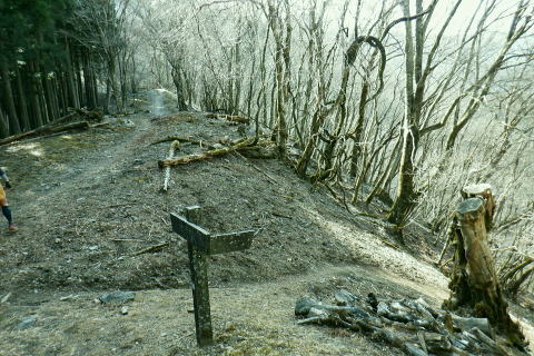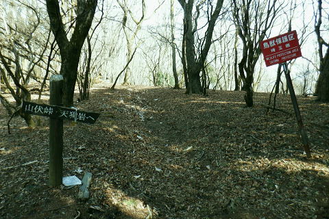 | 東尾根の最後のコルを越え伊豆ケ岳へ.そして妻坂峠 ・・如何なる思いとふける中.一人旅が団体さんの群れに巻き込まれる 伊豆ケ岳を東西に横断し.むかし歩んだ山道に合わさ.再び山伏峠から前武川岳.武川岳を越え妻坂峠へ。 西吾郷駅から森坂峠・伊豆ケ岳東尾根.750m圏小コブ 伊豆ケ岳から山伏峠を越え.武川岳から妻坂峠・・小広い武川岳と長谷川カップの仲間達 妻坂峠から山中林道.名郷 伊豆ケ岳左隣りの小御岳 左景.770m圏コブから左前方.10:39伊豆ケ岳 右景.正面.10:39ドンと落ち細かい起伏から最後は鋭く突き上げる 750m圏の根這う小コブ.10:30再び根這う小コブを越え.左脇の立木に箒のような鉄製が置かれていた? 最後の小コル 小さな800m圏コルを見下し下る.10:551本目のロープ 伊豆ケ岳の頂点へ.左側に巻道あり.11:00直上せず巻道から斜上し.トラバースの感じでロープ場に出ている。直上した方がよい。 2本目のロープ ストックを畳み這い上がる.11:033本目のロープ 11:05 ロープを終え茂みを潜り右上に回り込む.11:05 山頂の人顔と道標の裏側が見上げられた細長い頂のほぼ中央に立つ。上る途中で間々声は聞こえたものの大勢のハイカーと出会う。 その出た所が大国さま前で目が合い.びっくりさせられてしまったがこれも愛嬌。ちょっと多過ぎる気配の登山者だが 伊豆ケ岳と聞けばしょうがないかも。正丸峠は余りにも有名で.山を知らぬ妻さえ知ったいた。 恐らく私も60年ほど前に初めてこの山を選び登った山でもある。伊豆ケ岳は「山レコの伊豆ケ岳」の説明と合わされ考えると 東側の山麓の畑井に伊豆権現が祭られている。森坂峠を越えずに東尾根に至る里道は.西吾野駅から国道を森坂峠とは反対側に右折し. 椚平・畑井と北側に回り込み.伊豆ケ岳東尾根北側の谷間を綴る林道花桐林道の起点を右に分けている。 東尾根の末端を回り込み.林道日用線の分岐,日用橋を左に分け.久通りから東尾根に取付きている。その畑付近は江戸時代末期に 伊東韮山の代官.江川太郎左衛門の領地。明治四年の廃藩置県により一時期韮山県であったことから伊豆ケ岳という山名が付けられていた。 伊豆ケ岳.虚空蔵山 三等三角点標石.標高は850.90m.基準点は「伊豆岳」.11:09山頂が侵食に抗して残ったチャートから伊豆ケ岳がある。岩質的には秩父帯の岩石からなる山で.上久通層と花桐層からなり, 上久通層はこの地域で砂岩を主体とし.チャートを含み伊豆ケ岳山頂から正丸峠にかけて分布しているとのこと。 南北に細長い.以外と広い頂の北側.11:12頂の北方の突き当り右が男坂,左は女坂で五輪山大蔵山から正丸峠へ 昔は正丸峠までバスが入り.男坂を登って頂きに立った覚えがある。 スマホ・・7.8人の中年グループがスマホで周りを確認か? 見ていたので私は開く手間を省き山伏峠の分岐を教えて頂いた。 頂は細長い台地状.その中央にいる。そして道標は頂の両端にあった。地図では点で分かれているが.そこが分らぬとちょっとした騒動に。 全員がスマホで調べて分からず.自分で確認する場を失っていた。脇の青年に山伏峠はどの辺ですかと問われる。 西側と伝えると頂の南側に分岐があると教えて頂いた。スマホの画像は頂をアップ過ぎ.トンチンカンになっているらしい。 自分の行く先が画像に移され他のコースを見失ったようだ。地図なら全体から絞るよう頂を見付けるものだがスマホは最初からアップし過ぎ. 反って見ずらくしていた。皆さんに感謝し礼を述べ別れている。余りスマホばかり熱中すると地図の読み方を失うかも知れない。 武川岳群界尾根 頂伊豆ケ岳山頂部北側からの眺め.11:13前武川岳.武川岳.肩奥は武甲山.その右奥が間の奥が蔦岩山1004mと焼山850m.手前は郡界尾根に乗る見晴台909m峰. 武甲山 点線は山伏峠からの前武川岳南尾根「伐採地」の字の左下辺りで昼食を摂っている。正面の尾根は武川岳郡界尾根で.蔓岩山と995m峰乗る。 山伏峠から武川岳へ 山伏峠分岐835m.11:22登山道としての山伏峠は.地形図の山伏峠よりの100mほど北にあります。地名登録は武川岳登山口付近。伊豆ケ岳の登山口は20nほど南にある。 伊豆ケ岳からの南下は「関東ふれあいの道」を通り天目指峠へ.右下は県道53号線の山伏峠越える。歩むハイカーは私独りのようだった。 分岐から右に折れ急坂から長閑な尾根伝いを下る.11:32 山伏峠手前の広い台地に祀られた石祠.11:43山伏峠 11:11 登山道の峠11:11⇔11:46北側の武川岳分岐.(中央にあった峠名). 真横の武川岳登山口.11:50 過って 昭和57年に正丸トンネルが開通し国道299号線は新道に切り換えられ.ここ旧国道は県道53号線に格下げされている。 その以前に西武鉄道の正丸トンネルが昭和44年に完成し吾野〜西武秩父駅間が開通.正丸駅もでいる。 今は正丸駅から直接.伊豆ケ岳を目指すのが一般的になっていた。 過って伊豆ケ岳を訪れたのは丁度60年前になる。当時の西武鉄道の終点が吾野駅だった頃で.1963年4月に吾野駅から乗合バスに揺られ. 当時は国道だった山伏峠を越え.終点の正丸峠バス停に降りている。