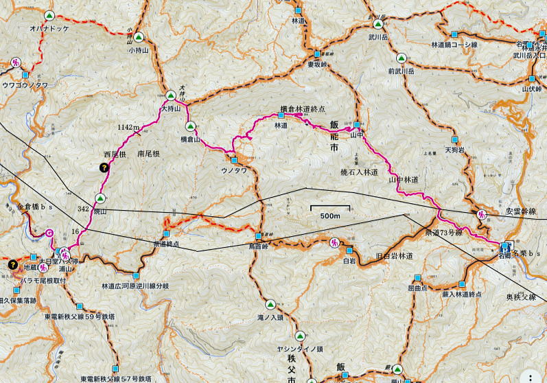| 奥武蔵・伊豆ケ岳周辺・・奥武蔵山地TOP 高校になり初めて企画した同級生山行. 奥武蔵.伊豆ケ岳と武川岳を再び訪れる 高麗川の西武西吾野駅から森坂峠を越え伊豆ケ岳東尾根から山見峠を越え.前武川岳東尾根から武川岳と繋ぎ妻坂峠へ。 下山は山中入に入り山中林道を経て向河原・名郷へ。台風19号による林道閉鎖は今年度中に開通する見込み. 2023年03月11日.単独 高麗川の西吾野駅から森坂峠を越え伊豆ケ岳東尾根 2023.03.11伊豆ケ岳から前武川岳東尾根を経て妻坂峠から山中林道を下り入間川.名郷 ![]() 地形図「正丸峠・秩父・武蔵日原・原市場」.登山詳細図「伊豆ケ岳」・・シリオブーツ,28.785歩 名郷から県道・山中・横倉林道と渓畔林を繋ぎ.苔むしる丸石群から山上の秘境を思わすウノタワでて.市界尾根を北上横倉山を経て大持山に立つ 帰路は大持山西尾根(山ノ神尾根)を下り2年振りに訪れる浦山川俣へ. 2023年04月01日.単独 ウノタワを東西に横断 2023.04.01地形図「原市場・秩父・武蔵日原」.山詳細図「伊豆ケ岳」・・シリオブーツ.22.114歩 武甲山 1963年05月.お花畑=根古屋から武甲山表参道―裏参道から宇根を経てお花畑・・初めての単独山行 2017年05月.一ノ鳥居から武甲山表参道―小持山.大持山を経て妻坂峠を下り周回する.マイカー・・OB会 伊豆ケ岳.正丸峠 1963年04月.正丸峠から伊豆ヶ岳.武川岳・・初めての山行計画 1967年10月. 〃 ・・ 現役主催.OB親睦会1.雨天で山行は現地で中止.正丸峠でジンギスカン 1970年11月. 〃 ・・ 現役主催.リーダー権授与.正部員昇格コンパとOB親睦会2.子の権現泊,雨天で山行中止 2023年03月.西武西吾野駅から森坂峠を越え.久通から伊豆ケ岳東尾根・前武川岳東尾根から武川岳と繋ぎ妻坂峠から山中林道を経て名郷bs 2025年11月. 兵ノ沢右岸尾根から二子山.焼山林道を下り.松枝旧名栗街道を横断し川越山北西尾根を詰め正丸峠.ヒッチハイクでR299にでて.正丸駅へと徒歩 概念図・・上半は兵ノ沢右岸尾根..焼山沢右俣左岸尾根.焼山林道. 後半は松枝.旧名栗街道を横断し.川越山北西尾根から正丸峠 滝入ノ頭・蕨山 2020年11月.名郷から鳥首峠にでて滝入ノ頭・橋小屋ノ頭から逆川乗越―蕨山金毘羅尾根を下り・左岸尾根からさわらびの湯bs |