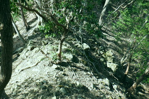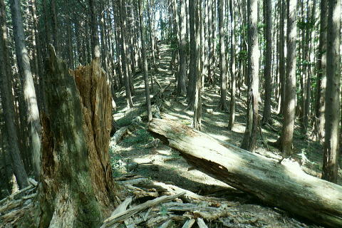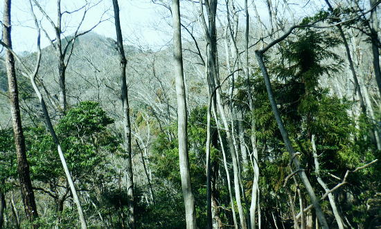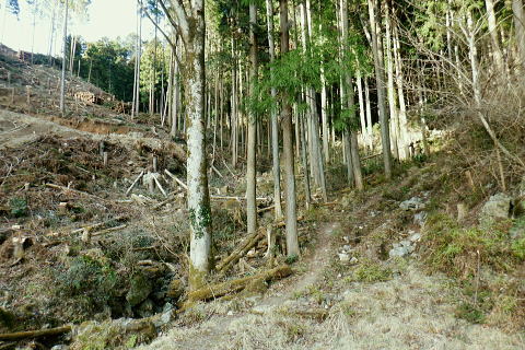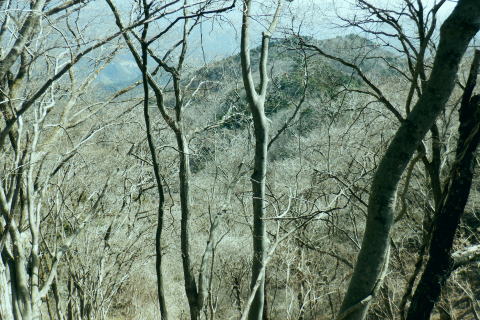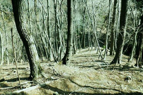 | 伊豆ケ岳と「ウノタワ」・・奥武蔵山地Top 高校に入学し初めて企画した同級生山行. 奥武蔵のまだ冬枯れた懐かしい地名の台地.正丸峠. 伊豆ケ岳と武川岳を訪れている。 高麗川.西吾野駅から入山し.伊豆ケ岳から武川岳を経て妻坂峠から入間川(名栗川)沿いの名郷に下りていた。 今回は2度目の山行を取る。一度目は高麗川の西武西吾野駅から森坂峠を越え伊豆ケ岳東尾根に立ち.後はむかし歩んだ山道を丁寧に綴っている。 記憶の浅くなった昔の記憶を掘り起こし.山伏峠を越え.前武川岳東尾根から武川岳へと何とも云えぬ一人旅。そして妻坂峠を越える。 下山は山中入へと下る。山中林道を経て向河原の名郷へと。2019年の台風19号による林道の崩壊は今年度中に開通する見込み.。 続は「ウノタワ」の存在を途中で知り.話しを聞くだけで魅了され.行かねばと。大持山の山行を兼ねて.裏山の川俣に下りている。 2023年03/11日と4/01日松村 西吾郷駅から森坂峠と伊豆ケ岳東尾根750m圏峰 伊豆ケ岳から山伏峠・武川岳・妻坂峠 妻坂峠から山中林道.名郷 1963年(s38年)4月28日に高校の同級生.道広と木原と3名で伊豆ケ岳に西武電車.乗合バスと繋ぎ登っている。書き留めてあったメモによると 「西武池袋.池袋線の終点.東吾野駅下車.駅からは西武バスで正丸峠へと繋いでいた。歩き初めは正丸峠から長岩峠―大蔵山720m ―五輪山770m.男坂―伊豆ヶ岳(虚空蔵山)―山伏峠―前武川岳1003m―武川岳1051.7m―妻坂峠(地蔵峠)―山中林道.山中入 ―名郷bs.(青梅秩父線=名栗.飯能名栗線)=西武飯能=国鉄池袋で解散とある。 当時は登山ブームの時代で夜行登山列車や山バスが.名の知れた山であれば何処でも繋がれ広く運行していた。 想い出としてはスナップ写真から登山靴を購入,チロリアンハット被り.それなりの服装をしてようだ。 山小屋で山バッチとペナンと購入している。何となく記憶に残る正丸峠。凄い岩場は男坂だったのだろう。 その後は緩やかな起伏の雑木林を抜けている。何とも言えぬ地名に憶えていた記憶が後から追ってくる山行だった。虚ろな山名に想像を膨らませ登っている。 何か懐かしさに加えられる風景と云うよりは.記憶が朧すぎ.確かに来たことがあるという確信が得られたのが.何故か嬉しかった。 妻坂峠では当時.対岸に聳える武甲山に強い印象を受けていた。翌月に単独で再び登っている。その景色も.今日は霞み強い中の頂を見ていた。 西武秩父線.西吾郷駅244.0m.7:06所沢駅発の特急「秩父61号」が通過.3月17日までで時刻表は改正される。駅前広場の坂を下り売店あり. 3月11日(土).快晴後高曇 jr御徒町5:07=5:27西武池袋.準急:39=6:32飯能.秩父線:34=西吾郷244m・・日の出5:58.練馬. 初めて自ら望んだ岳に再び出向く。伊豆ケ岳の頂まではコースを変更し.直接西武西吾野駅から歩くことにした。 中盤の山伏峠から先は同じコースを歩む。又妻坂峠は6年前にRHCの仲間達と一ノ鳥居から武甲山表参道.小持山.大持山.妻坂峠と周回した。 更に3年前には大場戸橋から鳥首峠にでて蕨山金毘羅尾根を下っていた。今回は崩落後の山中林道に入るのも1つのポイントとして名郷にでる。 明け方出掛ける折.大通りにでて初めてすれ違ったのは野球の日本のユニホームを着た青年だった。WBCの第一ランドが始まり.昨夜は韓国戦.連勝 祝杯を挙げ.始発で戻ってきたのだろう。私は逆転したところまで観戦し.今日の為休んでいる。 土曜日にも拘らず下車したのは5.6人. 森坂峠を越え東尾根から登るハイカーは一人か.二人はいると思っていたが私独り. 山頂で大勢のハイカーと出会いながら越えれば又独り.その後不思議なパーティと出会うことになる。 本陣山 駅前広場より.7:08聳える本陣山の山陰に伊豆ケ岳は隠れている。裏側へは左に並び聳えるイモリ山との鞍部.森坂峠を峠越える。 伐採中の小床林道から杉の植林帯のを登り.一面に間伐された斜面から久通の集落に下り.伊豆ケ岳東尾根を改めて詰める。 イモリ山方面 国道299号線沿い.7:13駅改札から右側のヘアピンカーブを下り西吾郷橋を渡って.山崎地区の天満宮の鳥居を右に見ると国道299号線に突き当りる。 西吾野駅入口交差点をを横断. 向いに流れる高麗川に並行する国道299号線を下流側のイモリ山方面へと左折した。 先程の支流が合わさる北川橋を渡り.ガソリンスタンドを過ぎると右前方に高麗川に架かる白い橋が登山口222mになる。 渡った先が小床林道のゲート.そこから取付いた。 小床林道の起点 高麗川に架かる小床橋を渡れば小床林道へ.7:16林道に入って直ぐ左の高みにシャベルカーが置かれ.開かれた伐採しの草原に入る。 笹原は仮舗装に変わっている.7:21 伐採資材置場.7:24林道が小沢右岸の左奥へと延びている。「伐採作業中」の看板があり.小沢の右岸斜面には 一目瞭然の広さで伐採が行われていた。今日は休みだが林道が延び.奥へと段々畑のような伐採地が続く。 左岸の峠路の山道に入る.7:27左岸沿いは今まで通り薄の原から狭まりった形で峠路は残され.森坂峠へと続いている。 林道から峠