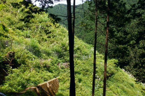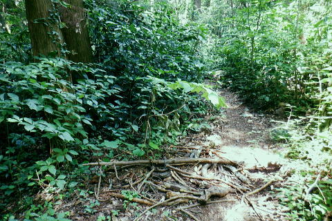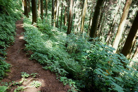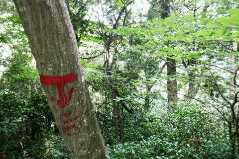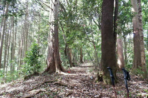 | 大見晴からは高尾山北東尾根のツメを越え.小仏城山へ 高尾山西側の六差路から北回りで萩原作業道を下り.日影林道にでて白沢のF.左俣出合から電灯線伝いに城山へ登り返す 高尾天満宮から蛇滝林道のゲートにでて.御荷尾根を目指す 「見出標165」から大見晴を越え.萩原作業道を下り日影林道のNTTゲート・・山頂を回り込み奥高尾へ 左俣.電柱道からは城山東・北経路を経て城山西尾根のから66号鉄塔尾根 基部からは北西尾根を下り.底沢からjr相模湖駅 前回は522m点P東尾根から合わせ.大見晴から「いろはの森コース」.4号路.5号路を経て高尾山の北側経路を巻き六差路へ。 縦走路の北側の巻道から.前回の逆沢作業道口を過ぎ.濃い蒼空に覆われた萩原作業道を下り返し.日影林道から白沢のNTTゲートにでる。 千代田稲荷尾根 千代田稲荷尾根に乗る.8:34下草の茂みのないすっきりした作業道が続く。 傾斜は殆ど緩む.8:46 8:48 点々と続く巨樹林.8:55522m点コブの右寄りの北尾根と北東尾根・・千代田稲荷尾根との合流点400m圏に乗る。 510m圏.9:00登ってきた東寄りの谷間の尾根斜面を見下ろす。 北側の北尾根右寄りの尾根.9:00藪を直登せず.尾根に並行してトラバースすれば千代田稲荷神社奥.境内から急登を詰めると尾根を横断する形を取っていた。 この尾根が千代田稲荷尾根で横切り.左へトラバースしながら山腹の踏み跡を辿れば日影林道終点.300m圏にでられた。 林道に乗り.北方へ水平にトラバースすると.同300m圏の尾根のコブに乗る。ここが.522m点峰の北東尾根。 高尾山北東尾根 ここから高尾山の頂に至る尾根は大見晴522m点峰を越え.更に4号路の休憩所にでて.4号路の終わり.公衆トイレから高尾山の頂に立つ。 所謂.高尾山北東尾根。下りの場合は稲荷尾根を右に分け.直進して日影沢林道を横切り.「昭和56年度 日影林道の起点 東京営林署」の石標脇から 尾根末端まで進めば小仏川南岸の湯ノ花梅林の黒線にでる。「するさし橋を渡り.左手は蛇滝口.右に折れ.蛇滝を少し進めば小仏川の遊歩道にでる。 突き当たり500m圏から左寄りの510m圏コブを越える尾根ルートは北西の支尾根。 日影沢林道を横切る尾根の末端を下る小仏川の対岸が日影バス停になる。 ・・2022年04月に高尾山を囲む4つの林道を巡っている。又林道の300m圏から登る旧登山道を詰めれば.440m圏で千代田稲荷尾根と合わさり. 大見晴522m点峰から北側に延びる510m圏の分岐.(北尾根と北東尾根の分岐)を経て大見晴を目指す予定でいた。 平坦になった522m点峰北東尾根 これからは大らかな尾根筋を南下する.9:00 境界目出標「165 補19」と赤帽石杭が立つ.9:08 9:15 境界目出標「165」の倒木.9:19 9:27大見晴 日影林道からの旧登山道の道標.9:29 1960年代の登山ブームだった頃の登山道.9:30高尾山からは北北東尾根の通過点.522mPを擁する尾根になる。 522m点P 南面から見る四差路.9:31右手のコースは蛇滝コースの取付きに下り.522m点P東尾根へ。 前方コースは522m点Pを200mほど過ぎれば右前方に北・北東尾根を分けている。又更に250mほど先で北と北東尾根を分けている。 背は閉鎖のロープを跨げば直ぐ.4号路のベンチのある休憩所にでる。傍では「いろは路」と接している。 4号路の休憩所.9:334号路の休憩所・・左前方は4号路のみやま吊橋からのコース.右前方は日影林道のキャンプ場からのいろはの森コース。 ロープを潜った休憩所のベンチで交差していた。ここからは前回と同じ4号路を選び高尾山の頂へ。ここから伊能忠敬が通った薬王院へは 「いろは交差」を過ぎ.分岐から1号路を左に入れば直ぐ。ただ当時の径路は不明. コガネムシ ここで蝶を採取するような大きな網の長竿を持つ.中年の恰幅がよい男性にであった。彼はコガネムシ1本の収集家。 今日はまだ見ていないとのこと。4年ほど前の夏.赤杭尾根末端の峰戸山東尾根を登ったをり.三ノ戸山の頂で昼食を摂っていた。 私の座る左脇の小石の上に.カブト虫を小さくしたような3cm強の虫君(コガネムシ)が食事中身動きせずジッーと我慢して体を休めていた? 死んでいるかと触れるも動かず。再び見た時は飛び去った後だった。如何なる気持ちでジッとしていたのだろうか? そんな覚えがある。他でも何度かで見ている筈のコガネムシ。その時だけで.何か切っ掛けがないと忘れたことが多い。思い出せなかった。 休憩所から眺める登ってきた大見晴の展望.9:42昼頃には捕れるだろうとロープを跨ぎ.大見晴の森で採集して戻ると云い去った。 ・・大見晴園地は高尾山の頂南端での展望台とは異にしている。 昔はカヤトの素晴らしい展望が得られ詰められて名かも知れない。ここから伊能忠敬の図では薬王院へは 「いろは交差」を過ぎれば直ぐ。分岐から1号路を左に入れば薬王院にでられる。ただ当時たどっコースは不明。 遠く北高尾山稜 4号路の終りは公衆トイレで..高尾山頂は真近.9:57山頂は人人人. やまびこ茶屋脇から5号路を左回りに進み西側の六差路にでる 高尾山北尾根 北尾根の取付きは横木で閉鎖されていた.10:054号路から高尾山北側を巻く5号