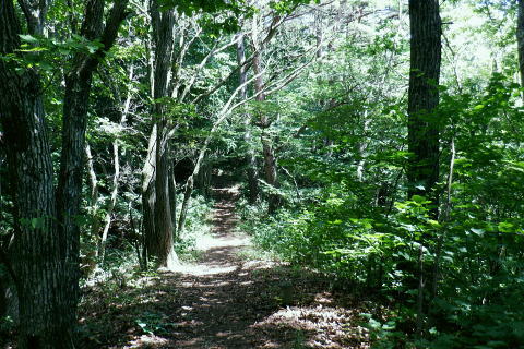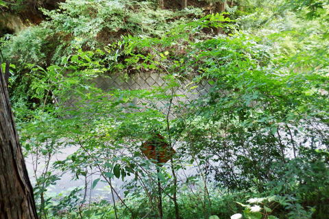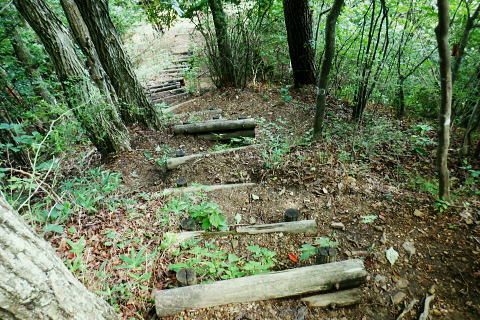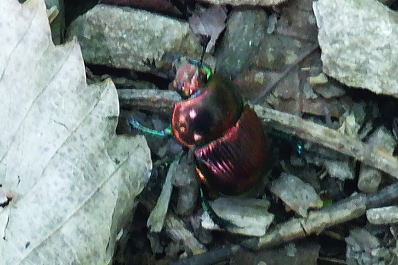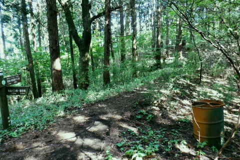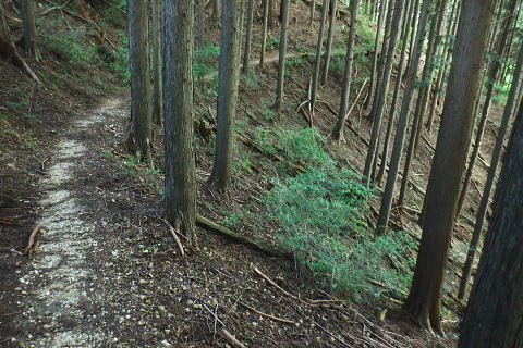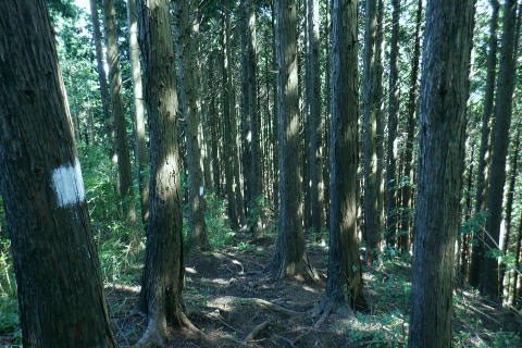 | 笹尾根生藤山から更に東進し茅丸.連行峰.醍醐丸.高岩山へ 大ツイジから鶏冠尾根へと綴り.連行峰..山ノ神.大蔵利山.醍醐から笹尾根伝いに高岩山東尾根へ。笹尾根を分け中谷山尾根. 南郷から熊倉沢林道に入り熊倉沢左俣の奥二俣・・左俣右沢に入渓 西俣の大ツイジ熊倉山北尾根を詰め笹尾根から三国山へ 生藤山からは鶏冠尾根の醍醐丸.高岩山から中谷山尾根に変えている・・小さなコガネムシ メシモリ岩山南東尾根から陣馬街道を下り上案下 笹尾根.生藤山 別名ではキット山.スズナリ.12:15三国山から生藤山までは高度差200mほどを激登した小さな頂。都県境上にある生藤山の頂は2等三角点.標石990.28m.点名は「佐野川村」。 山名柱には「藤野町十五名山.標高990.3m」とある。ドカンは過っての記憶になかった。 生藤山・三国山周辺・・南面に幾つかの登山道を分けている。三国山字福尾根(南尾根)は高尾山から笹尾根を綴り.最初に井戸へ下ったコース。 谷間に降りてからは膝下の残雪に阻まれ.雪を踏めると意気揚々と下った覚えがある。 鶏冠尾根へ続く激坂を下る.12:22 細かい分岐.手前は字福尾根.12:24 山道の隙間に居た小さなコガネムシを見付ける.12:28先月.高尾の4号路のベンチが沢山ある休憩所で.蝶を採取するような大きな網の長竿を持つコガネムシ1本の 中年の恰幅がよい彼の体系とは似つかわしくない感じを受ける収集家に出会っている。 それから月を開けての笹尾根での昼食後.字福尾根を右に分けた山道で.細かい石片の隙間に小さなコガネムシがいた。 這い上がってくるようなスタイルで.小さなコガネムシが蠢いている。カマキリやかカブトムシと異なり.何となく.可愛らしい動き。 れっきりとした大人だろうが.番いなり.子連れを見たことがないが? 如何にしたものか? 何時もポッンと現れる。やはり趣味となると奥が深い。 小さなコガネムシは最近でも見ている筈だが切っ掛けがなく記憶は飛んでいる。4年ほど前に三ノ戸山の頂で昼食時に. 私の座る左脇の小石にカブト虫を小さくしたような3cm強の虫君(コガネムシ)が食事中.身動きせず.ジッーと我慢して体を休めていたことがある。 小さな昆虫に関しては昨年.小下沢林道で蜂に収集家に出会っている。 又名郷の横倉林道.ウノタワでは蟻の収集家と。話せば皆.独特の会話で楽してくれていた。 茅丸 生藤山の東側の小コブ.山名柱には標高1019.0mとある.12:33ここからも北側から矢沢林道の終点に下りられる。 南方.丹沢山地と.御坂方面の山並 山名柱を前に桂川を隔てての遥かなる遠望丹沢山地・・小さく左に飛んで大山.右に離れ主稜の丹沢山.蛭ケ岳。手前は甲相尾根に大きく乗る大室山と加入道山。 離れて右の立木の左脇が御正体山.右脇の雲被る富嶽の手前の麓は鹿留山。 下山路として茅丸から南面の矢沢へ下る場合は作業小屋(道標なし)から右に折れ.山腹をほぼ南に戻るような形で進み矢沢へ下る。 そこからは沢沿いを下るが岩がゴロゴロしてやや歩き難く.矢沢林道の終点.奥矢沢橋にでている。 474mP.844mPを経由しても軍荼利山に出られる? 茅丸から矢沢川沿いの下りも復路が同じでアプローチで工程が長が過ぎる。 下山は中央線沿いを選んでいる。それでも字福尾根コースは長い裾野を下ることになる。それならばと醍醐丸.高成山と綴り. メシモリ岩山南東尾根を経て陣馬高原下bsから高尾駅にでてはと。それにしてもこの暑さは増し.里に下りれば更に異常な暑さに。 関東地方は今日夜半から7号台風が留まるような鈍行で襲来し大雨に見舞われる予報がでている。 今の暑さは変わらないようだ。木陰を見付けて.焦らず歩むしかあるまい。 長い木段が続く.12:47 細かい起伏がある割に道幅は広く確り.13:04連行峰1016.0m 別名は連行山.千春平・・登山道は北側.柏木野bsへ.13:08笹尾根の鶏冠尾根に入る。過って2012年8月に.この先の東側の小コブ920mから南側に落ちる.鎌川尾根を鎌沢bsから入山し連行峰へ。 その折は連行峰の道標左側の木陰にベンチが4基並び.静かな頂で.道標裏側の秋川沿いに万六尾根から万六ノ頭北東尾根を選んでた。 下山して小坂志林道の南秋川笹平橋にでて..向かいに建つ野村邸の茶会に誘われた。 その後奥隣りの家屋は引っ越ししてしまったが.両家には旧醍醐峠越を含め.大変お世話になっていた。 柏木野待合室 その後柏木野のバス停では.19年9月に払沢ノ峰北東尾根を詰め.出野沢左岸尾根を下ったものの猛暑が強く動けなくなった。 猛暑で一度.旧醍醐峠への古道を諦めかけ陽を避けるため柏木野の待合室に戻り.一息付いていた。 照り返す暑さに負け.待合室で昼食のお茶漬けを流し込んでいる。体は落ち付くも猛暑は避けられず。 それでも短くとも路線バスを笹平まで利用すれば如何にか復帰できそうだった。笹平バス停までの乗車は4分. 宮ノ下バス停の次.笹平で下車。南秋川の河原での昼寝から再び嫁取坂へと旧醍醐峠へ登り返すことにした。 又その時は野村邸の隣りの主人を庭先に見付け.洗顔をお願いしたら.「財宝」と云う海底1000mから