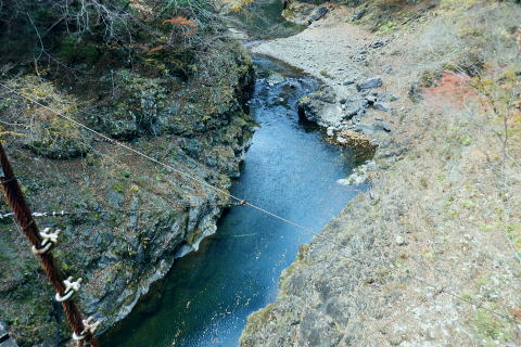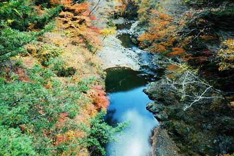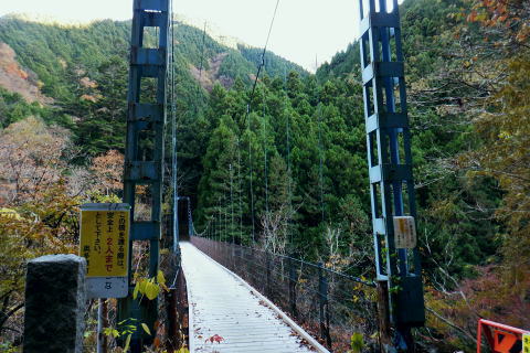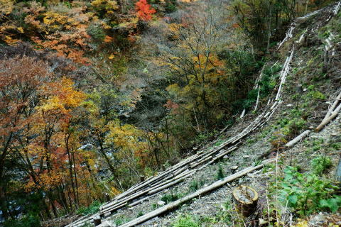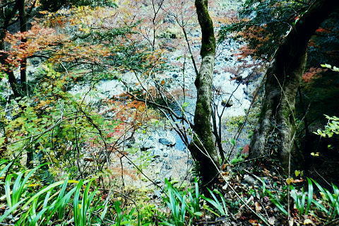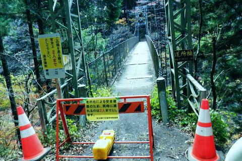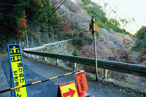 | 青梅街道に並行する「奥多摩むかし道」.中山の旧道出合から多摩川の右岸道を境とする境集落へ。下流側では上水道の補強工事中. 峰谷橋bsから雨降沢左岸尾根の前半.760m圏まで 榧ノ木尾根に乗り倉戸山モジリ沢右岸尾根を下り.水根沢中腹道 中腹道からは水根を経て奥多摩むかし道.中山へ 西久保で折り返し.旧道出合〜境橋・・前半の「奥多摩むかし道」に繋がり完歩 続く奥多摩むかし道 西久保の折り返し地点.14:24正面は奥多摩第一発電所のゲート. 向いは横切る多摩川を隔てての大ブナ尾根 東屋のテーブルと小さなモミジ.14:28 仰ぐも短すぎる秋空 旧道と左上が国道.14:40甲州街道の桃ケ沢トンネル西詰口が見上げられた。 多摩川左岸道からの見下ろし.14:44 鮮やかだが紅葉美が現わせず. むかし道側から道所吊橋.14:49「この橋を渡る際は安全上.2人までとして下さい。」とある。渡ればサス沢右岸尾根に乗る。 吊り橋の中央から上流側 下流側 まばらな集落を抜ける。14:52道路の中央は上部から徐々に改修され終了した水道工事跡. 長屋のように連なる家屋.14:53 下流側では上水道の補強工事が行われている.15:28 抉り落ちる足元の左岸伐採地.14:56 14:58旧道沿いは都水道局の上水道本管の交換工事が行われていた。境橋までのむかし道で擦れ違った方は.工事現場の5.6人と他に3組の観光客. それも米国人か? 西久保の折り返しで単独の白人女性.若い子でえくぼが可愛らしかった。そして道所吊橋付近では夫婦連れ. 彼等も大人しく笑い顔をよい。最後は日本人と連れの方。珍しく外国人ばかりと擦れ違っていた。 馬の水場付近の廃屋群を通過.15:00 15:01 15:03 しだくら吊橋・・「ここも安全上.2人でと」.15:06石碑には「惣岳渓谷」と昔に難所で刻まれていた。 11年ほど前の正月に右岸の橋脚下から御前山を越えている。河原に降り.先端が「しだくら尾根」の末端で.取付からラッセルを強いられていた。直ぐ6号鉄塔の基部に立つ。 しだくら峠を越えれば雪原にでて.852m点から惣岳山にでた。御前山越えの湯久保尾根は新雪の世界.ラッセルに独り奮闘し北秋川へと トレースを築いていた。頂付近は膝ほどの新雪に覆われた晴天の冷凍庫.それでも体は汗を掻いていた覚えがある。 惣岳の成田不動尊.15:12明治時代に成田不動尊が観請され.昭和10年に現本殿.覆舎を再建されている。 11年前の正月に訪れている。惣岳トンネルの東詰口のバス停からは樹林が途切れ.仰げば雪白いしだくら尾根の大展望が開かれていた。 まだ若かったのかアルプスを想い登った覚えがある。成田不動尊に向かい街道から直下したが鳥居だけが目立ち.周りは雪に埋もれ分からなかった。 吊橋を渡っても.尾根に取付くまでが不安だった。それも何のそれ.喘ぐよう登りつつ.雪田にでてホッとした覚えがある。 15:13左並びの家屋に積み上げられた薪が整然と組まれ.見ているだけでもほれぼれさせられていた。 対岸のしだくら尾根末端に広がる斜面.15:15梅久保の集落 集落を過ぎて振り返る.15:19榛ノ木尾根に連なるイソツネ山の南尾根は下端がトンネルになり.下れば墓地を経て直接梅久保の集落にでる。又登山口もある。 そして上の青梅街道はトンネル東詰口にでれば梅久保バス停.413.0mにでる。 イロハカエデの巨樹・・樹齢200年(江戸時代末期の巨樹3本)九竜(重)山.680m点峰山 むかし道から九竜山ピコ尾根の西面.15:21北面の反対側からの雄姿はjr奥多摩駅の駅前広場から南西方面に眺められる。九竜山江戸小屋尾根. むかし道からピコ尾根の西面が見上げられた。境橋の先.橋詰トンネルを潜った出口の左端.車道が入り込む。 尾根下端から昨年9月に出向いている。まだコレラの感染者が多く.入山を控えていたためトレーイング不足となり. 鞘口山に立ってから足を痛めていた。湿布をしたが落ち着かず.急遽.クロノ尾山南尾根から下山している。 白髪トンネル西詰.15:25国道411号線(甲州街道)と合流. 街道と白髪への旧道の分岐耳神様 .15:27耳神様は医療の不自由な頃.耳垂れや耳痛の時は.穴の開いた小石を見付け.供え祈ったという。 その先谷側に弁慶の腕抜き岩がある。腕が入るほどの穴がある自然石。弁慶がぬいたものとしてきた。 右上の穴がそれに当り.帰宅してから知ることになる。 白髪神社 以外と長い石階段の参道.15:32本殿 本殿脇には石灰岩で切り立っ断層面が被うよう被さるこの大岩(白髪大岩)をご神体とした神社。白髪大岩は都指定の天然記念物に指定されている。 むかし道から見下ろす多摩川境橋.15:36手前が白髪トンネル口で頭上が橋詰トンネル. 右手の境集落側に回り込んでから車道を下り境橋へ。 境の集落 多摩川左岸肩からの展望.15:38むかし道 境集落を西側から東方へ回り込むと檜村橋手前で.高台の檜村の集落を抜けて多摩川の左岸沿いを北上している。 その手前には城山に分かれる古道がある。過って.30頭を超す雌鹿の大群に会った境南尾根で三ノ木林道から小中沢横断経路 更に榛ノ木尾根に入り.里へと境集落へ周回した。その折.氷川へと里道は旧奥多摩水沢