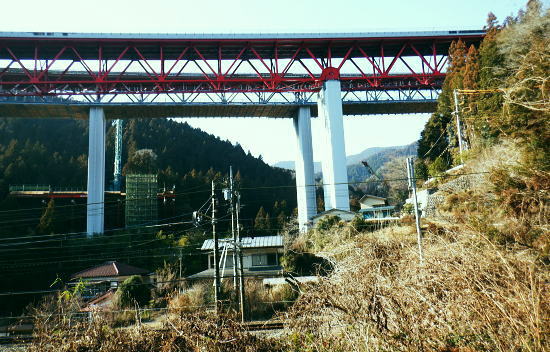 | 山行の終わりは湖畔から東海自然歩道を少し齧る・・小仏峠の旧西街道口より懐かしい弁天橋 底沢左岸沿いの林道栃谷坂戸線の終点から小原宿に回り東海自然歩道を抜ける。与瀬元町から相模湖駅に戻る 与瀬神社から大明神山を越え栃谷板沢林道 底沢川右俣.白沢川から景信山西側の経路 小仏峠にでて.点線県道から旧西街道口 底沢左岸の林道板谷坂戸線から小原の郷で東海自然歩道・・弁天橋から嵐山口.相模ダム 旧西街道口 分岐点の千木良と美女谷橋方面.14:27この周辺はもう何年も中央高速道の拡張工事が行われている。分岐点の警備員によると旧西街道口から右に折れ.旧美女谷温泉への 旧道に回り込むか.左に直進し.標高点256m点から林道栃谷坂戸線を綴り.底沢バス停にでる方法があると改めて教えて頂いた。 私は前回降りた66号鉄塔から山行と同じ.奥の林道側から底沢バス停にでることにした。展望がよく.車の往来は少ない. 右に折れ高速道を潜れば底沢側に出られた。 分岐に脇に立つ「保安林区域図」あり模湖を中心に描き.大きな山域を現わしている。 板谷坂戸線 jr中央東線の下り電車.14:34改修拡張工事中の中央高速道の端下駄上は望めるのは.朝方分岐点を横ぎった孫山東尾根. 林道をもう少し下ると巡視路標柱「緑を大切に」66号が立つ。そして階段からは新たな林道が作られ.新多摩線66号鉄塔尾根を詰めれば 城山西尾根の東海自然歩道にでられる。又来た道を振り返ると中央東線の小仏トンネル口を抜けたばかりの電車が左前方に眺められた。 頭上には67号鉄塔が見上げられた。水場は林道の直ぐ先になる。 390m圏に建つ67号鉄塔と南西尾根 改めて見上げる新多摩線67号鉄塔.14:35この鉄塔裏の南西尾根から旧西街道口に降りている。この先のヘアピンカーブを過ぎると直ぐ左に送電線66号鉄塔の巡視路入口がある。 昨年6月に伊能忠敬の道を探りながら大見晴北尾根から高尾山の裏側の萩原作業道.更にNTTゲート左俣かr小仏城山の西側に出ていた。 その時の下山巡視路になる。 遠方は高尾陣馬縦走路.14:37中央道の点々と続く拡張工事現場. 子孫山ノ頭東尾根末端 底沢バス停.栃谷坂沢林道の終点まで.14:31左の谷間は大久保沢からの馬道 再び孫山東尾根を振り返る.14:39 林道唯一の水場.14:42鉄道沿いの底沢登山口 奥は美女谷温泉跡の旧道への登山口.14:47 底沢橋.14:50小仏峠越えに下ってきた尾根を背に国道20号線沿いの底沢Bsにでる。底沢橋を渡った先の千木良では国道と分かれた 県道515線が相模川沿いを津久井.赤馬へと綴り.南高尾山稜の北側は大垂水峠へ。南側は廃県道を抜けられれば名手からから三井にでる。 370m圏Pと三角点峰の嵐山406.0m 国道より.14:31子孫山ノ頭東尾根の末端 小原の郷より14:56城山南西面の幾つのも支尾根群と516mp 小原の郷付近から望む.14:57城山から金毘羅山に至る首都圏自然歩道の相模川沿いの尾根筋から延びる枝尾根に建つ鉄塔群 左の尾根沿いは東海自然歩道が通る。里は千木良地区の岡本・中村付近. 城山西尾根.465m三角点峰から連なる送電線新多摩線. 新多摩線は新多摩変電所から秦野変電所までを鉄塔91基で結ぶ送電線で.昭和55年12月に運開している。 小原の郷前から相模湖へ下る遊歩道.14:58下山は国道から再び山道へ. この底沢バス停と相模湖駅とのコースは常に国道沿いを歩いている。今回は久し振りに東海自然歩道回りでjr相模湖にでる。 末っ子が8歳の頃.親子3人で.京王高尾山口からロープェーに乗り.東海自然歩道を城山から相模湖に下りている。 弁天橋を渡り.相模湖にでて電車.はゴールデンウィークで.押し詰め状態になった覚えがある。もう45年近くなるのだろうか? 桂川湖畔へ.15:03 相模川湖畔.15:05直進の橋は原.千木良への道を避け.右下の河原へ降り.吊橋の弁天橋へ。 弁天島茶屋辺りは猫が多い.15:06桂川渓谷 弁天橋の吊橋より「神奈川の橋100選」の上流側の湖畔.15:09孫山東尾根 津久井養護学校脇より.15:17吊橋を渡り.キャンプ場を左に分け.コンクリートの登坂を詰めれば津久井擁護学校にでる。ここは東海自然歩道の道. 右手の畑からは相模湖の東方で遠方には孫山.子孫山ノ頭南尾根が広く扇の如く望まれた。 又すぐ先はダム側の嵐山登山口。三角点405.9mの頂には又産霊宮水上神社が祀られている。 子孫山ノ頭東尾根 東海自然歩道より.15:18 登山口東方にある木祠.15:22 嵐山のダム側登山口.15:24頂には産霊宮水上神社が建立されている。 小仏城山の南支尾根群と嵐山 相模湖々畔の吉野地区より・・2019.01.11/14:49城山・小仏城山. 四等三角点標石670m.基準点名「小仏城」. 嵐山. 三等三角点標石847m.基準点名「若柳村」. 嵐山の右手が富士急のリゾウトプライジャーフォレスト(旧三井物産の相模湖ピクニックランド)・・昔オープンした頃.家族で2度ほど訪れている。 写真では左下へ長く延びる北尾根の末端で.ほぼ中央に当たる相模ダム下の発電所前にある嵐山登山口に立つ。 中原地区.左手の風景 孫山540.0m南尾根と峰山570mに挟まれた中央の山並は烽火台がよく見えそうな小仏城山。昔の北