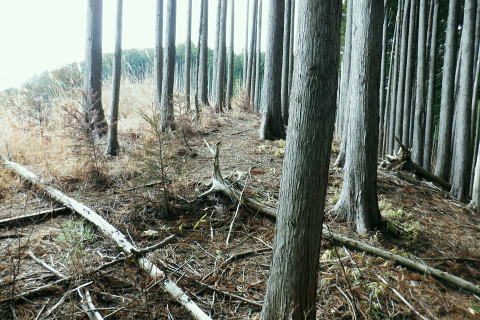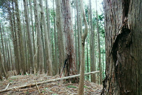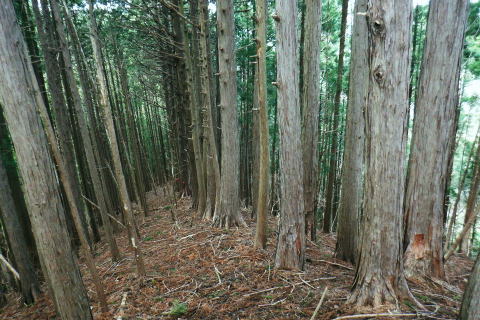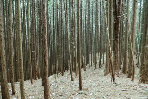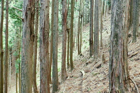 | 本宮山650m圏肩の北西支尾根から三ッ沢林道方面の大らかな台地の植林帯を綴り.三ッ沢林道の起点にでて醍醐道へ。 醍醐林道からはニニク沢林道を左後方へ分け.醍醐道.陣馬街道と繋げ.上浅川の落合から夕焼小焼バス停へ。車中が多かったが初めて訪れた。 南郷林道から南郷山北東尾根と陣馬山 背稜から陣馬山を越え.和田峠から中谷尾根.本宮山 本宮山北西支尾根から醍醐林道を下り.醍醐道.関場から夕焼け小焼け 本宮山東尾根の本宮山右650m圏肩が本宮山北西支尾根分岐コブ 便桜沢の左岸尾根の伐採地より・・.2023.02.01/13:18北西面・・手前の谷間は和田峠から下る案下川左俣沿いに下る陣馬街道。 写真右上の小コブの裏側に下りている。三ッ沢林道.醍醐林道と綴り.醍醐道から浅川の二俣にでて.陣馬街道に合わさる。 本宮山からは更に伐採の境界線上にある中谷山尾根を北側へ下る。展望はすこぶるよくなった。 本宮山北西尾根と本郷山北西尾根を隔てるの650m圏肩からは方向転換し.本宮山北西支尾根を下っている。三ッ沢林道の起点にでて.醍醐林道から関場へ。 案下川上流の南岸流域の4つの小尾根をZ字に綴り.便桜沢右岸尾根を下った折.450m圏の平坦地にでて逆側の伐採帯を望む。 右肩の続きが直ぐ本郷山になり.共に北西尾根で谷間を並行し共に共有していた。 本宮山南西尾根の600m圏の山道道を分け.東枝尾根を下ると裾野にに熊野神社が祭られている。正面の谷間.出合付近. 陣馬街道の上案下で少し右上の高みを見上げながら今朝は通過している。この先が上浄水所で.本宮山への参道口を分けている。 650m圏肩の北西支尾根の分岐には迷い2度ほど立つ.13:32本宮山北面の植林帯.北西尾根を下ってから次に.三ッ沢を挟む右岸道から三ッ沢中間尾根を詰め.中谷山尾根に登り詰めている。 今回は東側の北支尾根から下る経路を取ることにした。短い尾根だが私にとっては杉林の美林と共に.すっきりした尾根筋の地形に感嘆している。 予想以上に惹かれる美林の雰囲気に..最近では掛けがえのない尾根にのつになっていた。 650m圏肩.中谷山尾根との分岐 610m圏肩から大らかな北西支尾根に乗る.13:323年前の春先には椚沢林道から高茶山北東尾根を下り.三ノ沢・醍醐林道に降りている。ニニク沢林道の起点にある醍醐林道の石碑. 道しるべを確認してから漆ケ谷ノ頭南東尾根を詰めて.吊尾根から小坂志林道を笹平へ降りていた。 下りは作業道としての確認が取れず.概念の全く分からぬ流域だった。素直に大回りして里にでている。 変化に富む一面の植林帯を綴る.3:38小木林は上部を除きほぼなく.中木林以上の杉林が尾根筋を包むよう広がり.間伐された道中では.何処もが綺麗に整地されていた。 又朝方の南郷山北東尾根の植林帯と同様にややソフトな土壌が下る足をも早め.心地よい一言に尽きていた。 560m圏.13:42 尾根幅は広く.更に枝尾根は少ない.3:43最後に小枝に足を仕掛り転倒する。調子に乗りペースを速めたのが悪かった。転倒と共に体は大地に叩き付けられた。 痛烈な痛みで暫く体を動かすことができず.天を仰ぐ。そしてジワジワと息が吹き返すように顧みた体。気お付けねば後はない。 530m圏の平坦な広い尾根二又.北東と北西に分けている.13:46右前方の膨らみが北西支尾根筋の末端へ続き.450m圏辺りで尾根らしくなる。 やや足場のよい北西の枝尾根に入り直進して下ると.右枝尾根の膨らみが顕著に現れ.東屋のルートを求め.山腹をトラバースした。 ただ足元に真下に三ッ沢林道を見て.そのまま林道に降りている。 やや尾根の左寄りに足場がよく直進.14:18 右手の支尾根は三ッ沢橋に向かい直下している.13:53 450m圏の谷間正面・・足元下に三ッ沢林道が見下ろされた.14:01三ッ沢林道 右上からダイレクトに林道に降りる.14:033年前と比べると.この辺の右岸道の崩落は更に続き.林道幅は更に狭まっていた。 三ッ沢左岸道 突き当たった対岸の三ッ沢左岸歩道をカメラに収める.14:03そして翌月には三ッ沢の上流二俣から高岩沢・サヌクボ中間尾根を登っている。 前半は両手を駆使した急登だが.後半は右からの作業道が何度も交わって.中谷山尾根にでてからはメシモリ岩山南東尾根を下っている。 右手から三ッ沢橋手前で左手に分かれる支線を歩む.14:05左の坂道は林道の支線になり.逆方向の林道起点から東屋を訪れている。 三ッ沢の1つ東(下流)側の林道支線と東屋.14:07本郷山北西支尾根との間の沢の右岸道にある東屋を出合から登り返し振り返る。左奥の斜面が北西支尾根の稜で踏み跡は直ぐ消える。 本郷山(御堂窪山)北西支尾根との間の谷間の右岸道で.三ッ沢の1つ東(下流)側の支流の肩。 向かいが醍醐林道 醍醐川三ッ沢橋の右脇側に支線から降りている.14:09このルートとは別に.地形図を読むと三ッ沢橋の右脇の小沢から直接.醍醐川に下れる破線路が記されていた。 醍醐林道から橋を渡った正面が北西支尾根の末端で.左側は支線で.右に三ッ沢林道が延びている。 三ッ沢林道の起点 醍醐川三ッ沢橋を渡り醍醐林道から振り返る.14:10渡