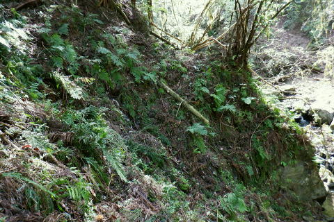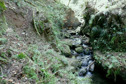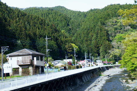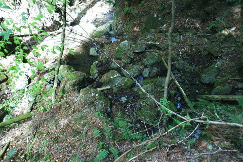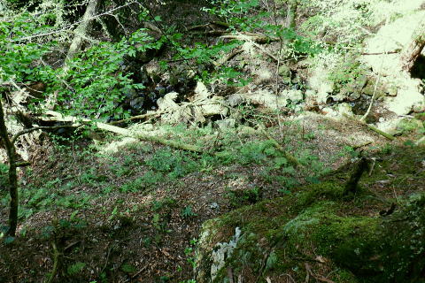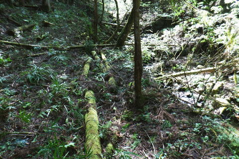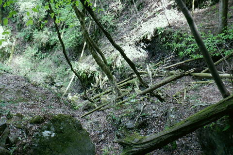 | 和泉入.奥の二俣から和泉入林道を経て下名栗諏訪神社へ. 名栗川右岸道を2つの県道を繋ぎ(小沢〜久通谷間は左岸道)黒指bsで終結する jr川井駅から岩茸石山西尾根 点線都道で名坂峠から名坂沢を下り上成木川出合 常盤林道から長久保山南尾根.北尾根と境界尾根を越え.改めて和泉尾入二俣へ 二俣から下名栗諏訪神社.名栗川右岸道で黒指・・改修された和泉入林道から下諏訪名栗神社〜黒指 K.和泉入.奥の二俣 和泉入二俣.真下の沢底.13:53尾根末端の大岩の左側を下ると右上の上流側に下りられる。そこから高みに立ち.下流にトラバースして.沢底を見下ろしている。 和泉入左岸.高みの踏み跡から.3:54足場は狭く支えの少ない所.先は抉り落ちている。その為一度高巻きしてから河原に降り.右岸の古い作業道に入る。 下流の林道が19年の19号台風の影響でめちゃめちゃに崩壊させられたことを考えると.道形が少しでも残されていたのは幸運だったかも? それでも数か所支えのない所があった。 高巻き.13:56 14:00 14:02 更に高巻きして.14:07 河原に降りる.14:08 14:10右岸沿いのルート 和泉入右岸道14:11 14:13L.小さなトロ状 330m圏.14:16 14:08 右岸の林道口は荒れ果てた広場.14:19M.以前は山積みにあった木材 和泉入右岸道にでて.直ぐ左岸の林道から振り返る.14:21今でも放置されて台風の木材残土か・・後の林道の崩落地の写真に.上流を見た同じ場所で撮影した写真あり。 長久保山山北東尾根の下端.4:23尾根末端の西面部分で.直下不能の為.前回はこの地点に斜下し.この林道に降りている。 N.2019年の19号台風で大荒れに崩壊した林道跡 改修されても.林道幅は狭まり.この凸凹地表.14:24深く.大穴が幾つも沢波に抉り取られ.危険なので埋め戻したのだろう。・・2019年11月に訪れたと時の崩壊した林道跡 深さ1mは越す穴が入り乱れていた林道は埋められている.14:24 この永久橋が崩壊された林道の境をなしていた.14:25O.長久保山北東尾根の末端 和泉入の手前二俣.以前は右斜面を林道に下りる.14:29 左岸に移りると.もう里へ.14:31 涙のような流れに.14:33この右岸に渡る橋を境に流心は急に乏しくなり.この時期は名栗川出合辺りで伏流している。 P.下名栗諏訪神社 脇から本堂へ.参道へと抜ける.14:36 神社左脇の310m圏峰.14:44長久保山北東尾根の1つ東寄りの尾根の末端の小コブ。 310m圏峰の北側の裾野を巻くよう.神社の左端の広い駐車場台地から名栗川右岸道の県道53号線に入る。 Q.和泉入尾根と369m点峰 左奥の背稜.689m点峰からの北尾根.14:43県道53号線(青梅秩父線)で少し中西に寄ってからの展望. 久通谷橋 名栗川沿いの県道70号線(飯能下名栗線).14:57撮影した右対岸に雲ノ峰を源とする久通谷入の出合があるそしして.雲ノ峰北尾根の末端の対岸が黒指になる。 神社から小沢.久林.久通谷へと名栗川沿いに下り.久通谷橋にでて名栗川を渡れば.雲ノ峰497m北尾根の扇状に広がる 下端の台地にでる。下流側には黒指橋が架かり.そこまで右岸沿いを歩むことにした。 三本松505mと峯山420m 左岸の楢抜山周辺の山並.14:58谷間は奥窪(東黒指入)と黒指地区 峯山から加久良山 町道より.14:59峯山からの尾根の末端は赤沢で.対岸のこちらに聳えるのが成木の大仁田山と愛宕山。 脇の細道から黒指バス停へ. 下流側は黒指橋で左岸へ.15:01 橋上から右岸の赤沢地区を振り返る.15:02 県道70号線の黒指バス停.15:0315:03黒指bs:12= 飯能.特急「むさし38号」16:35=17:17池袋=山手線 天候は春の一週間周期に乗り.今回も晴天に恵ま.寒暖差があるもの初夏の陽気に恵まれ.車内は行楽客で満ちていた。 青梅線に変わっても.ほぼ満員のハイカーに押し込まれている。それでもバスの発車時刻とずらしていたので川井駅では数人が降りただけだった。 山行中は岩茸石山の頂周辺で10人ほどと出会っている。後は長久保山の縦走路で1パーティと擦れ違っただけで.どの尾根でも0。里道でも0。 帰路は込むだろうとの予想で赤沢まで出掛けず.日曜日でもあり早めに黒指止りに切り替えている。それでも満杯の路線バスは私一人しか 居なかったため如何にか乗れたものの後は続かず。バスの扉に足先を付けるの精一杯.又前扉からも最終的には乗り切れず. 次のバスへと断っている。飯能に着いてから運賃の清算は一人一人のスイカ等の処理に時間が掛かり過ぎ.駅に居ながら特急に乗り遅れる。 この路線では数年前に.鳥首峠から蕨山金毘羅尾根を下り.「わらびの湯」にで下りているその折は長い列で臨時便へと切られていた。 「直ぐ来ます」との言葉は虚しく長く待たせられたこともあった。 今回の概念図 地形図「原市場」.「武蔵日原」.観音沢周辺.柳沢左岸尾根..登山道明細図西編・・シリオブーツ.21.354歩. ストック. 4/24日. 気象庁は本日より熱中症警戒アラームが発令された。(前日の午後2時に発表)する。 発表単位は都府県ごと.25℃以下〜31℃以上を4段階に分けていた。 jr川井駅から岩茸石山西尾根 点線都道で名坂峠から名坂沢を下り上成木川出合 常盤林道から長久保山南尾根.北尾根と境界尾根を越え.改めて和泉入二俣へ