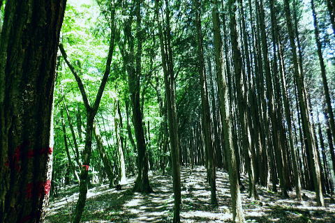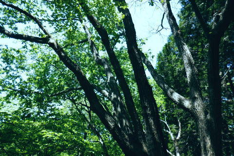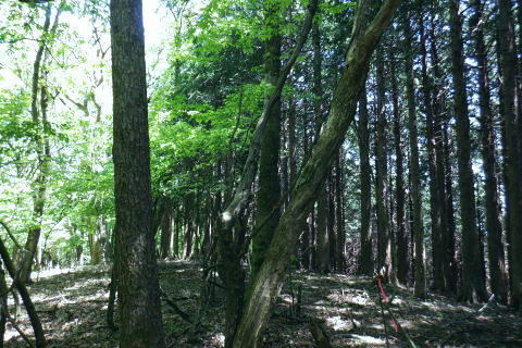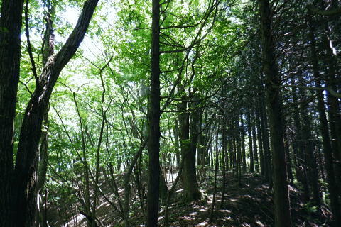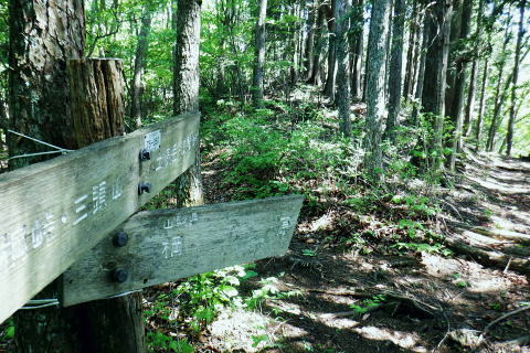 | 大ツイジの860m圏小コブに乗り笹尾根を西進する。昨年はこの付近で栗坂峠から大ツイジを横切り.笛吹から小棡峠北東尾根を詰めている。 今回はその小棡峠から逆側の小棡峠南尾根を下り.西原古道から鶴川の県道.上野原丹波山線にでる為.大ツイジから更に笹尾根を縦走した。 熊倉沢右俣右沢.陸軍滝とトヤド沢を諦め.左沢から千ケ尾沢右岸尾根 大ツイジ860m圏小コブを西進し.浅間峠.日原峠から小棡峠・・栗坂ノ丸.土俵山 小棡峠南・南西尾根から日武連山.西原古道を経て沢渡 沢渡bs―寺尾を過ぎ=八米―新井bs 大ツイジの860m圏小コブ 「浅間峠まで1.1km」の道標が立つ.10:37右岸尾根を乗り越え.ここは1本のポールと石杭に「印」付く小コブ。 笹尾根 浅間峠方面へ西方へ.10:44栗坂峠 栗坂の丸879m小コブを越えての栗坂峠にでる.10:52「浅間峠0.5km」の道標あり.峠からは芦沢山尾根を下り.小伏からレイク相模CCに突き当り.県道.上野原棡原線に降りられる。 又栗坂尾根の710m点の肩.尾根二又からは三二山川沿いに県道33号線を下れば新山王橋にでる。 笹尾根は1881m点コブからの北側山腹道に入る.10:56熊倉山南西尾根からトヤド浅間に寄った時は春雪に一面被われて旋風が舞い.粉雪が舞う雪世界だった。 881m点コブ・・千ケ尾沢左岸尾根 「浅間峠0.3km」の道標あり.10:58本来は熊倉沢右俣左沢(千ケ尾沢左岸尾根)に取付けば.登り詰めた西側の頂点がこの道標になる。道標の裏側はゆるやかな二重山稜の 地形が広がっている。又少し下った850m圏のコブ地形の北側には840m圏の細長い平尾根ご北側に延び台地がある。 そこも私の秘密の場所として寄ってくる積りでいた。今思えば.もい少し丁寧に探す価値は十分あった筈。 浅間峠東屋(栗坂峠) ガランとした広い東屋.11:02東京都多摩群檜原村と山梨県上野原市との境にある笹尾根上にある標高840mの小広い峠で真ん中に東屋がある。 上川乗方面の下り口から東屋の向かい先には椿木があり.神戸方面の峠路が横切っている。 峠の浅間明神の石祠 2本の巨樹.杉の御神木の間に祀られた小祠峠路に明神祠が祀られていると云うことは古の時より栗坂峠と呼ばれていたようだ。直ぐ南東側の栗坂峠と合わせて共に栗坂峠と呼ばれていた。 今は便宜上に浅間峠と栗坂峠を分けている。 浅間峠の石しるべ ![]() 浅間峠から北側の檜原街道.上川乗へ向かう登山道口には「馬頭観世.嘉永六年」と掘られた石碑を見る。これは上川乗の浜中伊左衛門が繭が 買い帰る途中で.馬が谷へ落ちて死んだのを弔ったものと云う。と云うことは峠路は馬が通う駄馬道だったのだろう。 浅間峠の南側.棡原への峠路.甲武トンネルの東側の峠路が浅間峠. 南側の起点.椿.桐坪.神戸(こうど)から新山王橋にでる。北側は檜原街道の上川乗へ. 又初めて浅間峠を訪れた時は熊倉山南西尾根を登り.上川乗へ.下る途中で.トヤド浅間亨より京岳バス停にでていた。 大ツイジから笹尾根へ(甲武国境尾根)を更に綴る.11:27 尾根筋の林相の境.11:3211:32 先の山道は灌木帯を綴る.11:39 11:42 二重山稜的な尾根筋になる.11:43 11:50 11:53 12:05 12:08まだ遥か先の土俵山 12:10 12:12関取岳877m点 840m圏から鞍部越えの関取岳877m点峰を振り返る.12:17ここ谷間の鞍部には県道33号線の武甲トンネルが潜り.鶴川側の上野原丹波山線.棡原と南秋川川の檜原街道.上川乗とが結ばれている。 917m点コブの北側をまけば日原峠.12:24日原峠(ひばらとうげ) 峠の石仏12:32日原峠は登山道の真中に地蔵が祀られている四か所に分かれる分岐。 難読の道標「人里(へんぼり).笛吹(うすしき)」が立つ。 北西に延びる北側の登山道は途中で土俵山北東尾根に乗り.南秋川の下和田バス停に降りている。 又高度850m付近では破線路が北尾根の広大な伐採地とも繋がれていた。ただ拡大する伐採事業とは別の旧道はズタズタに切れた間々で. 新たな林道が造られつつある。尾根末端に架かる橋は崩落していた。渡渉は膝程度で流れはある。 峠越えの南側は917m点峰の南尾根を綴り.730m圏の南尾根二又で右(西側)の支尾根を下れば日原から猪丸にでられた。 県道.上野原あきる野線と上野原丹波山線が交わる所には新山王橋バス停がある。ここは甲武トンネル.の起点.或いは土俵山の登山道口にもなっていた。 石しるべと水場まで5分の表示あり石しるべには「右 山道 左 人里」とある。 『山崎新三さんのお話では.時代が経ち中央線が通じると.西原峠よりも人里へ出て日原峠を越えるものが多くなった.という。 西原峠を西原へ下るかわりに.日原峠を日原に出れば.上野原の駅までの道程が半分に短縮された。』 瓜生卓造「檜原村紀聞」の中で.檜原村の古老がそう語っているている 中央線が上野原駅まで延伸されたのは明治34年。この馬頭観世音が建てられた大正時代のころは.まだまだ多くの人が. 馬荷が.毎日毎日.ここを行き交っていた。 ここに立つと.そんな光景を想像しないでいられないだろう。 峠路は昭和7年発行の陸地測量部「五日市」地図に記載されてる。 ところで.石仏のある場所に少し疑問がわいている。陸