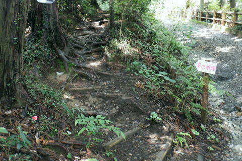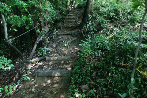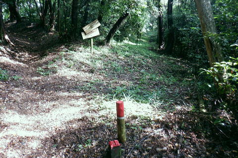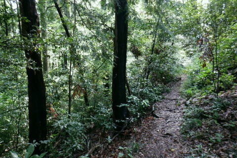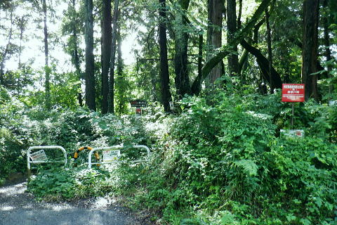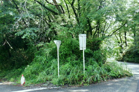 | 猛暑で朝の散歩. 高尾山の南東方の都県境界尾根の末端.町田との境川から城山湖へ ・・高尾山山域11.Top 法政大正門から穴沢右岸尾根を抜け城山湖の西方を回り込み.猛暑の東高尾山稜を北上する 2024年07月13日.松村 法政大学バスターミナルから穴沢左岸尾根.山道二又・・キャンパスから都道.県道.黒線.作業道.登山道から京王高尾山口駅 榎窪山から草戸山.拓大分岐から東高尾山稜拓大西尾根分岐 東高尾山稜四辻から京王高尾山口駅 前回は一本松北東尾根から浅間尾根を詰め.白岩沢の源流を取り囲む尾根を綴っている。 今回は白岩沢の東肩に並ぶ月夜見沢の源流をも含めた北秋川の源流全体を取り囲む尾根を歩む積りでいた。 それが私の直ぐ真近な方が次々と亡くなり.少し落ち着いたと思うも.今度は軽い熱中症に私自身が患る。 頭は重く.MRIの検査を受け.山行は延期に延期と重ね.2ケ月ジッと我慢しなければならぬ状態に陥っていた。 それでも少しは野原を歩みたく.体慣らしを含め.まず高尾山の最短の丘陵にある登山道を歩むことにした。 法政大学町田キャンパス.正門のバスターミナル.7:277月13日(土).曇時どり晴 jr御徒町5:31=5:35神田.快速:46=6:47西八王子:50.京王バス=7:11法政大学正門.町田市バスターミナル. jr中央線.西八王子駅に初めて下車. 駅中央の南口の階段を降り.広場の左脇から法政大学行京王バスの第1乗り場がある。 第2.第3乗り場は駅中央通りの直ぐ先.右側にある。路線バスの乗り換えまでは3分の余裕があったが電車は2分遅れで. 計算できず.次の乗合バスに乗車した。 「西56」系統の路線バスは待つ間もなく現れた。この時間帯は次の西56系バスは近くに待機しているようだった。 終点.法政大までは京王めじろ台駅経由で距離にして.乗車は21分ほど。自宅からは法政大まで2時間弱. 高尾駅南口は14分ほどで着く. 背は穴沢左岸尾根 標高172m・・町田街道(都道47号線).法政大学入口交差点.7:38交差点を横切るのが町田街道. 右は大戸方面で.左は鍛冶谷.町屋方面になる。 交差点手前は「法政通り」.角に系路の違う法政大学入口バス停がある。共にコンビニがあった。ここはバスターミナルから戻ってきた。 十字路の向かいは道幅がやや狭まり.境川の風戸橋を渡った突き当たりが県道48号線(鍛冶谷相模原線)とはほぼ平行してをり左折した。 渡った風戸橋の境川の源頭はこれから目指す草戸山で.大地沢の青少年センターから約400m沢伝いに登った所を源流とした。 古くから境川と呼ばれていたようである。武蔵の国と相模の国の境界を流れてをり.多摩丘陵と相模台地を区分する断層線上にある。 全長約52kmの二級河川. 城山湖北岸に延びる都県界尾根(武相国境尾根)の末端.は大戸。渋川沿いの境界線は変わる。 両岸に都道47号園線と県道48号線が走り.その間を流れるのが境川。下流は相模原を横切り.河口は湘南片瀬の西浜(駿河湾)に注ぐ。 小田急江の島駅前の西浜と腰越からの東浜との境を流れ.幼いころ夏になると避暑に訪れていた砂浜だった。 又県道の西側の丘陵にも法政大の多摩川キャンパスがあり.穴沢左岸尾根に乗り.西進すると.直ぐ.法政大へと尾根境が下りている。 県道48号線の川尻地区に入りって県道標識が立つ手前で.右手の狭いT字路.地形図黒線に折れ.更に左折して穴沢左岸尾根に乗る。 県道をそのまま東へ進むと平坦になった穴沢左岸尾根の末端を横切り明勧寺にでる。 .ここから森を抜け.松風.川尻と綴れば城山湖々畔上の金毘羅宮に出られる。又県道.明勧寺手前の小さな歩行者用の小橋を渡っても. 地形図では黒線で描かれた「三松ハイキングコース」の尾根に乗り.城山湖にでる。 地形図の黒線 .県道48号線の地形図黒線を右折した路地道へ。7:47この奥右寄りにも法政大の城山地区の多摩川キャンパスがある。突き当り手前の左.T字路が下の写真. 直ぐ最初の左角を折れ.畑から穴沢左岸尾根の取付く.7:49穴沢左岸尾根 左岸尾根末端の取り付き.右脇下に庚申塔がある.7:50更に左隅に古い私製私道標「こんぴら方面」が小陣まりと立てられていたとあるが.それは分からなかった。 尾根の右肩に建つKDDの電波塔が目印になる。. 左岸尾根に乗り.東方を向いた八王子市街方面.7:53. 尾根筋を西進.7:56緩やかな尾根道を進むにつれ.高度の割に深く生い茂る木陰に変わっくる。 鳥獣供養塔を右脇に見て.左の尾根道を進む.8:00右手が法政大学尾根 手前が法政大学境界標と赤帽の木杭・・法政尾根の分岐.8:02北側に入ると法政大学城山地区沿いに続く境界尾根 大学馬術部の馬場があり.尾根筋には赤帽円柱と赤帽杭のセットであり.尾根伝いに点々と続く。又ここを過ぎると山道に. .8:03 .8:07 8:16 Y字路の穴沢林道から雨降林道の合流点に降りる.8:23 穴沢左岸尾根の終点を林道側から振り返る.8:26左上の尾根から林道の二又に降り振り返る。Y角路の右.穴川林道は穴沢の左岸沿いを下り県道48号線に下りている。 「三松HC」の尾根との間を抜けている林道。左の雨降林道はくだってから二手に分かれ.上流側は城山湖の本沢ダム手前で行き