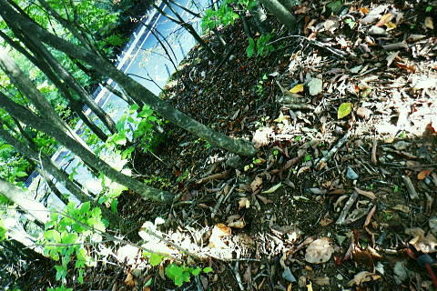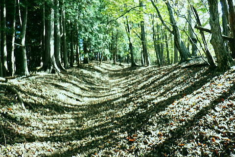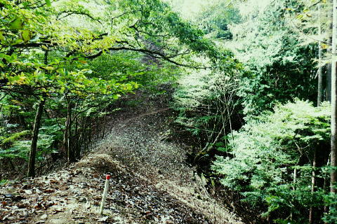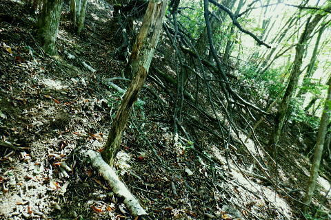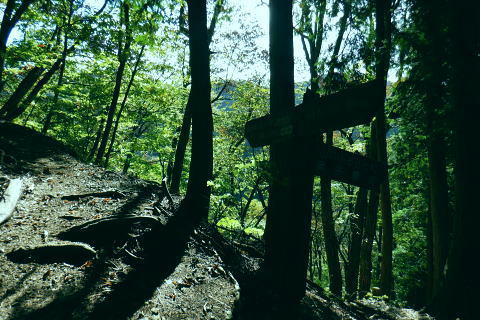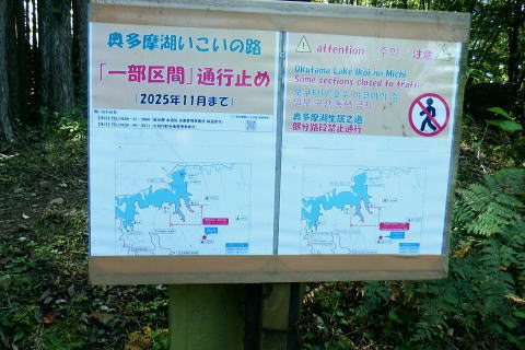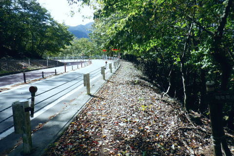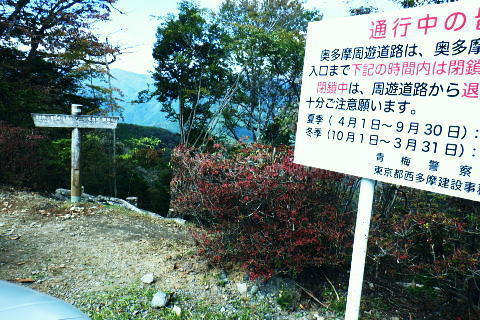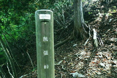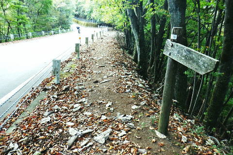 | 小河内峠から町村界尾根を西へ進み.天神山を越え月夜見山第二Pからの月夜見山は断念. 風張尾根を経て風張峠へ。 峠からは鞘口峠方面に向かい.周遊道を繋ぎながら風張ノ頭(戸沢峯)に立つ。 藤倉から陣馬尾根を詰め小河内峠 町村界尾根の月夜見山周辺と風張尾根・・奥多摩湖周遊道路を歩むT〜V 風張峠から戸沢峯を南下し浅間尾根.の1120m峰 1120m峰から森ノ沢右岸尾根.数馬〜数馬下bs 小河内峠 10:56小河内峠の北側.奥多摩湖の向いの谷間は一本車沢で大久保沢と合わさり.湖畔の大久保橋にでる。 左上の茂みの北尾根には清八新道が乗り.緩やかに下る作業道.山道と謡っていないのが味噌. 再び山に登り始めて2度目の山行になる。 裏道に入れば奥多摩の深みある山懐にでは静かな山旅が味わえられるようだった。 湖畔に並行する町村界尾根を西進 水窪山へ取付く手前の「通行止め」の予告板.東側の最初の水窪山1040.0m 2つの頭が並ぶ水窪山.11:03小河内峠の西肩に2つの水窪山がある。手前1040.0mコブは北側に大平尾根を派生させている。 湖畔へ北北西に緩やかに落ちる尾根で.尾根筋には清八新道が築かれている。 藤倉からは陣馬尾根に乗り小河内峠へ登ったことで.過って綴った水窪山北尾根(大平尾根)の清八新道と繋がり. 都道205号線(檜原街道.本宿〜甲州街道.水根間)との点線都道が繋がれた。.以前下った北尾根で.小河内ダムの堰高を通り. 水根と繋がったことになる。以前.鋸尾根からこの尾根に回り込んだ時は.道標はなく.歩むハイカーも稀で.暖かい秋晴れの中.下っている。 水窪山西峰 別名.水窪ノ頭.水久保山.水ノ越ノタル.1030.0m.11:07尾根伝いに西側から南側に曲がり込む. 月夜見第二駐車場へ 奥多摩林班界標柱.11:12天神山 11:22天神山1045m・・奥多摩湖の湖畔.入り江から突き上げる天神沢は.水窪山西峰〜月夜見山を源とし. 奥の二俣が天狗山中間尾根。右俣の左岸尾根が眞光寺尾根で上流側の手沢とを隔てている。又.手沢の源頭の擁壁帯が月夜見山。 私の向かい月夜見山第二駐車場は.その東側のU字にカーブする地点に突き当たる。 緩やかな鞍部の焼ッ萩平(やきつはぎでえろ)私と同じ単独の高齢者と出会い。目が会い.挨拶するも無視されている。この後.観光客.作業員とは出会うも.ハイカーは山中.彼一人。 湖畔の眺め 今年は異例と思われるほどの天候異変は世界的な猛暑に襲われ.大災害を起こさせている。東京では10月下旬になるも夏日. 11月には台風21号が襲来するとか? 奥多摩湖の湖畔を眺めたく期待していたものの.猛暑のあおりで.今だ樹林は重なり生い茂る。 樹間の隙間から湖面らしき青さを見定められたのは小河内峠のみだった。 連なる背稜からの樹葉の茂みは濃く.とうとう月夜見第二駐車場まで.その後も.一度も見定めることはできなかった。まだ緑々した世界. 第二駐車場まで500m.11:29 駐車場手前の急坂.11:35月夜見山第二駐車場口 山道を登って来た突き当りの駐車場.11:44 車2台と工事関係の車のみ.11:44奥多摩周遊道路 第二駐車場1089.0mと月夜見山方面.11:48周遊道路T・・駐車場前は道路改修工事中で.片側相互通行. 周遊道路を」右に入ると作業員の言葉から「何処へ!」と尋ねられる。その返事は「道が間違っています。戻ってください。」と 「山レコ」の言葉が.そのまま返事になっていた。予定では周遊道路から月夜見山をピストンし.風張尾根を詰める積りでいた。 そのコースの狭い間隔に混乱をもたらしたらしい。 それにしてもバイクに四輪が私の脇を轟音を巻き上げ.擦れ違う。工事で一車線でも狭い上に.轟音と共に起きる突風に恐ろしさを感じさせられていた。 うなり突進してくるバイクに.避けるすてはない。戻り逆側の周遊道路に入っても.同じ言葉を繰り返す。打つ手がなく.怖さが走る。 周遊道路・・風張峠方面の道路脇から路肩へ 路肩と手前の道標は「月夜見山→」.12:11周遊道路U・・月夜見山の頂から北側の尾根と南尾根を下る尾根との2ケ所に奥多摩周遊道路の月夜見山第一・第二駐車協がある。 以前.北側の眞光寺尾根から登った月夜見山コースをショートカットして.直接奥多摩周遊道路を歩くことにした。 月夜見山への右の周遊道路から第二駐車所に戻り.改めて逆側の左の路肩脇を歩む。 再び爆音と共に訪れるバイクに恐怖を感じさせられている。.又.最初は逆側も.道を間違いていると繰り返していたが. 無視して進むと暫く道路上で.「復起」の声を聴く。そして道路の外脇に登山道の道標「月夜見山→」を見付けている。 周遊道路から登山道へ復帰.12:12 周遊道路V・・再び周遊道路と合流.山道と車道を歩く.12:17倉掛尾根? 周遊道路の真向かいの月夜見川左俣流域.12:20 周遊道路右の裏道は背稜にでる.12:21風張尾根と合流 12:27風張尾根との合流点 T字路1156m点.12:27. 正面奥が湖畔から登ってきた風張尾根で.落沢とサイグチ沢に挟まれ.下部は「山のふるさと村」の散策路.ネイチャートトレイルT.U.Vがある。 末端は「いこいの路」の終わりに近くの岬園地に登山口の階段がある。この尾根は長い階段が築