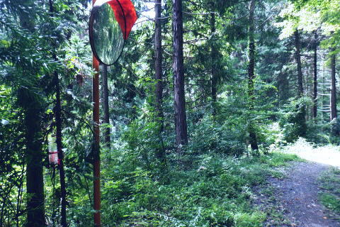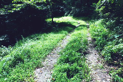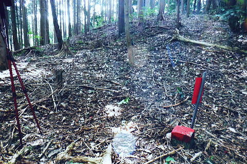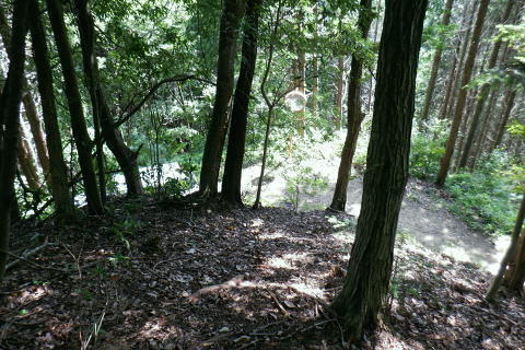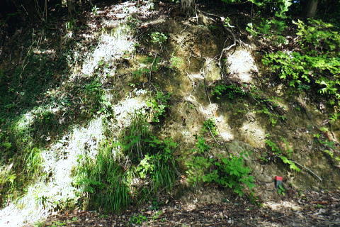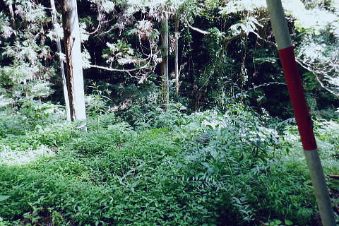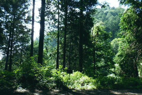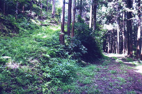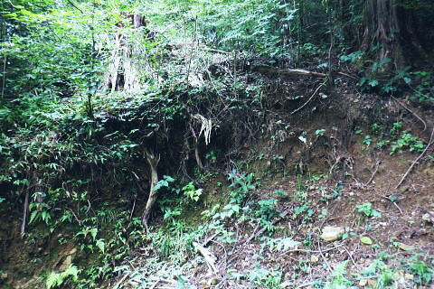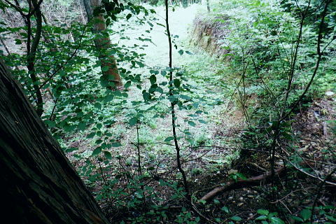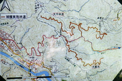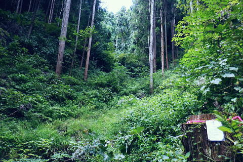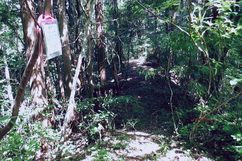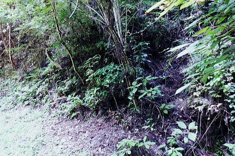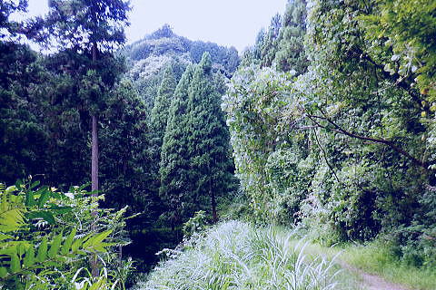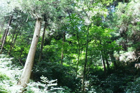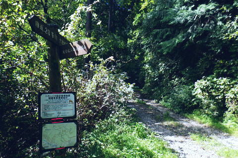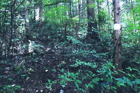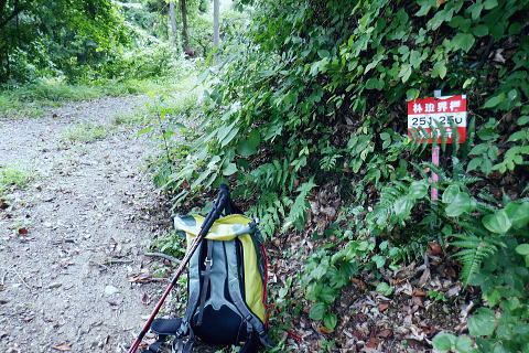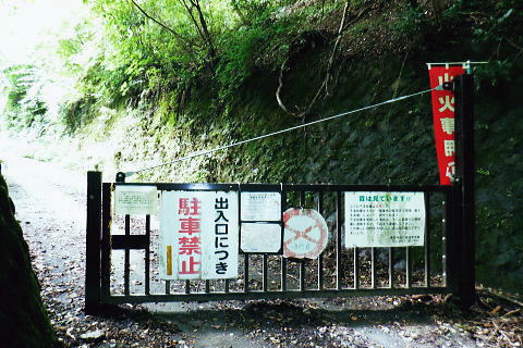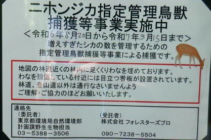 | 熱中症警戒アラームが7月から続く中.漸く第二弾として近場の高尾山案内川の右岸伝いを散策す ・・高尾山山域12.Top 歳と体と相談しての短い距離. 案内川上流の大垂水林道から中沢川左岸尾根を下り.京王高尾山口駅に下りる 2024年08月23日.松村 大垂水林道から南高尾山稜の無名500m圏コブ東尾根を下り末端は410m圏コブへ・・途中で分岐線4号鉄塔に寄る 南高尾山稜.北側の410mコブから中沢川川左岸尾根 「吉高菊一稲荷社」.里道から国道にでて京王高尾山口駅 大垂水峠から高尾への最短コース. 大垂水林道終点から続く案内川右岸尾根を下り.南浅川町.高尾町.そして京王高尾山口駅へ。 予定の後半は東高尾山稜の四辻まで登り.金刀比羅尾根を横切り.東浅川の両界橋に至るコース。 ただ街道の照り返しが強く.歩むも私独り。駅舎にでて改めて登り返すことに難渋し.無理と高尾山口駅で諦める。 jr相模湖駅前広場のバスターミナル.8:38大垂水林道の終点から南高尾山稜の無名の500m圏コブ東尾根を詰め.榎窪川左岸尾根から拓大西尾根に下ったのが2022年の師走。 今日はこの東尾根の末端を含めた2つのコブ. 北側の410m圏コブから案内川右岸伝いに延びる西沢川左岸尾根を選び. 案内川沿いに下ることにした。中途半端になってしまったが.体が暑さで動かず諦めるしかなかった。 国道20号線.甲州街道の底沢bsを通過.8:468月23日(金).晴 jr御徒町7:02=7:05神田.快速7:09=8:23高尾.大月行8:25=8:33相模湖.神奈川中央バス.¥320.八王子行:39=8:55大垂水峠(上)bs. 国分寺駅で緊急停車.分らぬが安全確認の為と7分遅れ。日の出5:08. 神田駅構内東口にコンピニが開業する.6:30~21:30. 大垂水バス停(上)391m 宮ノ台バス停を通過し.大垂水峠を越す.8:55大垂水bs9:00―大垂水林道ゲート9:05―4号鉄塔9:38―大垂水林道終点10:35―北側の410m圏コブ10:55. (東高尾山稜500圏コブ東尾根の末端コブ)から中沢川左岸尾根を綴る。 以前下車した宮ノ台バス停は新多摩線の鉄塔尾根を詰め.高尾山の全体をを知ろうと高尾山を取り囲む4つの林道を歩んでいた。 入山として大垂水峠を越すのは初めて。大垂水バス停(下)は国道20号線の標高点369.5mには.乗車したハイカーは私を含め4人.全員が下車する。 バス停は南高尾山稜と結ばれる大垂水橋の袂でもあり.又北側の学習の歩道に繋がる案内川上流端にも当たっていた。 私は独り.少し案内川沿いに下り.右岸に取付きがある大垂水林道に入る。 新たに構えられた大垂水林道ゲート前の2つの鞍 2年前の師走にはゲート前にはなかった2つの鞍.9:05ゲート前に改めて並ぶ看板. 「車両禁止」「不法投棄禁止」.右の小さな看板は「監視カメラ作動中」とある。それほど酷いのか。 大垂水林道のゲートゲートを抜けた後にライトバンが私の脇を通り過ぎる。運転手はJRの分岐鉄塔と送電線の点検に来たと語っていた。 ゲート中央の上下に掲げられた「ニホンシカ駆除」の知らせ. 右図は捕獲実地林道の大平林道.高尾林道.大垂水林道図.直ぐ先の林道と登山道の分岐 足元にカメムシを一匹見付けている。遠くにはミンミン蝉が.9:09ゲートから小さな切通しを抜けると登山道「大垂水峠.大洞山」の分岐にでる。標柱に改めて「.ニホンシカの捕獲実地」の警告板が示されいた。 南高尾山稜の登山道との分岐道標直進の腕先は「林道終点」とある。右後方に折れるのは南高尾山稜と大垂水橋を繋ぐ首都圏自然歩道。 この先.茂みを2分ほど横切ると数m高い所に登山道があり.先程バスに同乗していた女性2人組の会話が聞こえてきた。 この先.右に細い石垣の登りに入ると南高尾山稜の取り付き①がある。 案内川を隔てての日影乗鞍 左手の切り開きから見上げるのが北側の遠望.9:15ここ大垂水林道から続くjr高尾分岐線は中央の8号鉄塔から背稜に建つ10号鉄塔を越え.小仏のjr高尾変電所とを結ぶjr高尾分岐線。 大洞山536m北東尾根を見上げる 地形図黒線とY字の林道分岐.9:18左手にはやや長い黒線が延び.右手は南高尾山稜の山腹を綴る林道。又終点手前の北東尾根の下部では東側に枝尾根をだしている。 林道の突き当りには「南鷹尾・風景林」とある。少し風景としては疎らな感じもするが.広い森を綴る林道の一辺して見渡せば. 谷間へと落ち付く場所だった。右の立木の根元に白ペンキで直接大きく.「に」と幹に付けられた木の屋号があり.目に付く。 送電線の白柱から降りる地形図の黒線は.左の450m圏コブから途切れているが.東尾根伝いに記された破線路と共に国道沿いの「あずさ霊園」に下りている。 破線はここからヘアピンカーブして.微たる踏み跡が分かれ.東尾根の南側を流れる案内川の支流に突き当たる。暫くは沢中を歩み.左岸からの踏み跡からは. 時々消えたりするものの.沢から離れずにいるとはっきりした道にでて.八王子あずさ霊園に下りられる。 右.裏山の頭上に鉄塔が建つ.9:25改めて正面の右手には林道が続く。中央の黒板に見える標標には「八王子・大月線高尾分岐」と記されていた。その直ぐ先で4号分線鉄塔にでる。 右に折れ直進すると.左に回り込み.尾根筋