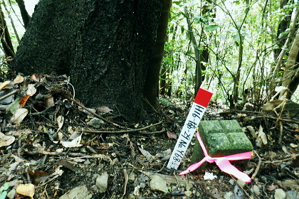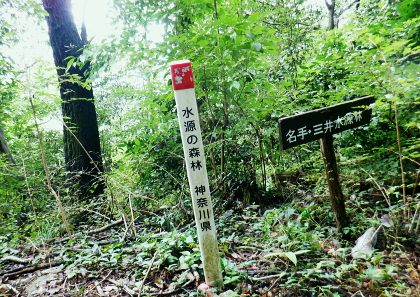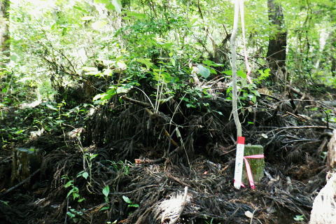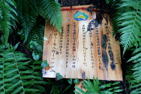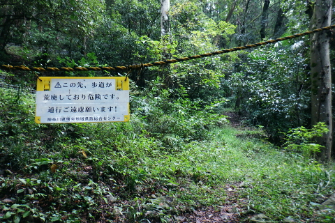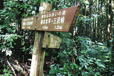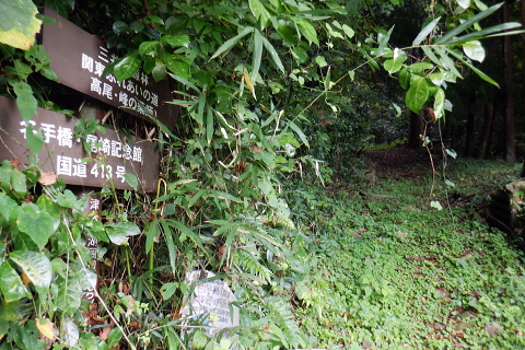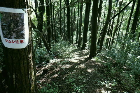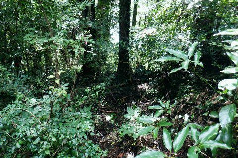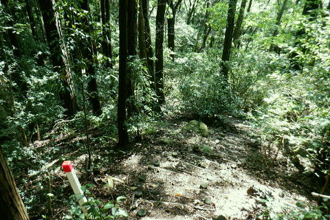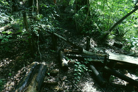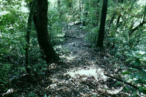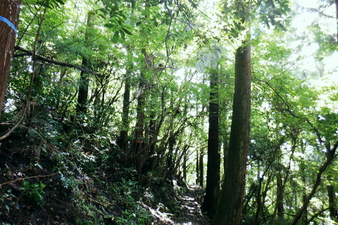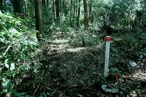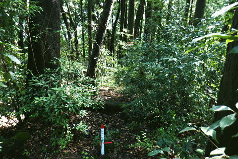 | 津久井湖々畔.名手から再び三井水源林の東側方面へ大きく回り込む。金比羅宮から斜上し再び南高尾山稜へ 名手の高みにある墓地の下段歩道から取付き.中段の水源林歩道と合わ.三井禅寺への分岐にでて昼食。 金比羅宮の右脇より再び「首都圏自然歩道」の西山峠にでて.泰光寺山南東尾根に入る南側の巻道から下り.再度湖畔の三井に至る 前回に続く南浅川から入沢山北東尾根 背稜の見晴台から見下ろした三井水源林の森を抜け名手へ 湖畔からの水源林後半は金毘羅宮.西山峠と秦光寺山南東尾根から大久保山・・斜上し斜下 東尾根を更に南下し三井にでて.峰ノ薬師・・下山は城山 墓地分岐10:17―11:34西山峠―12:30泰光寺山南東尾根.大久保山 再び三井の水源林を北上する 県道515号線200m圏の墓地への分岐を振り返る.10:22左後方の坂道を上がり.戻る形で地形図に記された黒線を登っている。分岐に印は何もない。 三井の中段歩道に合わさる。里道から再び下段の水源林歩道を斜上し.310m圏で少しずれ.小さく北側に回り込み. 破線路に戻っているようだった。この破線路を利用して.最初の取付きの中段歩道と合わせ.金毘羅宮から再び南高尾山稜に立つ。 台地状の墓地と左上には黒線が引かれていた.黒線から奥中央に隠れるよう小さな道標がここからも眺められている。 三井水源林下段歩道 奥の道標から破線路に変わり.最後の詰めは金毘羅宮にでる.10:24ここが名手からの下段歩道.途中で三井水源林口からのジグザグ道から分けた中段歩道と合わさり. 又三井禅寺からの山道とも合わせると金毘羅宮の分岐にでる。直ぐ上が西山峠. 朝方は杉.檜の少し藪絡みの植林尾根を登ってきた。背稜に出てからは三井の南面に開かれたボランテァの森を綴り. 県道515号線の名手から折り返し.ここ西山峠への水源林歩道の起点にでている。にでる。 中段の分岐点 220m圏.細い山道に変わる墓地上の最初のロープ.10:25ここには下からの取付きの緩やかな斜面で.心地よい森だが「通行止め」のロープが直ぐ張られていた。 ロープを潜ると左脇に降りきた山道と合わさる。この道は左に緑の網柵に守られて.東光寺からの道と繋がれている。私は里道から登ってきた。 何の為か.更なるロープで封鎖.10:42西山峠へは手前の巻道を進む。 向いにあった「神奈川県三井水源林管理道路」の説明板..中段歩道から分岐 320m圏.西側ボランテァの森から続く上段歩道への分岐を振り返る.10:43中段歩道と合流 下ってきた「中段歩道の周回コース」の分岐.10:46 緩やかな傾斜で下段から中段歩道の入る.10:48 10:54経路脇には幾つもの小広い面積の敷地が暫く歩く間に.白テープに囲まれ作られていた。作業工程は分らぬが何か始まるらしい? 傍に掲げられた「水源協定林図」.11:04西山峠南尾根 400m圏で.三井禅寺と西山峠を分ける分岐.11:07〜11:28右下に下る里は三井禅寺からの出口.二又で.左上の背稜は金比羅宮から西山峠へ。 左下に下ると県道515号線沿いの三井禅寺の裏側にでる。左前方は名手方面から登ってきた歩道。 右上には金毘羅宮の赤い鳥居が見え.更なる左上の背稜は西山峠に至る。 金毘羅宮 南高尾山稜下 西山峠へは左下の経路を登ってきたが.別コースとして休憩所のドラゴン脇から金毘羅宮に直接アクセスできる。 尾根の高みを辿れば金比羅宮前に着く。 西山峠へ鳥居の左正面側上段歩道に入り.最初に降りたボランテァの森から続く.山腹の水源林水平歩道で.この鳥居に繋がれていた。 西山峠 南高尾登山道の登山道に合流.11:33昼食後は鳥居の右脇から続く山腹道を200m弱.登ると北高尾山稜の西山峠にでた。 縦走路と北側の入沢川沿いの林道を下る登山道のT字路で.朝方に中沢川との出合から登った.二俣の新中沢橋にでる。 道標の腕木には「山下→」と記されていた。又金毘羅宮からの山道は確り西山峠と結ばれているも.取付きには何の印もなかった。 今まで各取付きにはロープによる閉鎖が示されていた。それすらなかった。初めて訪れた「2014年2月の豪雪」の時は分からなかったが. それ以前から無視された山道かも知れない。三井水源林の森はいまだ夏場に季節のせいか.改善はまだまだ掛かると思われる。 目線に被る下草に.足場を求めての水源林歩道。通行には「自粛要請」が出されている。 30.0m.高南高尾山稜の縦走路に合わさる.11:34泰光寺山474.9m 泰光寺山の南側を高巻み南東尾根の取り付きへ.11:48山行を直線するコースを変更 泰光寺山474.9mには丸太を2つに分けた3つのベンチがあり.越えた先には440m圏の小コブがある。 頂のT字の道標には「通行止め」とある北東尾根(榎窪沢左岸尾根).1年半前に400m圏コブから榎窪沢林道沿いの高尾グリーセンターに下りている。 今回は三井水源林を目指し.入沢川を取り囲む尾根を往復に活用しようと昨夜までは考えていた。ただ前回は右岸の大垂水林道から 中沢川左岸沿いを下り.高尾山口駅まで下っている。それに今回は南浅川から往復.同じコースを歩むことになる。 何か知恵もなく情けなくなってきた。新ためて寝床で