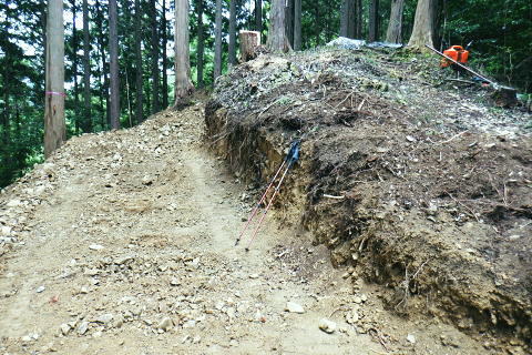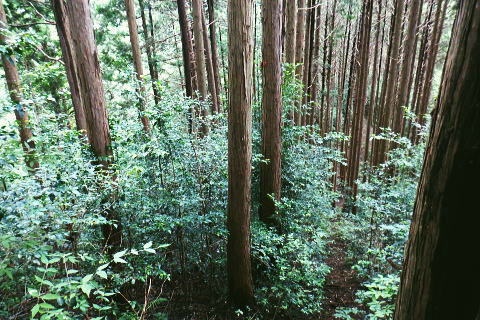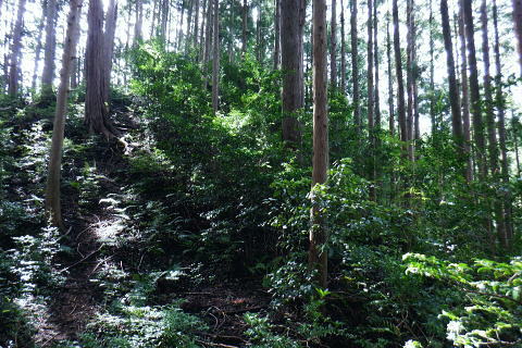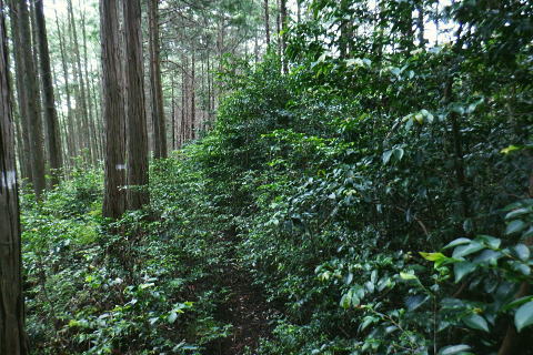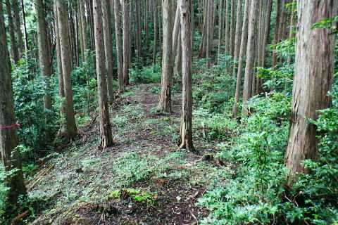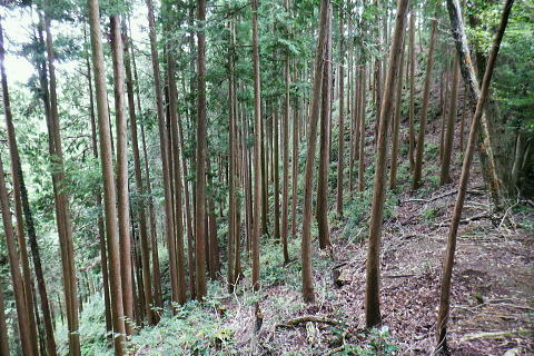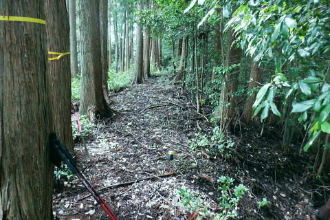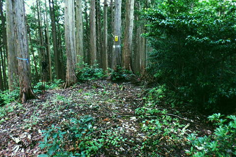| 二本松ノ頭から吹上峠を越え.改めて第二高点.第三高点を越え.栗平林道から青梅丘陵に入り三方台をピストン 丘陵を齧り.鷹巣山から青梅の杜へ。それが大きく外れ.黒仁田の北側の流域へと歩むことになる。急きょ黒沢(三)に下りjr青梅駅へ 青梅第7中学校前bsから指倉峠と新.旧吹上峠越え 314m点Pからは青梅丘陵.三方山をピストン・・新たに林道を造成中 鷹巣山から裏コース「青梅の杜.こぶしの森」から黒仁田の2つ目の出合 黒仁田林道二又から黒沢(三).青梅トンネルを経て梅岩寺.jr青梅沢 吹上峠9:30―第二.第三高点―11:20三方山―青梅丘陵ハイキングコース. 吹上峠から最初の300m圏小コブ 峠から直登し.更に小コブの頂で直角に左に折れる.9:29この頂から北西に延びる小尾根の末端は新吹上トンネルの西詰口で.左側から北小曽木川に落ちる涸れた小沢が流れている。 無名の小沢? この沢を右岸に渡ると.隧道口への道が続き.又旧道を分ければ吹上峠への登り口がある。 2つ目の300m圏Pは背稜を直進し越えている.9:34 9:40南下する尾根筋の右側の谷間は.成木八交差点の南側に落ちる枝沢で.ほぼ直進の旧道を深り.Uターンする形で進むと 旧吹上峠に登る踏み跡がある。取付きのポイントは.左方の丁度.ガードレールが途切れる所。そのまま旧道を道なりに進む路と旧吹上隧道口にでる。 まだ徒歩と自転車で抜けられる現役の都道。この下を横切るのが.朝路線バスに乗り.潜った成木街道の新吹上トンネル。 青梅丘陵へと繋ぐ背稜を第二.最三高点と過ぎ.その先.右側の谷間に回り込むと390m圏の細長い台地にでる。ここが右の谷間の中間尾根の源になる。 以前.吹上隧道から東青梅に下りた折.小沢の割には橋を渡るのに長い往復を強いられていた。それで出合から渡渉した覚えがある。 その旧道から谷間の遥か遠く390m圏台地の右奥に.聳え.今この2つの頂へと目指す。 9:40 9:41 手が入り.足元も歩き易い.9:45 古過ぎる懐かしい看板.9:48 これから点々と続く管理標.9:49310m圏コブ コブへ直進すると南側から西方へ折れる.9:52第二高点 山名標の下に「吹上峠→」とある.9:59 標高点314m.青梅市.314m点の2級基準点.林道造成工事現場 第二高点の西側肩より.10:07林道造成工事 当然前方に現れた明るく開かれた林道の延長工事現場。ここに置かれたブルを起点に.黒仁田林道沿いの破線路を林道に変えていた。 .黒仁田林道の延長工事?.或いは支線になるのかは分からない。ここから背稜にでて.背稜沿いにU字に旧カーブさせ. 私の行く先方の尾根伝いに続いている。今日は秋分の日。祭日の三連休. 明日から更なる造成が行われるのだろうか。最後の林道開墾口にはテープに「 ・・終了」と尾根に出たことが.記されていた。 尾根に乗り.一時の休みか? 更に続行されるのかは.聞く相手も居ず分からなかった。 林道が背稜と繋がれた地点 大きく尾根上をU字にターンする林道 尾根に乗り.左下の黒沢川流域への破線林道に変わる.10:09第二高点と台地上の300m圏との鞍部にある破線路は新たな林道が造成中だった。 黒沢川支流の二俣.201m点の黒仁田林道の起点と繋がっているのでは。下の二俣地点は今日午後に鷹巣山から黒沢川流域に入る予定だった。 それがJISのトラブルで目指す経路を変更している。それが何故か.東側の400m圏コブの鞍部に出て.この下流に下りている。 「青梅の杜」へ進み.ルートを失っている。そして下った地点が黒仁田林道の起点だった。 2021年05月の時点前までは二俣まで林道が通っていた。 背稜から北側の尾根に乗り.左西方に回り込む.10:10林道上部の終点 奥の尾根筋は更に大らかな台地が広がる.10:13 現在の林道終点地点.10:15左前方はその下.壁の如く抉り落ちている。.右は尾根筋の登山道. 林道の肩からは登山道が続く10:17 平坦な鞍部・・ここまではほぼ尾根の平坦地.10:19 尾根と云うより丘陵の深い植林帯.10:24 破線路の分岐? と分かれる.10:25山腹と並行する破線路? 北西へ3900m圏台地へ登る。 3900m圏峰 台地状の広い帯状の頂の東肩.10:31 台地のほぼ中半.10:32390m圏台地の東肩 立木には「「吹上峠」.10:33 10:34 390m台地の西端の分岐点.10:39頂の肩からは北側に緩やかな円を描くよう尾根が延び.316m点コブを擁する尾根がある。末端は新吹上トンネル西詰脇の249m点コブ。 そして脇に流れる小沢を出合まで取り囲む形を末端は取っていた。所謂.この小沢の源頭は390m圏コブになる。 右奥へと進む踏み跡はこの尾根伝いに316m点コブ近くまで残されている。破線路はここからの下りと合流し.尾根筋の西側山腹を綴っている。 尾根幅も広く.林道の造成には期待できる条件が揃っている。ただ西側の谷間には栗平林道が既に背稜近くまで登り付けられていた。 肩の分岐点から下る時は尾根上の踏み跡と確り合わさっているので注意を要する。又下れば栗平林道の終点にでる。 316m点コブ北東尾根からの三方山北尾根の入山は.成木(八)交差点から左の都道に入り.北小曾木川対岸にある蜆沢院(けんたくいん)に向かう 車道橋を見て過ぎると都道の側壁を越える確りした登る