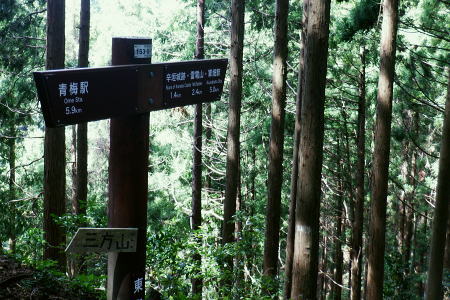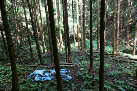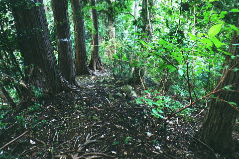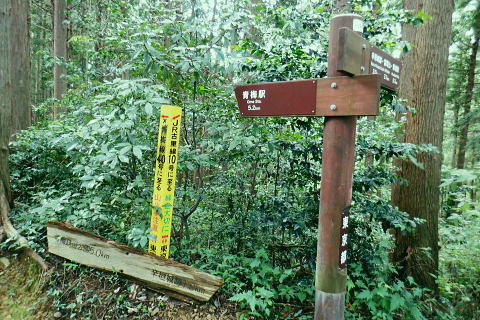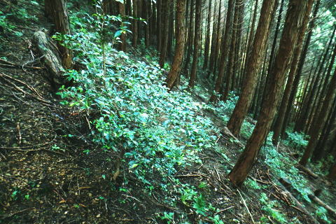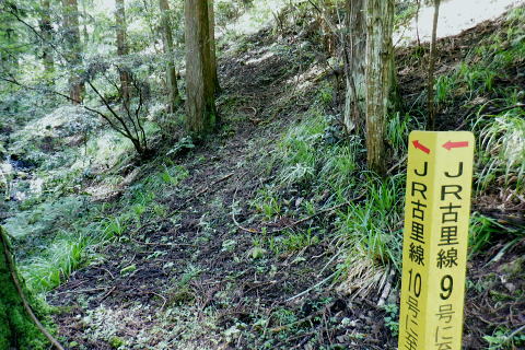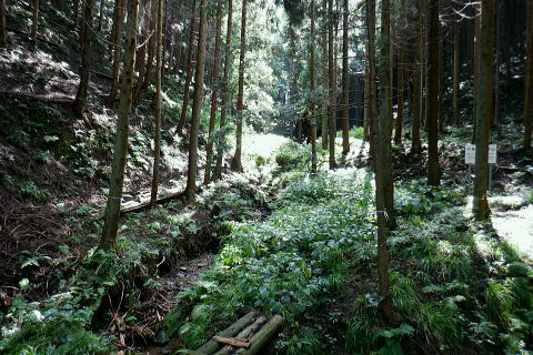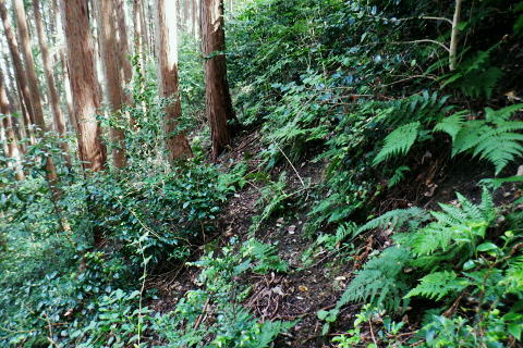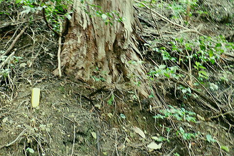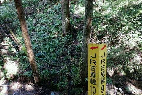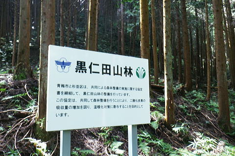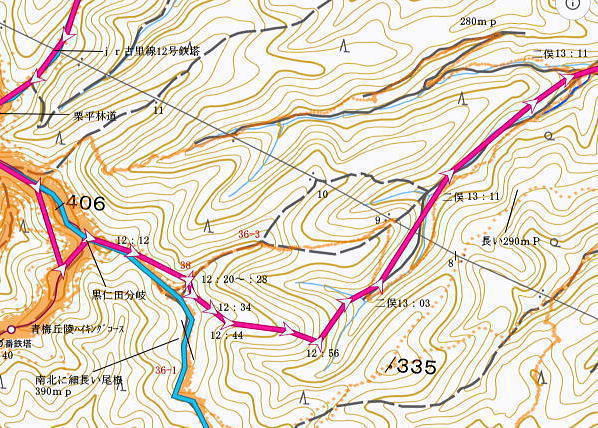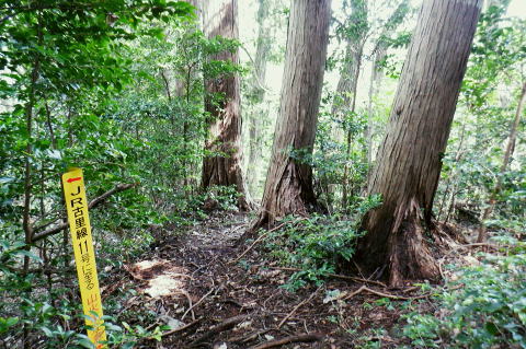 | 三方山のピストンから青梅丘陵ハイキングコース. 更に鷹巣山裏側の「青梅の杜」へと出向く。 朝方の登り始めと同じような.失われつつある踏み跡と藪絡む蜘蛛の巣にうんざりさせられ.JPSの迷いと共に別経路を取っている。 青梅第7中学校前bsから指倉峠と新.旧吹上峠越え 314m点Pからは青梅丘陵の三方山をピストン 鷹巣山から裏コース「青梅の杜.こぶしの森」から黒仁田沢の出合・・再び同じ黒仁田林道? 黒仁田林道二又から黒沢(三).青梅トンネルを経て梅岩寺.jr青梅沢 青梅丘陵ハイキングコース 縦走路で「.5コース」の一枚を見る.11:08青梅丘陵11:00―黒仁田林道支線終点―13:03二つ目の二俣. 道標から「三方山」を目指しピストン.11:17急に増えた道標に確りした踏み跡の縦走路.歩き易いハイキングコースから戻り.再び経路へ。 黒仁田分岐 東青梅丘陵を右に分け細い経路へ.12:04石神前駅への分岐から鷹巣山406m点を越えずに.南側のコースを巻いてしまったらしい。南側の400m圏コブの手前で. 40番鉄塔へと綴るハイキングコースを分けている。北側へ抜ける感じで直進する.鷹巣山と東400m圏コブの鞍部から黒仁田分岐へと細い経路に入る。 ここは黄色い鉄塔標柱を見ると「古里10号に至る」とある巡視路と経路が重なっていた。 山道の向かいに.珍しい青帽白柱「.10」が立つ。私の背.向かいがこれから進む経路で「青梅の杜」へと続く。 黒仁田分岐から混する山域・・JPS? ルートを変更.最後は目線で山を降りる黒仁田分岐 分岐から尾根伝い右に回り込む.12:12直進し406m点コブとの鞍部に出てから右回りに東の400m圏コブを越えている。 早くも左側の足元.谷沿いが.昨日の降雨もあり.崩れ掛けている。倒木を跨ぐもぬかるみ抉る姿は落ち付かず。 「通行禁止」の激しい黄色いテープ この先.浅い鞍部で黄色い通行止めのテープが幾つも横切る.12:14 鞍部からの浅い登りだった。. 直ぐ先の細長い390m圏台地へ.12:16 尾根の三又.12:19南北に小広い390m圏台地にでるまではよかったが.破線路が北東と南尾根に付き.東側に下りる尾根に破線路は見つからなかった。 三又にでて.何やら様子が可笑しい。もう最初から迷っている。道標は「ハイキングコース36→」と「←○7水場・38-2」の腕木が大地に落ちていた。 この先で悩みだす。本来は南側の破線路を選ぶ所.その間の無印の尾根を下っている。 当時の山レコではこのルートが南の破線路を示していた。又北方の破線路はルート以外の画像として残されずにいた。 高度差が低く.起伏は浅いJPSの設置が.そのようにさせているのだろうか? 12:19尾根伝いに進んでは戻り.ルートを確認するも.同じ所を堂々巡りし繰り返している。大きく戻っては先を探す有様。 390m圏コブ中間東尾根のツメを下る.12:34 一度東尾根から戻り.南山腹で黄色いプラ杭を見付けた.12:37 330mの尾根筋南側の山腹.12:42360m圏の低山の山覆道.JPSではコース上を歩み.黄色いプラ杭が点と2ケ所にあるも..当時破線路でない所にも係わらずあるのも可笑しい。 ここはルートでなく.踏み跡もなかった。プラ杭は作業道にある筈。JPSと画像は異なっている。何故か? 中央東尾根の370m圏の黄色プラ杭.12:44最初のルートから外れているのは確か。黒仁田の流域へと目線で繋がる左側のルートを選び.北上する。 「山レコ」のコースも無視し.無いものとして.新たな目線でルートを選び進むことにした。尾根筋から谷間へ.明るくなり.尾根筋から谷間へと下りだす。 グッと歩き易くもなってきた山道.12:48 尾根中程.350m圏の小広い尾根を横切る.12:48 尾根の崖縁にでて尾根を東側から北東へ回り込む.12:55幾らか主東尾根とズレ.真東の末端付近にでて.左に修正し二俣を目指す。 黒仁田地区の中央を悠然と歩んでいるようだ.12:55 350m圏で尾根筋を東からは北東に曲がる.12:57 左から小沢の最上部二俣260m圏を見下ろす.13:00黒沢川左岸流域の中央.初めての沢出合を目指し降りた。 最上部の二俣260m圏 黒仁田林道が見下ろされる.13:02二俣中間尾根の看板の裏側から出合を目指した。何にが示されているかと期待が募りる。 黒仁田山林 看板の裏側を振り返り.ホッとする活字を見付ける.13:02 二俣の木橋を渡り林道にでた.13:03「山マップ」を開き.現地点を確認する。林道にでて.周りりが何処か開かれる。 黒仁田の林道に間違いはあるまい。確信の一歩で更に降りた。 二俣の出合と奥の林道.13:04山道と林道 山道との二又・・右下に見えるのは林道ゲート.13:04支線の終点と並ぶよう更に.少し荒れ気味の山道と合わせている。正確にはこの左尾根は.この下部の2番目の出合に落ちる中間尾根。 巡視路が尾根筋を綴り.jr古里線10号鉄塔の基部.240m圏へと続いている。ここから山道は破線ではなく.踏み跡でに 北東へ斜上すると同じ10号鉄塔に繋がれている筈。 更に中間尾根の尾根筋を西方へ横切れば.地図では破線路となり.300m圏の尾根二又にでる。道標「86-3」の位置する分岐か? そのまま尾根を詰めれば.先程背稜から下りだし.JPSで混乱した場所に戻ることになる。 背稜を進むには決断が