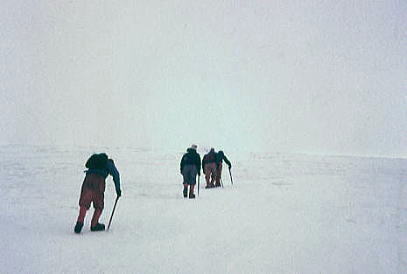 | 懐かしい小屋 漸く一昨年のベースキャンプを設けた五合五勺に着く.懐かしい穴倉のような小屋。 背に風を受けている。小屋で幾らか風は遮られるが各々の顔は皆引き尽き歪んでいた。 煙草 小屋入口穴前に腰を降ろし一本取る。先を案じる風が旋風となり通り過ぎた。 ヤッケから煙草を取り出し吸う。漸く点けられた煙草も風が強過ぎて今にも消えそうだ。それでいて1本の煙草は吸う前に風に潰されて行く。 焦りながら吸う煙草.旨いと思う前に消えだした。少しも吸いたいと優雅さはない。 暫らく小屋陰で風を避けていると遭難者が降りてきた。額から血のツララが垂れ下がり.彼等は悲壮な症状を漂わしていた。 今日だけでも他に何人も転倒してをり.僕等を救助隊と思い込んでいるらしい。 冬富士特有の滑落事故.滑落すればここから救助は無理にだった。御殿場口は3合目まで雪原化し凍っている。 風は更に強まり陽射しは間を空けず途絶えだした。 寒さが身に凍み.留まっていること自体が苦痛になりだしていた。登頂を断念.ベースに戻る。 冬富士U1.三合目ベースキャンフとアタック 冬富士U2.スキーで遊ぶ |
