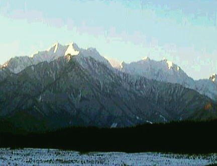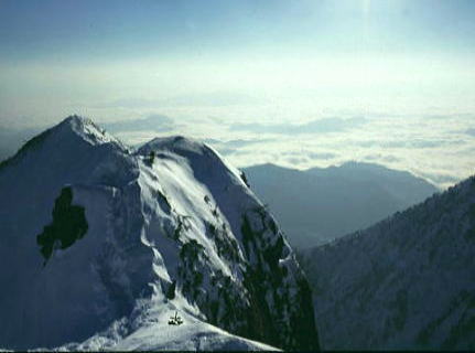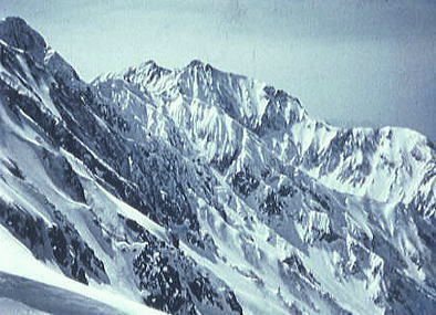 目の前に白稜煌く頂が聳え.ゴーグルを通しても煌き輝く頂は眩んでいる。