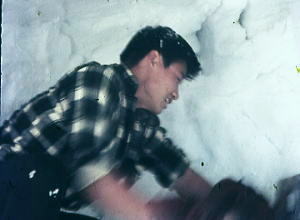積雪はあまり多くはないが雪質の良い雪洞を掘る。