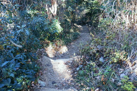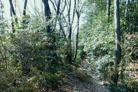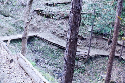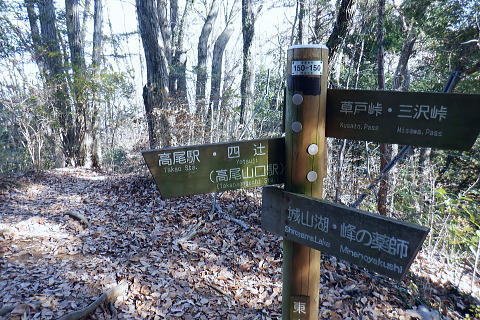 | 金比羅宮参道から周回し.戻った金比羅宮脇から城山湖遊歩道へ。城山湖を右回りで初めて本沢ダムに立ち.北面の都県界尾根に乗る。 境川源流の大地沢を下り.市界尾根に回り込み.東高尾山稜の草戸峠から拓大分岐にでる 法政大から県道.龍籠山金刀比羅宮参道から航空神社牡龍籠山 城山湖本沢ダムから境川の源流を越え.東高尾山稜拓大分岐・・本沢ダムから北面の都県界尾根 初沢川源頭から下り金毘羅尾根のコル.浅川金毘羅神社から案内川両界橋 城山湖.本沢ダムへのゲート 城山湖堰堤柵口・・城山湖をけて東高尾山稜へ.11:09都県境界尾根と本沢ダム東尾根 城山湖の東端.11:11金比羅宮参道コースからから穴沢林道に戻り城山湖へ 11:13ダムはロックフィルダム.堰高73.00m.堰長234.00m. 完成昭和40年11月. 町田市の最高地点の草戸山 本沢ダムから跨いでの湖畔の北面.11:14都県境尾根尾末端と重なる小さな本沢ダム東尾根で.左側の尾根の突き出し手前に松平休憩所がある。 本沢ダム東尾根 本沢ダム北端まで歩き.「しいろやまこ」の文字上に右階段から登ると本沢ダム東尾根にでる。倒木の多い荒れた尾根で.270m圏で. 神奈川県企業庁の2級基準点を過ぎ.270m圏コブを越えた先で本尾根と分かれる。石仏.石塔にでて.青少年センター入口駐車場の少し大戸側の石段にでる。 都県界尾根からは300mで3級基準点に出て.尾根末端の青少年センターの分岐292m点を左に分け直進すると急坂からセンター入口駐車場前にでる。 本沢ダム東尾根には駐車場の少し大戸側に歩き石段から取り付く。 右端が榎窪山420m. その裏側が三沢峠 本沢ダム天端からの城山湖の眺め.11:15峯ノ薬師の手前の尾根に乗る電波塔群. 本沢ダムの天端からの東方の眺めと野球場.11:17城山湖は谷戸を堰き止めた人造湖. 津久井湖と城山湖の標高差は185.00m. 左奥の口が城山湖の放水口.ただ完全な揚水式城山発電所の上池なので.発電用水は下池の津久井湖からポンプで汲み上げられている。 水溜の為.昼夜の変化は.一日に28mの水位変化がある。 城山湖北面 放水路を越え.北面の中腹道に入る11:18堰堤から見た余水吐と放水菅設備。一般的なダムの非常用余水吐と常用余水吐に相当する施設。右が管理橋. 左端からの階段から堰堤口ゲートを抜け北面の山道に回り込む。 上部.右の放水路口.11:21川の源流ではないが城山湖から集中豪雨等の増水時に排水するための自然放水する放水路。 余水吐越流堤から下方の宝沢へ向かう水路。宝沢は下流で境川源流の一つ大地沢に合流している。 11:20ダム堰堤から城山湖北面の中腹道へ ダムのゲート.11:22城山湖北面 11:26 北岸の高みにあるはなさき休憩所.11:27道標には「←城山湖堰堤250m.徒歩10分. 松見平休憩所400m.徒歩20分→」とある。 豪雪と「はなさき休憩所」 丁度10年ほど前の「平成26豪雪」では.高尾山に1mの積雪を記録し.中央東線は一週間不通になっていた。 その折.信州に行かずして1時間で大雪を踏めると路線バスの開通と共に.ストックにカンジキを持ち.小仏峠から大地青少年センターまで歩んでいる。 眩い陽射しに汗をかき.カンジキを付けて膝上までの積雪で.脇に外れると股まで潜り.掘り出すのが大変だった。 三沢峠を過ぎ日が陰り始めると共に薄暗さは増している。浅くなった防火帯の積雪には.時折雪解けの穴にそれらしき丸太を見るようなる。 城山湖分岐から湖畔の雪景色を眺めようと百階段を下る。城山湖の北面湖畔には寒々しく「はなさき休憩所」が取り残されているようあった。 黄昏だした湖面はどんより雪原化していた。人の気配どころか踏み跡をも見られず。湖面は雪原化し.更に暗さを増した無音の世界だった。 下りはあっという間だったが登りの20分に苦労する。見えぬ木段が雪の下に隠れ.焦ると滑るだけでなく.雪塊が合わさり落ちてきた。 情けないやら.暗くなるやらで.焦る気持ちを抑えるのが精一杯だった。雪原化した境界尾根に出てると.後は足元を見るだけ.蹴るよう走り抜けている。 そして青少年センターまでには最後の隠れ穴があったが.如何にか日没前に下山した。除雪されたアスファルトの大地を踏んでいる。 休憩所に立ち寄るまでは気にもしなかった所. それが何故か怒涛の如く想い出された。湧き上がるがごとく次から次へと当時のことが想い出され. 何と立ち止まり.改めて周りに風景を見るが.今は紅葉を終えたばかりの別の世界が映し出されていた。 日没を前にして.当時は動物の踏み跡さえ.なかった。吹く風は冷たく..それこそ白さだけが閑散として望めた世界だった。 都県界尾根にでて城山湖分岐 .草戸山364mの東肩.11:34背陵の草戸山と大戸青少年センターの分岐で.右下に湖畔への長い木段が下りている. 2つの源流 境川の源流と初沢川の源流都県界尾根.草戸山の東肩〜.南高尾山稜.拓大分岐〜初沢. 境川源流@ 青少年センターからの境川周遊路11:41湖畔から都県境界尾根に乗り.越えて「境川源流」入口から周遊路へと北側の谷間へ降りる。 境界尾根を左に折れると直ぐ草戸山。その登り始める手前に「境
