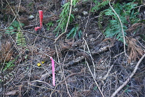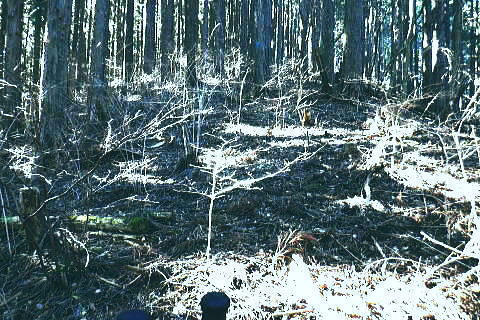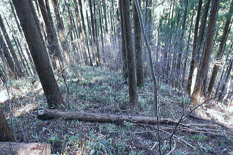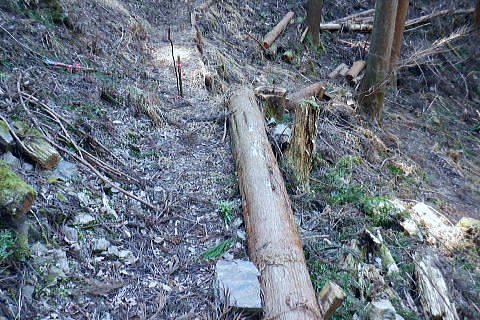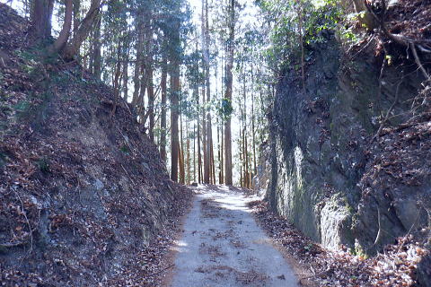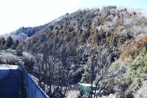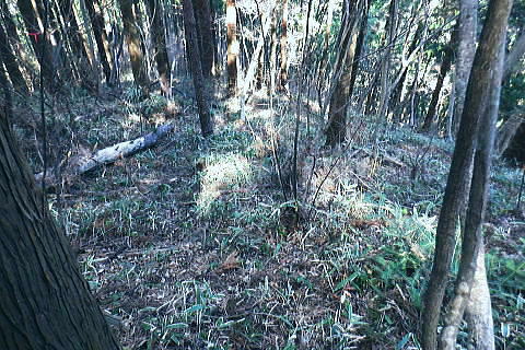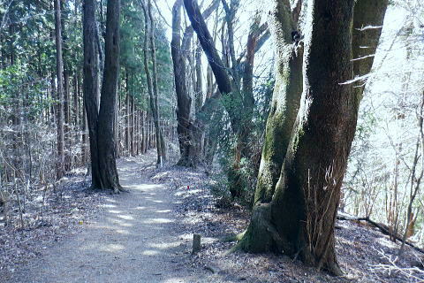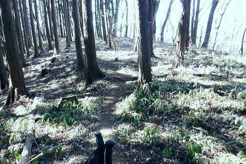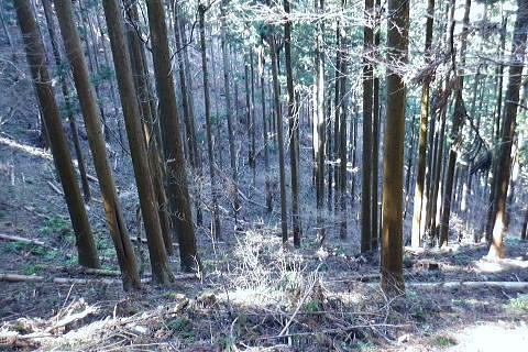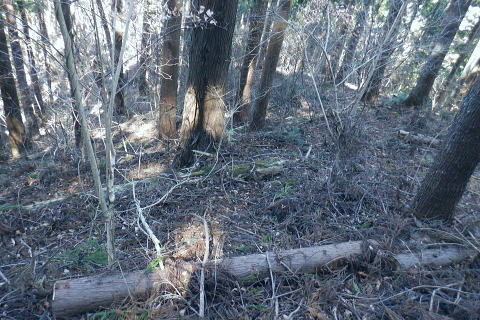 | 高尾陣馬縦走路にでて.富士小屋山.南郷山と越え.まだ誰一人居ぬ陣馬山の頂に立つ 紺碧の蒼空を仰ぎ.初めて一ノ尾尾根を下り.590m圏で背稜を外れ.北尾根の藪絡む作業道に入る。鎌沢入口からは対岸の旧街道へ 上案下から富士小屋山フジコヤ沢右岸尾根 陣馬山一ノ尾根.590m圏肩.北尾根を下り.鎌沢入口から倉子峠へ・・案下・陣馬街道から甲州裏街道 倉子峠から477m点藪尾根から破線路と繋ぎ.矢沢峠から鷹取山登山口 鷹取山北東尾根を諦め.登山道から藤野台東公園へ・・jr上野原駅 連行峰 陣馬山々頂より.11:06連行峰の左肩は生藤山でその奥が三頭山。連行峰の右奥は雲取山. 大岳山は白馬像の裏側になる。 広く起伏も大きな陣馬山の頂にハイカーは誰もいなかった。明け方の寒さも失い.煌めくような明るい陽差しに照り付けられている頂。 紺碧の青空を仰ぐのも私一人。暖かさから何か音として感じてもよさろうだが筈がその気配もない。静かな山頂に抱かれていた。 頂と離れて2組のハイカーとすれ違う。それまでは私一人。若い時のような優雅な気持ちに溺れることもなく.淡々としていた。 それより暖かくなってきたこの陽気.勿体ない気だけを起こしていた。 醍醐丸 陣馬山の3つの茶屋信玄茶屋.隣の富士見茶屋.今日は清水茶屋だけが開店していたが.人出がなくやや寂しい感じ。 背の左手に欠けた御前山と中央からの大岳山馬頭刈尾根と馬頭刈山が広がり.. 御前山の遠方奥に小さく雲取山。 中央奥が馬頭刈山と市道山 扇山と権現山 一ノ尾尾根の天辺にある清水茶屋は営業中.玄関脇にバイクが置かれていたところを見ると通勤に使っているようだった。 背は扇山の肩からは南大菩薩連稜の滝子山.ハマイバ丸に権現山を跨いでとを挟んで.雁腹摺山.牛億ノ雁腹摺山。そして右(北側端)が大菩薩嶺つ繋ぐ。 富嶽 丹沢山地 昼ケ岳.檜洞丸と大室山 昼ケ岳.檜洞丸.大室山 一ノ尾尾根の分岐を右に折れる.11:15陣馬山一ノ尾尾根 生籐山より振り返る.・・2008.02.29/15:08南東方面・・相模湖へ注ぐ沢井川を隔てる生籐山から.手前は頂から派生する小さな南東枝尾根で.鋭く沢井川に落ちている。 写真の陣馬山からの尾根は栃谷川出合と沢井川との合流点の末端は没している。昔家族で.この尾根の裏側の陣渓園に出向き. 山の湯を愉しんでいた。沢井川沿うには陣馬街道(案下街道)が通り.和田峠越えをして案下川沿いに下っている。 今回は国道へ鎌沢入口バス停に降り.旧街道から倉戸峠にでて鷹取山を越える。 陣馬山一ノ尾尾根 陣馬山の新道を除き.一応最後に残された一ノ尾尾根を下る.11:26一ノ尾根.和田尾根の分岐 別名はオデーロ.でベンチある730.0m.11:30 標柱.11:31ここから14分ほど先に和田第二尾根分岐613.0mがあり通過 620m点コブ 12:00一ノ尾尾根.590m圏肩.の北尾根から端線路に分かれ街道へ 案下街道から鎌沢入口で裏甲州街道に移り.倉子峠へ青の予定コースを時間的に変更して.590m圏肩の北尾根を下る。 @.作業道の分岐を間違え通過 @.右下の登山道と左の尾根筋の作業道分岐を振り返る.11:45登山道を降りてから作業道分岐に戻り.左の尾根筋に登り返している。12:03 一ノ尾尾根を更に下ると.再び尾根に乗った所が一ノ尾テラス。 620m点からの一ノ尾尾根の登山道を分け.尾根筋上の下り斜面 作業道.踏み跡に入る.12:04 藪絡みの50mほど下.12:08A.590m圏肩.の北尾根口 2本の立木の間が北尾根の破線の取り付き.12:10道中.少々時間を使い過ぎた感があり.日没前に上野原駅に着ければよいが。念のため580m圏からの西北西尾根を諦め..590m圏北尾根に変更した。 このコースは陣馬街道の鎌沢入口バス停の少し下流側に降りられるが.尾根に乗り付くまでに少し神経を使う場所でもある。 取付きからは尾根幅広く緩やかな破線路..2:13580m付近の背陵から20mほど下を左へ並行している作業道だが.探索した訳ではないが見付けることはできなかった。 生い茂れば尚更無理かも。 細かな枝木絡みが多く.目には注意.12:15冬木で全てが裸木で.先の見通しが利くが春へと生い茂れば大変なことになろう。 490m圏の更にやや広なった所で左に横切る踏み跡へトラバースし.北尾根と分れている。 初めての赤帽白柱だが同じものは続かず.12:17 小さく開かれるも又藪に.12:18 12:19南下する破線はやや右回りから尾根筋に戻り降りている。 私は着実に尾根筋を下り.倒木絡みの踏み跡作りの現場を見付け.理解して好奇心から先は北尾根筋を分けて.左に折れ破線路へる。 3.伐採現場を左に折れる 伐採した倒木が現れると北尾根を分け.左手にトラバース.12:24其の儘北尾根を直下すれば案下街道にでる。出た直ぐ左脇.下流側に和田バス停がある。 490m圏付近では倒木が踏み跡に変わり.トラバースらしき作業道は.一時はっきりし踏み跡で.ホッとするも.先は続かず。 立派に踏み固められている巻道だが? 12:264.谷筋で途切れ南下 ?490m圏.トラバースの巻道は終点.12:27先への踏み跡はなる。作業道の印類は皆無で.青テープが地面の枝木に立てられていた。 周りを探ると踏み跡は右下の谷間に向い一直線