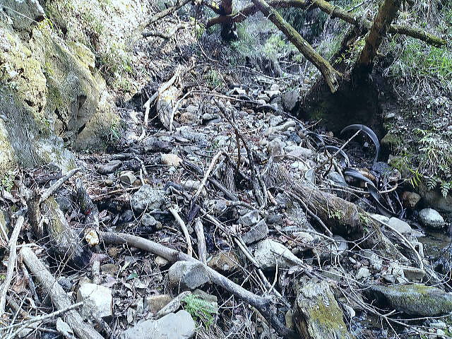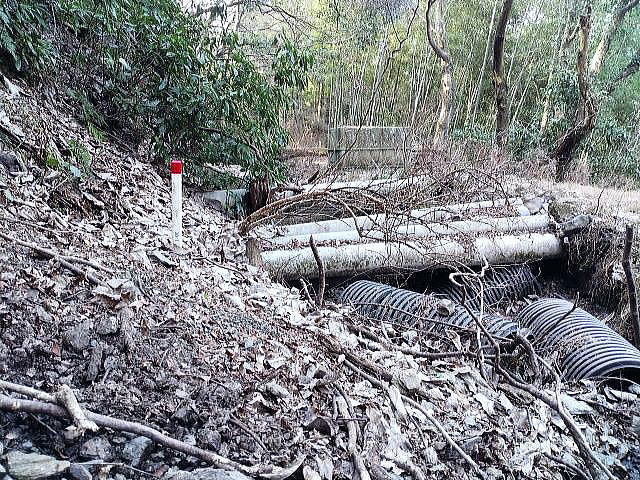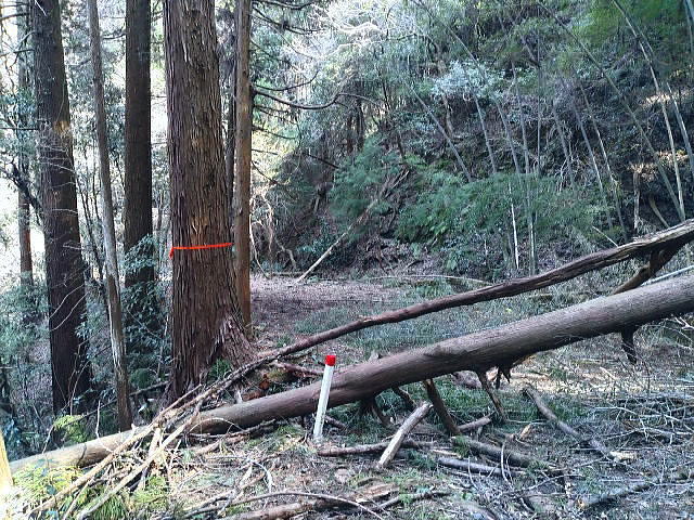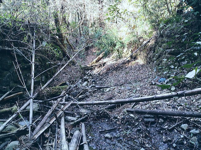 | 高尾山西面. 大垂水峠から旧峠道を抜けて.大垂水林道から大平林道と回り込み.城山東尾根から日影キャンプ場へ ・・高尾山周辺流域ToP 前回は南高尾山稜の中沢山の周辺にでている。今回は大洞山を横断し.高尾山の北側に回り込む。 旧国道20号から赤馬.新多摩線58号鉄塔と南高尾山稜を越え.大垂水林道から案下川枝沢に入り国道20号にでる。大平林道の起点からは登り返し奥高尾縦走路. 一丁平から城山東端の経路を経て城山北東尾根の446m点コブ北東尾根から日影沢キャンプ場へ降り.旧街道から国道20号の東浅川にに戻っる。 2025年03月26日.松村 R20号線.旧大垂水街道から津久井湖の県道515号線.赤馬へ 庚申塚.38号鉄塔を過ぎ南高尾山稜を横切り.4号鉄塔から大垂水林道の案下川支流左岸口 あずさ霊園からR20号線.大平林道起点を経て9号鉄塔へ. 一丁平から新金網道.城山の東経路抜け日影林道分岐へ 城山北東尾根から446m点峰南東コースで日影キャンプ場.林道終点と小仏川沿いに旧甲州街道を綴り.国道の西浅川 大垂水峠から旧国道20号.赤馬.新多摩58号.南高尾山稜.大垂水林道の4号鉄塔..案下川支流左岸径路.大平林道.奥高尾縦走路. 一丁平.小仏山東尾根.446m点東径路.日影キャンプ場.日影沢林道.3本杉.522mコブ北東尾根からするさし橋.蛇滝は時間の関係で諦める。 旧街道.日影にでて.旧国道を綴20号から西浅川へ。 大垂水バス停.8:583月26日(水).猛暑で朝方から腕を巻くってのシャツ姿・・猛暑26℃/9℃の寒暖差.強風.乾燥注意報.花粉に黄砂と五つの事柄が重なる。 jr御徒町6:43=6:49東京.快速:56=8:23高尾:25=8:34相模湖.神奈川中バス.¥320. :39=8:55大垂水bs. 日の出5:35自宅 新宿を過ぎての通勤ラッシュは今までの経験では立川駅までだったが先の西八王子駅まで延期されていた。 バス便は平日は午前中の2便.休日3便. 4月15日から中央線にグリーン車.二両が接続された。 先週.東京は積雪1cmを記録したばかりなのに3/24日は25℃と6月並みの夏日に.翌日か翌々日には靖国神社の桜は開花し.週末には満開に。 一日の寒暖差が激しく.一週間周期の激しさに悩まされている。 甲州街道.大垂水峠から旧国道を綴り.津久井湖々畔の里.赤馬へ バス停と国道を横切る歩道橋 渡った右上が南高尾山稜高尾山 定かではないが幼い頃.従弟兄弟に連れられ阿佐ヶ谷から高尾山に初めて登っている。我が子供達とは小学校に入学した頃に 親子で高尾山.陣馬山へと登っている。末っ子が高尾から相模湖まで歩いたのは丁度.国鉄からJRに変わった頃だった。その後.妻と朝のコーヒーをと コンロを持ち.2006年2月に頂に立っている。その折は薬王院にPをお願いするとまだ一台もなく無料。後に聞くと250台満杯で.一台¥1000とか。 この時が切っ掛けになったのか60歳を期に再び山登りを始めるようなる。殆どが泊まり山行だった為.東京近辺の低山は分らず.先輩の忠告を受け. 笹尾根に登り.奥多摩の概念をまず掴んでいた。高尾山.稲荷山尾根から三頭山へと。その後は「平成26年豪雪」の折.信州に行かずして. 自宅から1時間で積雪1mの高尾山で遊べるとカンジキを持ち小仏峠から南高尾山稜の末端へと歩んでいた。 近年ではコロナの影響を受け山行のチャンスを失い.改めて間近な高尾山を知ろうと大平.高尾.日影.蛇滝林道と高尾山を囲む4つの林道を囲むよう歩む。 高尾山南面の林道は明るく登山道を兼ねていた。反面北側の2つは片側が崖縁となるピストン林道で.旧道はあるものハイカーは殆ど入らず。 醍醐流域の山々と兼ねて歩む。最近では南高尾山稜の南面.三井水源林の名手赤馬方面を探索し.今回は旧国道20号を大垂水峠から入山している。 神奈川縣.東京府・境界標 国道20号線.甲州街道を少し戻る.9:07旧国道と現国道20号線 出口は峠の旧ラーメン屋の私有地.9:09左.窪溝が旧国道20号線の出入口 明神バス停 赤馬から今回の逆コースで旧国道から大垂水峠にでる時.或いは鉄塔尾根から南高尾山稜に登る場合には神奈川中バス路線の大垂水バス停の2つ手前. 明神バス停に下車する。以前高尾山を目指したときは峠1つ手前の宮ノ台バス停だった。明神バス停の裏からは赤馬へ下る踏み跡がある。 バス停に通う道のようで.はっきりした道が赤馬へと付けられているらしい。 暫くして津久井やまゆり園を真向いに見て.左の車道に入ると県道517号の終点に突き当たる。直進は今回下る旧国道への古道。 右折すると県道515号と交差し.向い角が赤馬バス停がある。左折し515号に入れば赤馬.庚申塔への道と繋がれている。 宮ノ台bsは過って高尾山を取り囲む4つの林道を歩んた折.下車していた。その先が峠で.少し下った所が大垂水バス停がある。 左.窪溝が旧国道20号線の出口 数分先で沢沿いに入り旧国道にでる.9:10少し戻る感じの峠ヘチ.南側に旧国道の取り付きがある。私有地を避け.左の窪溝から下り旧国道へ回り込む。 一度沢沿いに入る.9:12旧20号線・・本流右俣の奥の右俣.左岸道・・沢名は分からず。右俣の源流部分 ここで沢から上がり旧道に乗る.9:15旧国道20号線沿いの流域 南高尾山稜の西