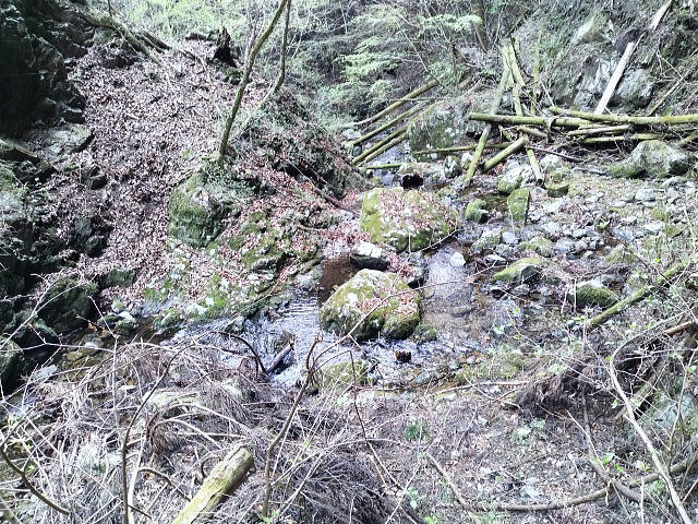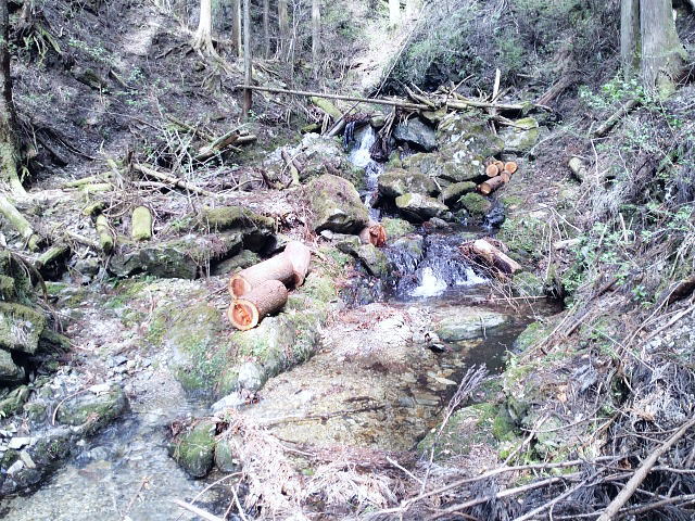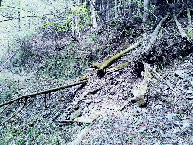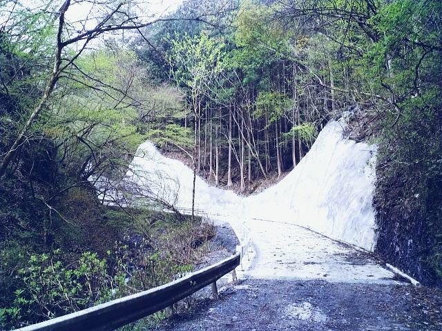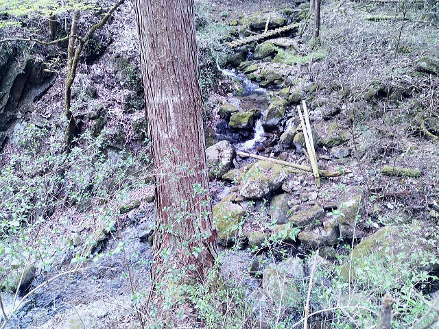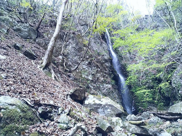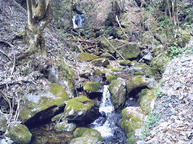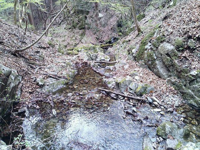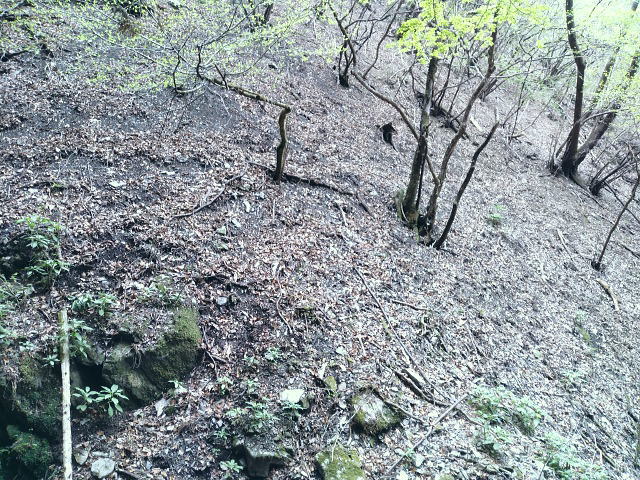 | 南秋川の南郷から矢沢.熊倉林道と繋ぎ.陸軍滝のアクシデントから熊倉沢右俣左沢の千ケ尾沢右岸尾根を経て熊倉山に立つ。・・笹尾根大ツイジToP 熊倉山南西尾根は尾根末端の聖武連山の手前.レイク相模CCで途切る黒田に降りている。最後はヒッチハイクで新井バス停. 2025年04月18日.松村 熊倉林道から右俣右沢の陸軍滝・・高巻きできず.断念 千ケ尾沢右岸尾根から笹尾根熊倉山 熊倉山南西尾根から標高758m峰へ南下 758m点から南西尾根末端の途切れた県道まで 檜原.新山王橋から浅間峠を越えた先に聳えるトヤド浅間からは檜原街道.京岳へ.以前降りたことがある。その手前からトヤト尾根(トヤド沢左岸尾根)の逆コースで 熊倉沢の源流へと右俣右沢とトヤド沢の出合に下り.陸軍滝に寄ってから矢沢から南秋川の南郷に降りる予定でいた。 陸軍滝のツメに不安が募り.前日に急遽.コースを改めて.難路の作業道を優先させ.熊倉林道からの逆縦走を試みる。 又下山のアプローチは浅間峠から棡原.新山王橋ではなく熊倉山南西尾根に変更した。そして15年前に登った熊倉山南西尾根を 今回は逆に南下し.黒田から県道県上野原棡原線・上野原丹波山線と繋ぎ.鶴川沿いの新井バス停にでることにした。 檜原街道.南郷バス停.377.0m.8:004月18日(金).曇後晴.5月並みの猛暑で5:00で8℃2m.14:00で24℃.17:00で22℃. jr御徒町5:31=5:35神田.快速:46=6:36立川:40=7:17武蔵五日市:20=7:58南郷bs.377m. 日の出5:01.自宅で バス料金値上げで¥770に改正. 五日市駅発数馬行の路線バスの乗客は疎ら.通勤.通学の小学生を降ろした本郷からはハイカー2名を含め4名が乗車した。 年配の方と名郷で供に下りている。その方は樵だった。直ぐ後で再び出会うことになる。 集落に向かい左上は万六尾根673m点コブ北西尾根 南秋川沿いの南郷の集落を抜け.8:06バス停前の坂道を下り右脇の谷間に出た所が矢沢と南秋川との出合 右上はトヤド浅間東尾根 南秋川矢沢橋と矢沢林道の起点.8:09矢沢橋を渡り教育の森を過ぎで振り返ると背に乗るのがここから見えるトヤド浅間東尾根. 谷間は矢沢.矢沢林道. 南方の新山王橋から旧道(林道)伝いに南北に横断する浅間峠を越え.トヤド浅間への分岐から810mコブから南東に延びるトヤド尾根を下り. 熊倉沢右俣右沢から陸軍滝に訪れる予定でいた。ただ難路の作業道を出来るだけ安全にと逆コースの登りに変えている。所謂.南郷から入山した。 矢沢橋を渡って直ぐ檜原教育の森前を横切る。振り返って教育の森の背.右後方の望めるのが.トヤド浅間東尾根になる。 過って数十年前に訪れた時はツメの林道界から分かれ.北面の下川乗に下りていた。 左岸の林道から矢沢のリトル雄滝.8:15二人の樵 教育の森を過ぎたリトル雄滝付近に一台の軽トラが駐車していた。矢沢二俣から熊倉林道のトヤド沢出合までの間の間伐を行うとのこと。 2人の樵に出会う。その一人が先ほど路線バスで一緒になった方。「上流の大滝を越え.浅間峠を越えると云うと。何処か分らぬらしい。 大滝? 20mほどあると答える。林道の山側の少し高み側を伐採し.倒木が林道に落ちることもある聞く。間近な所で作業するようだ。 矢沢林道のゲート8:21熊倉林道の起点から短いながら舗装された路面は昨年訪れた5月には改修工事が終えた後だった。 工事完了の姿を見て.ズーと奥まで改修工事が進んでいると思っていた。それが僅か数十m。車の回転用かも?その範囲に留まっていた。 そして今回訪れると.その先は改修工事が大々的に行われ.横切る沢沿いの崩壊部分を含め.私有地を含めた広場状の舗装大地を作り上げられていた。 又もうもう一度途切れて奥に 矢沢.矢沢林道の合流点 落合橋下の矢沢二俣.8:26足元は落合橋で.渡った左俣が矢沢.澤沿いには矢沢林道が綴られている。右俣は熊倉沢で.熊沢林道を合わせている。 又末端の二俣から延びるのが背陵の笹尾根から延びる長尾尾根になる。右に折れ熊沢林道に入る。 矢沢の二俣.又矢沢林道の熊沢林道への分岐 落合橋下左が連行峰から落ちる矢沢で.右上が熊倉山へ突き上げる熊倉沢。左上は中間尾根の長尾尾根. @改修1・・昨年5月以前 右俣の熊倉沢沿いの熊倉林道「林道で伐採しています。釣り人に注意して下さい」と看板が吊るされていた。未だ釣師に会ったことはないが。 昨年5月に熊倉林道に訪れた時は右俣出合の部分だけが短く舗装されていた。その奥は今まで通りのダートで.Uターンするための気休が? と思っていた。それが今回訪れて.トヤド浅間の南東に延びる732m点を擁する尾根の末端取付きまでの間. 崩壊していた林道が2ケ所供に大々的に改修され.それにしても林道幅は広く.明るい左岸道に変えられていた。 改修2・・新たに改修された林道 手前の改修された林道.8:29 舗装された広場状に膨らんだ林道.8:34 途中に新たな崩落もあるが.8:36A改修3 その奥も見事までに治されてた林道.8:393ケ所めは地形図に記載された沢名「熊倉沢」のT「熊」の頭辺りから側壁を含め舗装の工事は行われていたが.距離はやはり短い。 トヤド淺間の南
