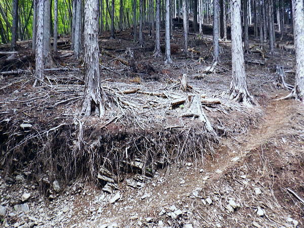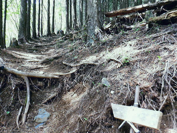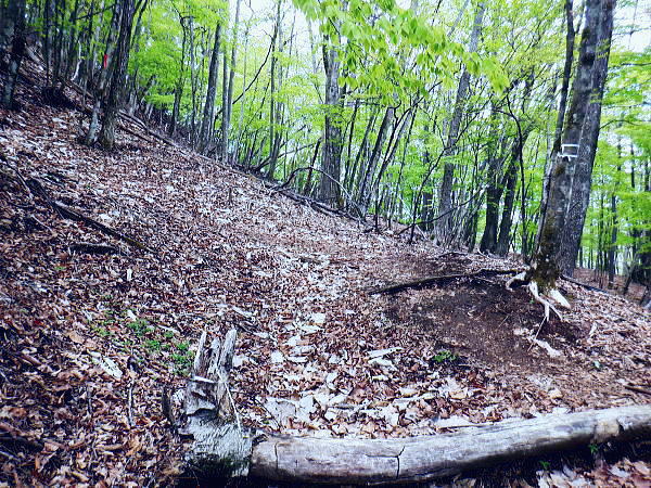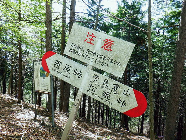 | 初めて路線バスからの鶴峠に下車. 奈良倉山から葛野川左岸尾根を下り三ノ森北峰から鋸尾根を下る。 ・・松姫峠から市界尾根-権現山稜Top. 葛野川と鶴川に挟まれた山域図Top 過って大菩薩嶺.牛ノ寝通り松姫峠に奈良倉山.に登り.小寺山と大寺山の間の背稜だけは欠けた形で縦走もしているが. 今回は出来るだけ繋ぐ形での入山を試みている。奈良倉山から佐野山.西原峠へと繋げ林道を分けてからは小寺山.大寺山と三ッ森北峰の山々へ 小菅鶴峠から鶴川右岸の市村界(大月.小菅)尾根の林道を綴り.佐野峠からは市界(大月.八王子)尾根へと繋ぎ三ッ森北峰へ 北峰からは鋸尾根を選び.七久保町瀬戸へと下り.小姓の県道杉平入口バス停にでる。 2025年05月04日.松村 小菅鶴峠bsから葛野川左岸尾根.奈良倉山と佐野峠・・バス時刻を勘違い 佐野山.西原峠から小寺山と大寺山 大寺山から大ダルミと三ノ森北峰 落葉深い鋸尾根を下る.カワパッバタ窪ノ頭から小姓の里 jr上野原駅南口バスターミナル.7:435月03日.曇後晴.晴れて猛暑で夏日.夕方曇勝ち jr御徒町5:55=6:00東京.快速6:13=7:21高尾.河口湖行.:24=7:40上野原.富士急行¥1200. 8:45=9:55鶴川峠.日の出.自宅 下調べしてきた筈が上野原駅8時15分発が30分遅れて鶴川峠には9時52分着と。普通行程でも松平バス停16時2分発には全く間に合わず。 コースは変更せずとも前半の西原峠までは歩いたことにある林道だったので為ペースを取り戻し後半の山道に余裕を持たせることにした。 後半の大寺山までは初めてのコースで時間を取るだろう。下山の鋸尾根も名の如く時間を費やすか分らない。要は後半に気を抜かぬこと。 2つの西原峠 17年前.2008年の師走に高校時代以後初めて寒暖激しい師走に雪積る大菩薩峠を越え.牛ノ寝通りを下り.猛暑となった百蔵山を登り返している。 その折.宿った松姫旅館の主人から.この周辺に2つの西原峠があるのを知らされた。 当時.前年に三頭山笹尾根を縦走している。その折近くに2つの同名の峠があることに気が付き.気になっていた。 笹尾根の「西原峠」とその西側にある中風呂から北東に登り坪山へ抜ける所に佐野の「西原峠」がある。 共に鶴川西原の集落を挟んだ峠路で.武州数馬から西原経由で甲州七保へ抜ける2つの峠路にあたり.同名の峠で不便はないのだろうか? 松姫旅館の主人は国土地理院に昔の峠名に戻すよう進言したと語っていた。 今の佐野峠が「旧松姫峠」.「小菅峠」で.後者の西原峠が「旧佐野峠」「小佐野峠」になる。旧佐野峠道の古道も残されていた。 今の松姫峠はR139が開通した折.山梨県知事が命名した経緯があり.又もや混乱を起こしている。 本来は佐野峠「旧松姫峠」から旧佐野峠道を下り.笹尾根西原峠を越え武州に逃避したと思われる。 又笹尾根西原峠も上野原町(現上野原市)が峠名を改名した経緯もあり.周辺の混乱は更に増している。 現佐野峠を挟んで2つの佐野山(1.260m峰と1.254m峰)があるのも可笑しかった。 松姫旅館の主人の話は筋を通せばガテンゆくと思えるが。「山と高原地図」発行元の昭文社にも談判したがなしのつぶせだと怒っていた。 地名の改名は昔からその当時の権力者により変えられてきた。今回も市長による改名となれば生かしではない。ただ丁寧な判断を求められていた。 佐野峠 峠道のコースは奈良倉沢の途中から奈良倉沢右岸の尾根に登り.奈良倉山にでて東尾根を十文字峠で横切ると市町界稜線の東面を殆ど 水平に巻いて「佐野峠」にでる。三角点峰(1.234.7m峰)から南へ派生するアシ沢右岸の尾根を下れば中風呂にでられる。 これが本来の佐野峠道であるがアシ沢右岸の道が急峻のため,いつの頃からか「佐野峠」から更に稜線を辿り,前述の西原峠にでていた。 アシ沢左岸の尾根を下るのがメーンルートになったらしい。そのため「西原峠」を「小佐野峠」と呼んでいたようだ。 中風呂の県道から葛野川の渓谷を渡ると民家が一軒あり.その左側に「左ちちぶこすげ道.右さいはら道」と刻まれた道しるべがある。 二つの佐野峠への分岐点を示している。どちらも地形図に破線が記されているが.左のこすげ道(アシ沢右岸の尾根道)の上部は 篤志家も音をあげる猛烈なバラヤブである。・・新ハイキング社.平成4年 葛野川と鶴川とを分ける分水山脈一帯を佐野山と言ったことから名付けられた名前だと聞いている。 同様の記述は「山岳第15年代号」の「多摩川相模川の分水山脈」・武田久吉・大正9年8月)にも見られた。 この辺の山を佐野山と概称することから起こったもらしい。 s54年に畑で仕事をしていた老人に「西原峠」のことを聞いてみた。「西原峠とはいわない。佐野峠だと。 昔は左の旧登山道を登った所が佐野峠だったが今は右の道を登った峠を佐野峠という」との返事だった。 「西原峠」という名は七保側の峠の呼称である。長作あるいは西原では何と呼んでいるか.なお調査する必要があるかも。 ・・新ハイキング社昭和58年.小林経雄氏及びHP「峠のむこうへ」氏より 奈良倉山.旧佐野峠道・・十文字峠.佐野峠.西