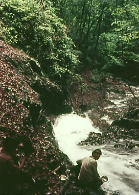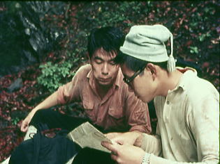 | 奥秩父.丹波川小常木谷遡行 s44年(1969年)06月21〜22日. L松村進(43卒)m見城寿雄(41卒)山田雅一(4) 出合から置草履ノ悪場.不動ノ滝 源流から岩岳尾根.茅谷尾根・・滑瀞出合 丹波川水系の沢 多摩川は奥多摩湖の西側奥の上流では丹波川と川名を変えている。お祭で後山川(うしろやまかわ)を余慶橋で小常木谷を合わせ・ 更に山上新橋で泉水谷を合わせて.オイラン渕の下で一ノ瀬川と柳沢川に分けている。小常木谷はこの界隈きっての人気ルートで 中流部の爆流帯は結構手強い。小常木谷の両側に秘める支流の大常木谷や大滝を秘める火打石谷も気になる渓谷だった。 7月上旬の剣岳山行を目の前に迎え.ザイルワークの習得を目的とした体慣らしを行う。場所は東京から近く.ある程度実働時間の必要とする所を選んだ。 小常木谷は一昨年に一ノ瀬川大常木谷を遡行した折.丹波から青梅街道を歩き.途中で見下ろした素晴らしい渓谷だった。 出合の両側壁に魅了させられ.沢登りの第一歩は渡渉から始まり.最後は増水した日没後の渡渉で終えている。栗山尾根の末端は火打石谷戸. 6月21日雨. 新宿=立川.青梅線=氷川(jr奥多摩)バンガロh. 行き当たりバッタリで青梅線の終点.氷川駅で下車。 できれば今日中に丹波まで足を伸ばす予定でいたが.最終の路線バスはとっくに出てしまていた。 駅前通りを左に折れ昭和橋を渡り.多摩川の対岸にある日原川出合の町営氷川キャンプ場に宿る。 高校時代.霧ヶ峰から八ヶ岳を縦走した折.初めて白樺湖でバンガロのお世話になっていた。着いて直ぐ夕立が激しかった覚えがある。 その時より大分狭く.僕等が占領したバンガロは川沿いの2畳程の小さな掘っ立て小屋だった。 裸電球はあるがラジとローソクで遅い夕食を済まし.寝るつもりが目の前に置かれたアルコールに勝てなかった。 山の酒ほど旨いものはない。寝たのはやはり午前2時を過ぎていた。 栗山尾根は飛竜山に南から突き上げる尾根。この尾根と.南東から突き上げるミサカ尾根と.南西から突き上げる岩岳尾根とを合わす前飛竜はジャンクションピーク。 更に前飛竜から飛竜山に続く稜線には.東から長尾根が.西からは岩岳尾根の北側に御岳沢を挟んでワラズ尾根が突き上げている。 栗山尾根の末端は火打石谷と小常木谷の出合になる。つまり.余慶橋の架かる丹波川から嵯峨昇支流の滑瀞谷が二俣になった地点。 小常木谷出合〜大滝 遡行図T・・左岸尾根が栗山尾根.挟んで火打石谷.その先は熊倉尾根丹波川水系で一番人気の沢が.この小常木谷。一ノ瀬川の大常木谷と並び双壁をなる。 中流部の置草履ノ悪場と呼ばれる爆流帯には.10m級の美しい滝が連なり遡行者を魅了する。 6月22日.小雨後曇 氷川バンガロh1 7:00.西東京バス=余慶橋一小常木谷出合.丹沢川渡渉8:15 丹波川と小常木谷出合 余慶橋より少し上流の滑瀞谷出合へ下る石段を利用.止まぬ雨で濁る本流と右.出合.丹波街道より 滑瀞ノゴルジュ |