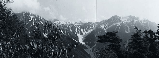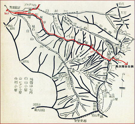 . ,長次郎雪渓.熊ノ岩幕営地 右.八ツ峰上半と左.右股 , |