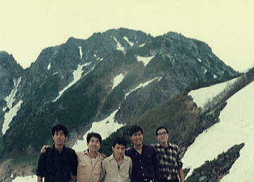 | 静かな初夏の剣岳早月尾根. s44年(1969年)07月02〜06日 L松村進(43卒)sL山田雅一(4)m見城寿雄(41卒)松本雅夫.中沢康.飯田哲夫(2) 裏剣岳 見城先輩の希望を含め剣岳へ。最初の計画では私と現役の山田君と3人で池ノ谷から北方稜線を越える積りでいた。 先月20日過ぎに奥秩父小常木谷を遡行し.トレーニングを勧めていた。 それが学内闘争で部活動は全て中止され.RHCの秋合宿が中止. 現役の山への参加希望が多く.剣岳池ノ谷山行を諦め変更する。 改めて入山は裏剣に望むべく馬場島から早月尾根を経て欅平まで下る下廊下の下降を企画する。 ただ長次郎雪渓で滑落事故を起こし.それでも予定どうり2日目は熊岩に天張ったが.集中豪雨の予報をキャッチし シュラフを抜け出し夜半真砂沢出合に逃げている。それ故黒部川下廊下も断念.黒四ダムから直接下山する。 馬場島―剣岳早月尾根―長次郎谷雪渓―真砂沢出合―内蔵助平―御前沢出合―黒四ダム 7月02日.上野= 3日.富山=上市=伊折=馬場島一早月尾根2400m地点c 4日.c1一剣岳長次郎雪渓熊岩 仮c2一剣沢真砂沢出合c 5日.c2一内蔵助平一黒部川御前沢出合.棟上げ御前小屋c 6日.c3一黒四ダム=信濃大町=新宿 7月02日曇. 上野20:40= 3日快晴. 5:09冨山.富山地方鉄道5:35=5:55上市.富山地方鉄道バス7:30=8:35伊折9:15バス =9:40馬場島9:55 伊折部落 始発の上市経由宇奈月行列車に乗ったにも関わらず.乗合バスは上市を8時半に出るとのこと。 それ故最奥の部落.伊折まで足を伸ばし.馬場島行バスを待つことにした。 降りた伊折のバス停前は朝方から強い陽射しを浴びていた。高みに神社がある。 木陰を求め鳥居を潜った石階段でゴロゴロ横になり.馬場島行の乗り換えバスを待っている。 でっかい図体の男どもが社殿への参道を塞ぎ.通う人が居ても奥へは入れなかっただろう。 幸いか.それらしき人が通らなかったから良かったようなものである。 伊折の停留所から望む裏剣岳は想像通り豪剣そのもの岳を現わしている。 大窓.小窓.三ノ窓と遥か彼方の剣岳に異国の岳を連想させ.山稜は大きく鋸状を描き参道から眺められている。 又.この眺望を煽るよう萱葺き屋根の家屋が谷合いに溶け込み.奥深い伊折の里を漂わしていた。