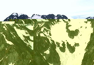![]() 立山川源流2400m手前早月尾根から剣御前.右奥大日岳.鞍部室堂乗越 |
