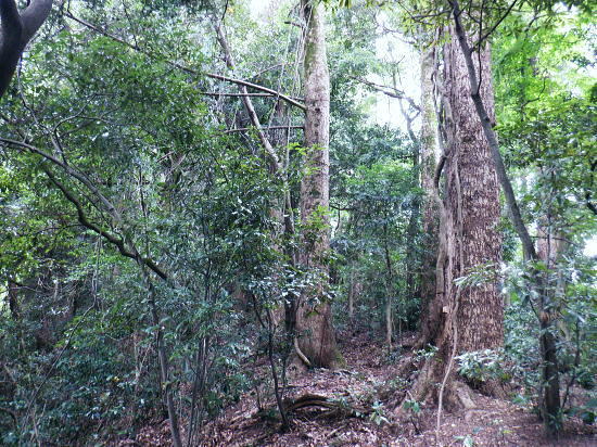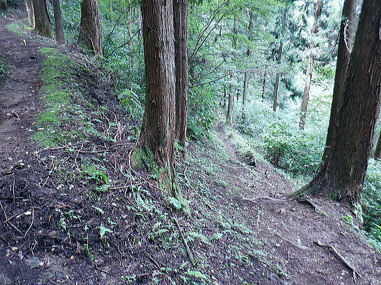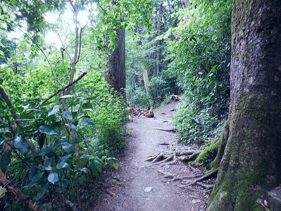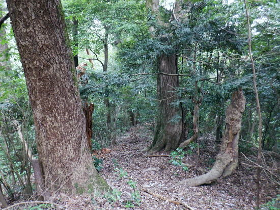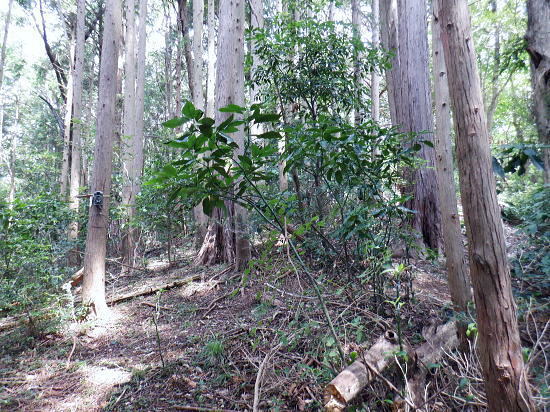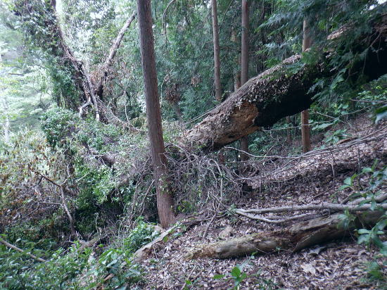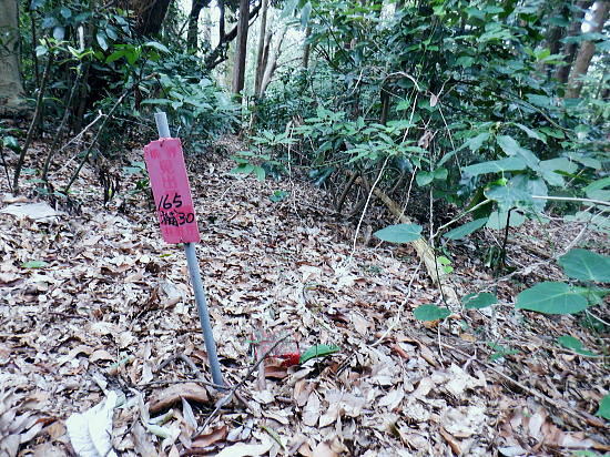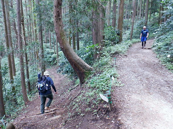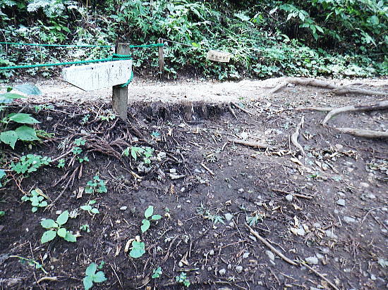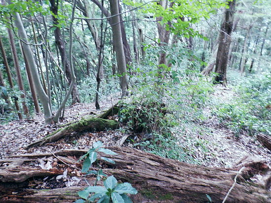 | 白沢左俣の(F)から電柱道を詰め城山にでる筈が.勘違いし右俣に入り難渋.引き返し直接日影林道を下ることにした。 萩原作業道は通行止で省く。その先のコースは変更せず.逆沢作業道を登りに使い.高尾山北東尾根から日影沢林道を横切る。 日影乗鞍北尾根を詰め.南尾根を下り.白沢右俣で難渋し.逆沢作業道の取り付く 逆沢作業道から高尾山北東尾根を下り.日影沢林道と交差・・萩原作業道は通行止 其の儘林道を横切り.北東尾根末端から小仏川遊歩道を経て.案内川と小仏川の出合 逆沢作業道 作業道下部取り付き360m.10:08一昨年の正月に蛇滝経路から「大見晴」にでて逆沢作業道を降りていた。 その時はここから日影乗越を越え小仏へ下る筈だがトレーイング不足が祟り.足が上がらず.大事を取り諦めている。 偶然だが今回は小仏から逆コースで日影乗越越を達成させている。ただ前半では当時と同じような経験をしてしまっていた。 水分の紛失と白沢二俣の選択を間違いたことで城山越を諦め.割愛し直接逆沢作業道の取り付きにでていた。舞を踏むことになる。 当時と比べ一年ちょっとの違いだが白沢の丸太は古く.本数は何本も抜けていた。見るからのボロボロの貧弱な丸太橋だったが. ここまで変わるかと.思うほど変わっていた。・・古い丸太橋. 写真右上角に欠ける作業道標柱が立っているのが半分撮されていた。逆沢作業道.幅員2.0m.延長899m」が立つ。又「郵便道/標高360m」. 標柱の脇を折り返して奥高尾縦走路の巻道にでる.10:10日影乗鞍 一昨年の正月.13時半頃.逆沢作業道下りながら撮影オー高くなった。左下にちらっと見えるのが日影林道で.大きくZ字に折れ下っている。 この時は下部から日影沢を渡渉して.城山東尾根を乗り越え.今回と反対に小仏へ下る積りでいた。その折の写真. 中腹で更なる折り返し地点.10:38左は奥高尾縦走路の北側巻道へ.右下は日影林道. 奥高尾縦走路の上部 縦走路北側の巻き道にでた上部の取付き.10:40 逆ノ沢作業道と北側巻き道.の分岐10:40Uターンして高尾山方面.もみじ台下部と郵便道の分岐540m. 逆側の小仏城山方面高尾山 六差路から久し振りに訪れた頂の混乱.11:25薄日の差す六差路の木陰のベンチ.もみじ台の分岐で昼食を摂る。妻のお茶漬け.バナナ.オレンジ.短羊羹. 六差路からは大見晴園地にでて.往来の激しい頂へ。.裏側の4号路へ入り込む。・・明治の森高尾山国定公園. 頂を越え逆側の4号路を選び下る.1:32何年も経たぬ内.新しい「4号路の看板」があるり.左に山頂をスルーして5差路に降りれば高尾山北尾根の取り付きにでる。 ここで水分を紛失して.自動販売機で水を求めるも.高校生2人組に.直ぐそばの水場を勧めれてた。旨い水で冷たくタダ. 女の子がホットを差しだし.「どうぞ!」と。呑まずに礼を述べ.販売機ではなく.水場に直行した。以外と冷たく美味かった。 北西側の4号路.11:35h 「いろはの森コース」と交差.と真新しく整地されたベンチ群.11:48先は途切れた高尾山北東尾根 みやま橋に下る4号路を分け大見晴へに入る。1:49①.ここも新たに整備され先の作業道口は閉鎖され.手前にはテーブル等改善されている。 昔の登山道は閉鎖されている。一昨年訪れた時はロープが1本長く張ってあるだけの広々した所だった。 背丈の高い柵で跨げず.潜り抜けている。前回訪れた時は玉虫の収集家と出会い.擦れ違い大見晴から私は外回りで六差路にでている。 右の登山道は4号路からみやまの吊り橋へ。 「大見晴」北東尾根 2025.08.09.左に延びる尾根は高尾山からの510m圏コブ北西尾根. 北西尾根の末端は23年8月にカツラ林遊歩道から日影沢林道の三本巨杉に直接入り.金比羅台尾根二又の右支尾根.「きらぼしの森に降りている。 その折に林道から北東尾根の末端を経て降りられそうな尾根を2本見付け.今回東隣りの劇尾根から湯ノ花梅林へ降りることにした。 ➁.北側の作業道・・高尾山北東尾根 更に北東尾根へ直進する.11:50高尾山の頂を踏み4号路から再び藪山に入る。以外に思ったのは蜘蛛の巣を少ないこと。灌木の雑木の中.細かくとも起伏の少ない平坦地に入ったせいか. 午後になった為か? ハイカーの往来は殆どない筈。過ってここで金集家と会っている。それ以来は常に独りでの尾根歩き。少し満る先で大見晴にでる。 麓は広く植林帯に覆われているが.ここはまだまだ自然の姿が残されていた。 ⓷.大見晴522.0m 522m圏と過っての道標.「大見晴」11:53大見晴に係わる全体の経路番号は見出標の「165番」.経路点は補のそれぞれの番号になる。 「見出標165」は大見晴付近の経路面を指し.「補39」は経路点の番号. 旧登山道のメーンルート 大木の下には昔の道印「大見晴」が其の儘備えられている.右手は千代田御荷尾根を分ている。大見晴東尾根.「見出し標165」を下ると参道と.蛇滝林道へ。起点には「蛇滝コース」の取り付きがある。 登山道にでて.蛇滝林ースからケーブルカー上の一号路と合わさる。或いは水行場参籠所.を抜けて吊橋から4号路に至るに合わさる。 又先程の封鎖された広場の