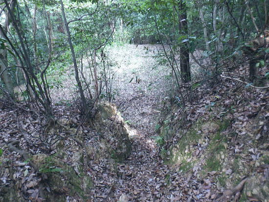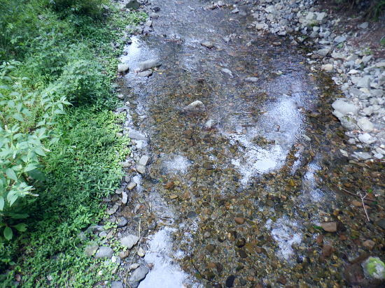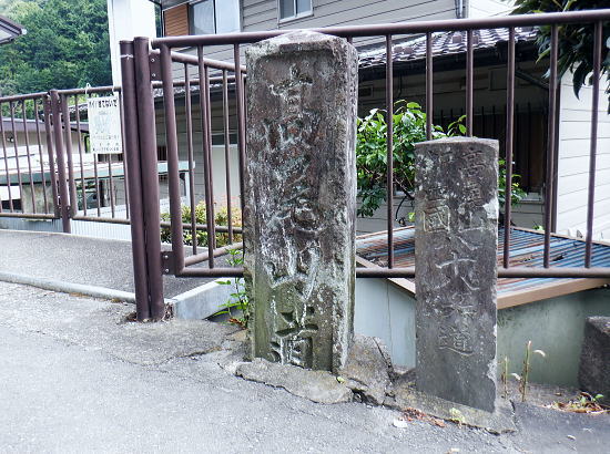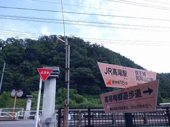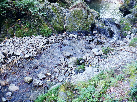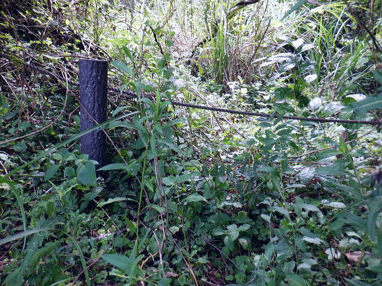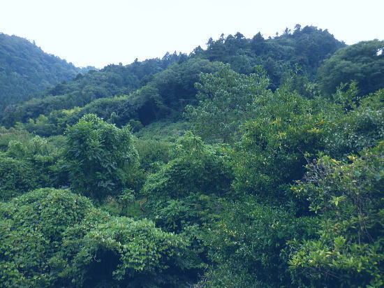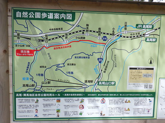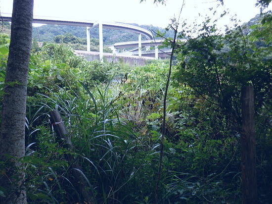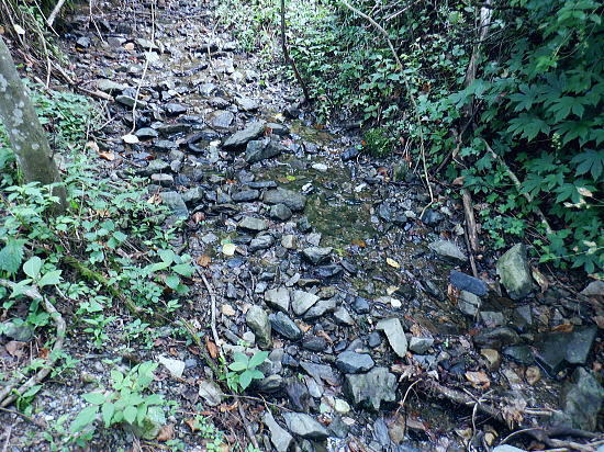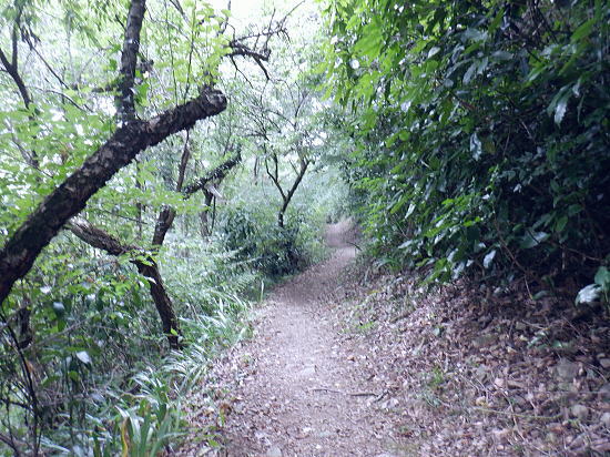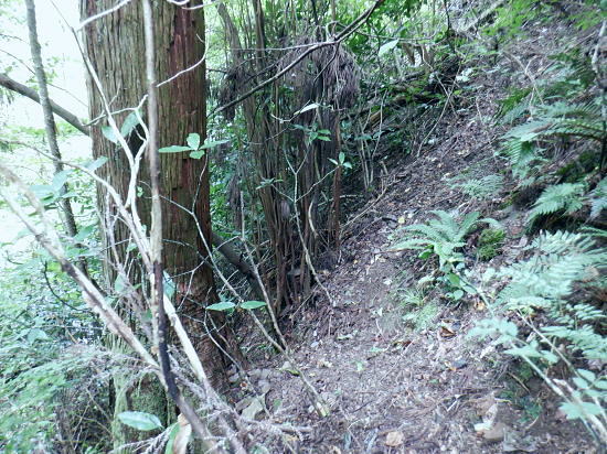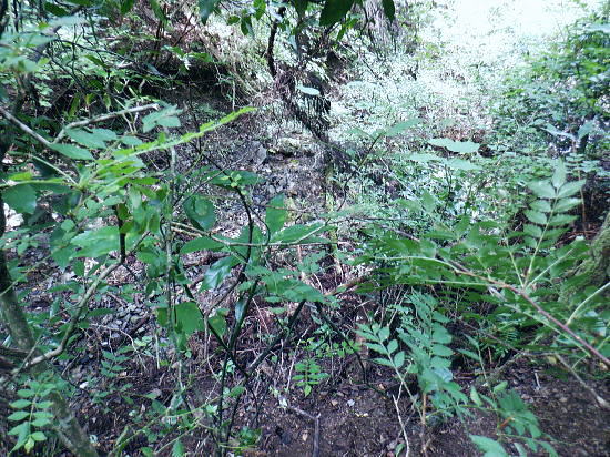 | 522m点峰北東尾根を綴り.更に林道から旧街道へ。 林野庁の幾つのも横切る作業道を合わせ.日影沢林道の300m圏北東枝尾根へ降りている。ここからは湯の花梅林へ猛烈な藪絡みの斜面に突入。 藪絡みで視界は不良.短いながら藪枝を掴み掴み必死に下るのみ。清明園の裏にでる。 日影乗鞍北尾根を詰め.南尾根を下り.日影沢右俣で難渋し.逆沢作業道の取り付く 逆沢作業道から高尾山北東尾根を下り.日影沢林道と交差 其の儘林道を横切り.北東尾根末端から小仏川遊歩道を経て西浅川・・日影沢林道.jr高尾駅北口 J.高尾山北東尾根 旧登山道を下り.日影沢林道の300m圏広場にでる.12:48K.300m圏広場脇の林道標碑 横切る日影沢林道350m圏広場の東側.12:49この先で小沢を渡った所は日影沢林道の終端(地図の黒線端)で.先が440m圏からの稲荷尾根の分岐点.越え. 下れば稲荷神社の境内から蛇滝の参道に降りられる。林道からの山道は旧登山口. 初めて通った時は以大分荒れていたが.改めて作業道として改修されていた。 千代田御荷尾根 標碑から東方を見上げる.12:49背の稲荷尾根を越えた裏側の稲荷大明神の参道を降れば水行場参籠所へ通行止めの車道と. 蛇滝林道の起点で「蛇滝コース」の取り付き分岐地点がある。 日影沢林道の広場 下った林道を横断しを蛇滝口へ.12:50短いがここからが荒れた台地の本番になる。地形図を読むと林道から下ると右に少し膨らむ支枝尾根が延びている。 それを気使い少し左寄りの中央寄りにルートを取る。右脇に踏み跡らしきものがあるのは分かっていた。 尾根筋は次第に劇傾斜の一辺倒の斜面になった。下藪絡みの長い下草の斜面で.視界は数m先の藪絡みを見るのみになる。 立木は少なく.劇山腹を下る支えは少ない。一番近い立木に次の足場を求め.枝木を束ねては次の支えを求め這い下る。足元は不安的に尽きる。 一歩.一歩.足を止めては先を見て下っていた。 踏み跡らしき斜面を見付ける.が12:51L.沢沿い 230m圏.沢沿いの細い流水を渡渉.13:19ほぼ一定の側壁のように見下ろす土壁の生い茂る先に小沢にでる。振り返ると降りた左脇上に踏み跡らしきものがある。 ここが林道からのルートかも知れない。左岸に渡ると薄いあるか.無きかの附に跡が綴られていた。 左岸の踏み跡へ.13:19直ぐ傾斜は落ち.猛烈な下草の茂みに入る。 少し左岸側を進み.河原に降りた感じの斜面を下る.13:19河原・・湯ノ花梅林周辺〜蛇滝口 河原状は猛烈な藪と雑草帯.13:30M再び涸沢を横切る. 左岸から明るく開かれた河原へ13:31八王子JCT 藪絡みから目線から八王子JCT.13:32左前方の樹間の隙間から八王子JCTが眺められた。 N.清明園の境界ロープ 清明園の裏側に入る.13:35足元は相変わらずの藪のジャングル. ただ途切れて踏み跡らしき空地を抜けると藪絡みにロープを見る。恐らく清明園の裏境の印だろう。 広い意味で小仏川流域に入る 藪を抜け出た清明園園内の私道へ.13:36八王子JTCから陸橋.高尾山トンネルと潜り高尾山ICへ. O.清明園 清明園のとするさし橋.13:40千代田御荷尾根の末端から降りてきた北東尾根 旧街道の湯の花梅園より.13:45.13:43P.北東尾根末端は湯の花梅林に降りていた 湯の花梅林に降りている.13:44左上の尾根筋と云うより山腹の側壁から谷間の沢底へ降りる。 谷底の小沢へ.230m辺りに左上の崖壁から劇下降した。後は左岸の踏み跡を辿り.園内から湯の花梅林.旧甲州街道にでる。 Q.旧街道.蛇滝 .蛇滝参拝道の入口で.奥に小仏川遊歩道があり.13:47 蛇滝の案内板.入口から小仏川沿いの遊歩道〜jr高尾駅.13:49小仏沢沿いの散策路 橋上から小仏川の河原.13:52「きらぼしの森」 小仏川右岸の散策路.13:55右岸に橋を渡ると「きらぼしの森」の看板が目に付いた。企業の森(八王子.裏高尾).協賛社はきらぼし銀行とある。 昨年.高尾天満宮の先でも見付けたが.この辺全体の小仏川沿いを呼ぶ言葉らしい。 午後の山陰に入り.木陰の散策路は抜ける間.誰一人会う人もいず。ゆったりした気持ちで山を降りられた。 気象庁は明日から都心は2日間の雨の後.再び今年は長い猛暑日が続くらしい。 高尾天満宮 高尾天満宮.13:57伊能忠敬が地図調べを終え九州からの帰りに駒木野から高尾天満宮を経て薬王院から高尾山に登ったと伝えられている地点。 高尾天満宮を挟み2つの小尾根が蛇滝林道へ抜けている。右に折れ.蛇滝のコースから歩んだのだろうか? 金比羅台北尾根の東側支尾根 支尾根は見た目より激しい足元の崩落と展望.14:00足元脇に「きらぼしの森」の案内板がある. 小仏関跡付近の橋上からの流心 小仏川の上流側で.仏関の手前で左岸に渡る.14:0.7 下流側.14:08金比羅台への落合からの「高尾山むかし道」コース 小仏川左岸の出合手前の落合地区.14:19左岸の駒木野庭園脇 国道20号手前の自然公園歩道14:20 大椚田橋脇の案内板出口.14:21西浅川. 初川の金比羅山と東高尾山稜の北側末端 国道20号線大椚田橋北詰.標高180.1m.14:22大椚田橋の向かい下が案内川と小仏川の出合. 今回は久し振りに大勢のハイカーやトレーナーに出合ッている。コースとして林道.登