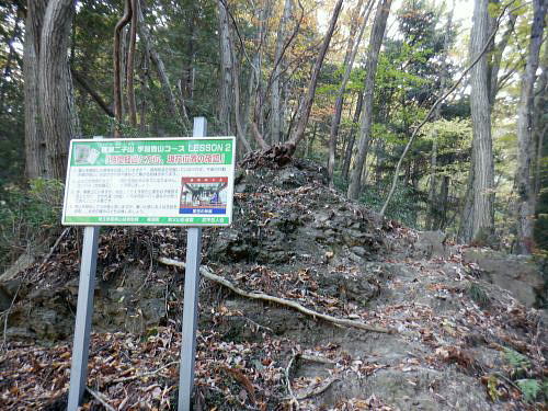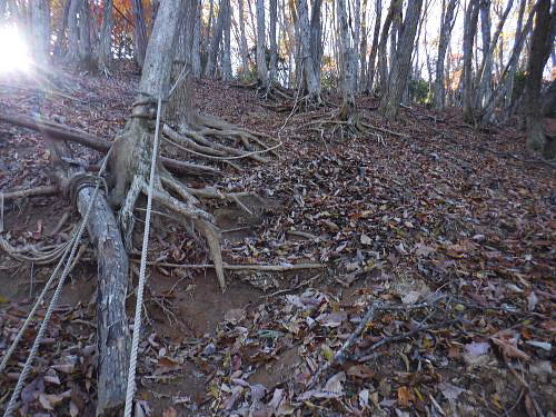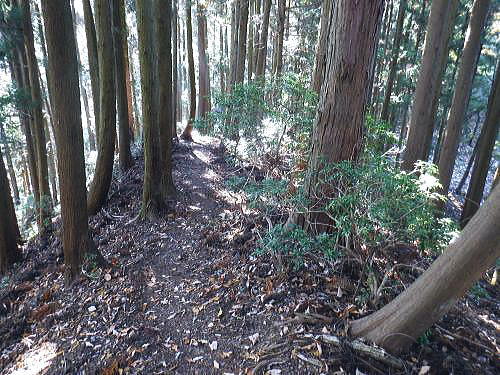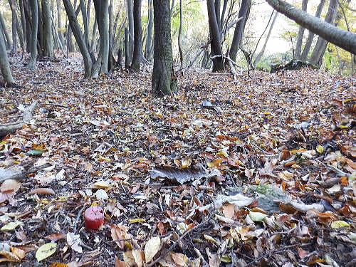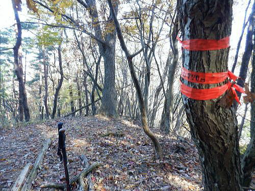 | 二子山から旧正丸峠を目指したが山中のトラブルで改めて回想の正丸峠へに立つ・・伊豆ケ岳周辺TOP・・奥武蔵山地TOP 芦ノ久保駅から兵ノ沢右岸尾根を詰め大平から二子山を越え.焼山沢右俣左岸尾根を下り林道起点にでて.旧名栗街道から追分へ。 秩父住環で「旧正丸峠」越をし市道を横断.峠ノ沢から八坂神社へ下る予定でいた。それがトラブルから川越山北西尾根を詰め.「正丸峠」にでる。 正丸峠ではありがたいことに国道までヒッチハイクを勧められ.正丸駅へ降りている。 2025年11月17日.松村 芦ノ久保駅から兵ノ沢右岸尾根を経て二子山雌岳・・再び懐かしい正丸峠へ 雄岳から焼山手前.790m圏コブ焼山沢右俣左岸尾根を下り焼山林道ゲート 林道起点にでて旧名栗街道に入る手前で迷い.清水沢から川越山北東尾根の600m圏の壁下にでる 川越山に立ち.正丸山.正丸峠=国道の正丸トンネル東詰から西武正丸駅 登山ブームに乗り.高校に入学し初めて企画したのが1963年05月の同級生登山。奥武蔵の暖かくなった春先の懐かしい地名の台地.正丸峠. 伊豆ケ岳から武川岳を訪れていた。西武池袋線の終点.西吾野駅から入山し.伊豆ケ岳から武川岳を経て妻坂峠へ。 入間川(名栗川)沿いの名郷に下りている。 2度目の伊豆ケ岳は大分経ち昨年3月に西武秩父線の正丸駅から高麗川沿いの森坂峠を越え伊豆ケ岳東尾根に立つ。 後はむかし歩んだ山道を名郷まで丁寧に綴っている。又翌月には下山途中で「ウノタワ」と云う言葉を聞き.その言葉に憧れ. ウノタワ―横倉山.大持山西尾根を下り川俣に下りている。長沢脊稜と挟まれ山域は何度か訪れていたので.懐かしい思いもしている。 高麗川の広い河川丘陵の先に聳える山並は左手から有間山.棒ノ小屋ノ頭.滝入ノ頭. 飛んで中央から右手に回り込むと今回目指す山々が連なる。前武川岳.武川岳.蔓岩山.焼山.二子山の山域 11月17日(月).朝方は前日より冷え込み快晴で西高東低の気象配置. 今朝の最低気温は7時で3℃.8時で7℃と予想され.1時間遅らせ出向いている。日没は16時38分で少し行動が遮られるかも。 jr御徒町5:32=5:50西武池袋.準急飯能行6:04=7:00飯能.秩父線.芦ケ久保:13=7:55芦ケ久保314m.乗換え2回.¥900. 日の出6:17.石神井公園付近 所沢で朝陽が昇る。車窓には流れる住宅台地は広く.覆われた紺碧の空に陽は大きくオレンジ色に煌めき輝きだしていた。 稲荷山公園を過ぎると陽差しは車内にも明一杯に陽は差しだした。駅に停車する都度.扉の隙間から忍び込む冷気が身を震わせた。 開けた後は再び閉まりフリーになり.外にでられると放送されていた。寒さを誘っている。 列車は過って聞いたことのある言葉の駅名を幾つも通り過ぎた。秩父線に入ると懐かしさが募る昔の駅名に変わっている。前方には秩父の山々が。 飯能を過ぎると10両から4両編成に変わり乗客は1/3ほどが埋めていた。ポカポカの暖房に暖められた車内は上着を必要としなかった。 秩父線に変わり.車内のドアは駅に着くとフリーに変わっている。もうシーズンは冬に。 芦ケ久保丸山南東尾根(矢越尾根) 秩父線.芦ケ久保駅 駅前広場.右脇がトイレで道標「二子山.武川岳→」があり.更の先は「道の駅 果樹公園あしがくぼ」が並び.直進した。 細く歩みずらい畔のような所を抜けるとその先で左に抜けるガードトンネル口を見出している。 トンネルを潜り.小沢沿いに南側に延びる小尾根に乗り.兵ノ沢右岸尾根の分岐にでる。岩菅山から北西に延び横瀬川本流と兵ノ沢出合辺りに没する尾根。 尾根末端の2つの小コブの先の鞍部に分岐があり.大平への踏み跡と兵ノ沢沿いの登山道に下る。道標はない。 トンネル口に並ぶ右脇の道路を進めば富士淺間神社の参道.淺間尾根の取付きにでて鳥居があり.兵ノ沢左岸の浅間山(三角点600m.三角山.昼山)へと登る。 二子山雌岳に直接突き上げている尾根で.又尾根末端は「あしがくぼの氷柱」の為.その時期には通行止。 兵ノ沢林道を進めば国道299号線に突き当り.横瀬川兵野橋にでる。向かいは「果樹公園あしがくぼ」。 あしがくぼの氷柱 浅野尾根の下りで最後.「あしがくぼの氷柱」のイベント以外の時は道幅は狭く.落葉は深く.散水用のホースを握り.ヒアヒアしながら登り降りする所らしい。 大平.兵ノ沢右岸尾根 掲示板には「横瀬二子山.学習登山コース. 時間経過と方位.現在位置の確認」と注意書きがあり.脇に里山の神楽の写真が添えてある。 肩書が凄い.埼玉県警察山岳救助隊.横瀬町.秩父山岳連盟.武甲岳人会とある。 左上が岩菅山兵ノ沢右岸尾根の取り付きで.右奥下へ降りると兵ノ沢沿いの登山道に入る。「ハンターにも注意」とある。 猟だけでなく周りを見ろ!と云うことか。 530m圏で尾根上に大岩が居座り.直ぐ上にも大岩があった。 赤テープ「アセビ尾根」 自然林が占めると低木のアセビ生い茂り.群れになろことが多い。 510m圏の尾根が平坦になった辺りには小さな赤帽コンクリート杭があり。 日向山と丸山 朝方駅のホームから仰いだ山並み・・遠くの山並みは群馬県の御荷鉾山あたり 