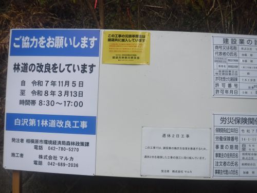 | 景信山西側の水平経路に係わる砥石沢流域の3本の支尾根.支沢をを綴り.中沢出合にでて底沢白沢川へ下る。そして底沢の里へ.神奈川県側に立つ。 小仏bsから小仏峠を経てヤゴ沢ノ頭西尾根540m圏.十字路 砥石沢右俣から白沢第一林道へ下り.中俣を通過して工事現場の左俣 左俣の左岸尾根から水平経路650m圏にでて.砥石沢の中俣左俣右岸尾根を下り左俣出合 白沢第一林道の起点からのアプローチは白沢川沿いに国道.底沢へ.平野bs=jr相模湖 向かい正面が白沢第一林道ゲ^ト. 山中でのハイカーは巻道から峠路にでた所で2人の中年女性と出会い驚かしている。それから景信山西側の水平経路に入るも人影はなく. 砥石沢流域の支尾根でも居ず。林道の改修工事現場では1名の係員にあっただけで下山している。 しいて言えば国道.底沢手前の中央高速で拡張工事に係わる警備員は3名と出会い.旧街道から国道を歩み平野にでた。 林道工事は3月中旬までの予定で中俣口まで舗装を含めた改修工事が行われている。 底沢白沢川. 前回は北久保ノ頭492m西尾根の末端.二又の北側の枝尾根を降りている。 桂林寺正面の反対側に落ちる南側の枝尾根を詰めれば北久保ノ頭にでられる。こちらの方は踏み跡がある。向かいのベンチ屋根は取り除かれていた。 白沢橋を渡り.正面が栃谷坂沢林道 左から林道口.正面が国道の底沢bs.右は中央高速道の工事現場へ. 新多摩線66号鉄塔 右方が461m点三角点峰に建つ65号鉄塔がる。 新多摩線67号鉄塔 小仏城山の南支尾根群 小原宿を通過.北相中学校手前で一休みしていると路線バスが.目の前の平野バス停に停まり.何となく乗車する。 駅まで歩きて5分ほどの距離. 陽は高い。 14:16砥石沢中俣出合―14:15国道底沢bs―平野bs15:16=jr相模湖 jr相模湖.中央特快.15:52=16:49新宿=大江戸線.日入17:00. 砥石沢流域周辺の概念図 小仏峠から西側水平経路とヤゴ沢ノ頭西尾根の十字から砥石沢右俣を下.左俣を上.水平経路から中俣を下り.白沢林道起点にでてR20号線.底沢. 砥石沢流域概念図.登山道明細図景信山・・シリオブーツ.22.232歩 テルモス400cc.お茶500cc.日清カップヌードル.シチキン.妻のカツ.野菜サンド.オレンジ.バナナ.饅頭 1/26日. 都心の雨量は12月で0.5o.1月は0.0oで一度も降らず.1945年以来30年ぶりになる。気圧配置は「西高東低」. シベリアからの季節風で都心では日本有数の乾燥地帯になる。又表日本では中小のダムで貯水量0が増加.節水を呼びかけている。火災に注意. 小仏bsから小仏峠を経てヤゴ沢ノ頭西尾根540m圏.十字路 砥石沢右俣から白沢第一林道へ下り.中俣を通過して工事現場の左俣 左俣の左岸尾根から水平経路650m圏にでて.砥石沢の中俣左俣右岸尾根を下り左俣出合 白沢第一林道起点からのアプローチは白沢川沿いに国道.底沢へ降り.平野bs=jr相模湖 |