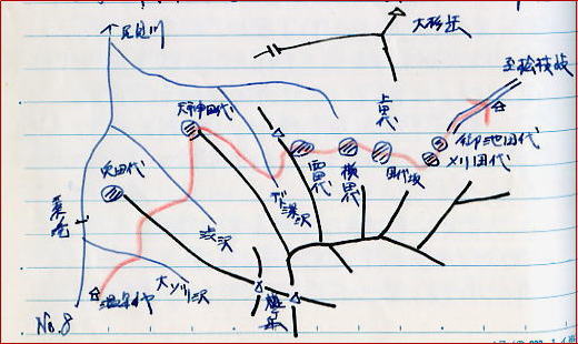 | 車窓 南北に細長い町並は直ぐ田園に変わり.田圃は黄金の穂を棚引かしている。 路線バスは駒止峠を遡り.沢沿いを登って行く。谷間と呼ぶより山間の窪地と云えそうな緩い長い坂。 道筋には稲の干し柱が組まれ.既に稲刈りの始まっている所も多い。 駒止峠に差し掛かると急坂のつづらとなり.車内に流れる相撲放送はよほど注意していないと聞き取れなくなる。 雑音が甚だしく.ワーと言う歓声に行司が立ち.一層激しくなった拍手で勝負がついたと思うのみ。 どちらが勝ったのか? よく聞き取れぬ力士の名.暫しラジオの声は割れる音がした。 男性車掌の優しい声と共にバスは再びつづら折りでうねり始める。 急カーブのジグザグが続き曲がる都度.車は停まってしまいそうな程スピードを落とす。 二度ばかり大型トラックと擦れ違った。その折は停まり停まりの運転で交差した。 睡魔 山間.谷間と変わる車窓に視野が広がる。 澄み切った山気は会津の藪山を些細に見せ.秋色とりどりの雑木林が美しい。 私は知っている限りの山を浮べてみたが.何処の山も確信を持ち答えることはできなかった。 そして幾度か山間を縫い睡魔に襲われる。もう山も畑も夢の中に。 彼に揺り起こさせた終点.会津田島駅に着いた時.外はすっかり暗くなっていた。 闇に包まれた駅前は広場のような大道りが走っている。 御池→桧枝岐川)=桧枝岐=内川(→伊南川)=会津山口小屋川←駒止峠→檜沢川)=会津田島 山口.田島付近を除き全ての道は未舗装.裸土の道である。会津の山々Top 車窓 帰路も夜行となる。夜旅になった列車は会津線に沿った大川ラインを下る。 視界は闇の中.猪苗代瑚々畔沿いに走る磐越西線は層雲に覆われているようだった。真っ暗闇で湖畔も臨めずにいる。 列車は暗い夜道を磐梯.那須と回り込み.ただ一筋に板東平野へと向かっていた。 それがあってか? 郡山に入り層雲を切って.昨日と同様に月は明るく美しい夜空を造りだしていた。 小さく霞んだ星に月が煌き飾る。 月の光がウロコ雲に反射し.雲の切れた暗い青空を冴え渡らさし始めていた。 もう空は冬の装いを一層早めている。 彼 彼こと田沼は私と同期で高校時代に早くも柔道二段を取り.がっちりした体はマタヤンの愛称で親しまれている。 一年の初冬に入部した彼は.まだ入部して土を踏んだ事がない奴だ。などと云われていた。 ヘミニシトでありロマンチストの彼は.彼の甘えも控え目に出るのが面白い。今はもうすっかり山に惹かれしまっている。 先々と続く春の連休はビッシリ山に組込まれ.仕事との両刀を計っている。 今回の山行も彼のこう云う性質上.互いに言葉を交わせずして,何を言おうか分かる間柄だからこそ,計画の変更ができた。 水上とはとてつもない方向.会津を抜ける事にした。 他の者とでは如何に厳しくとも念願のコースに踏み込んだ筈である。 それが燧の裏.会津まで.この下山も会津若松まで延々と続いていた。下山してからが又遠くかった。 これからは気侭な山行自体が一つの新しい登り方に成るかも知らない。s44.10.06 山の経歴.経過Top |